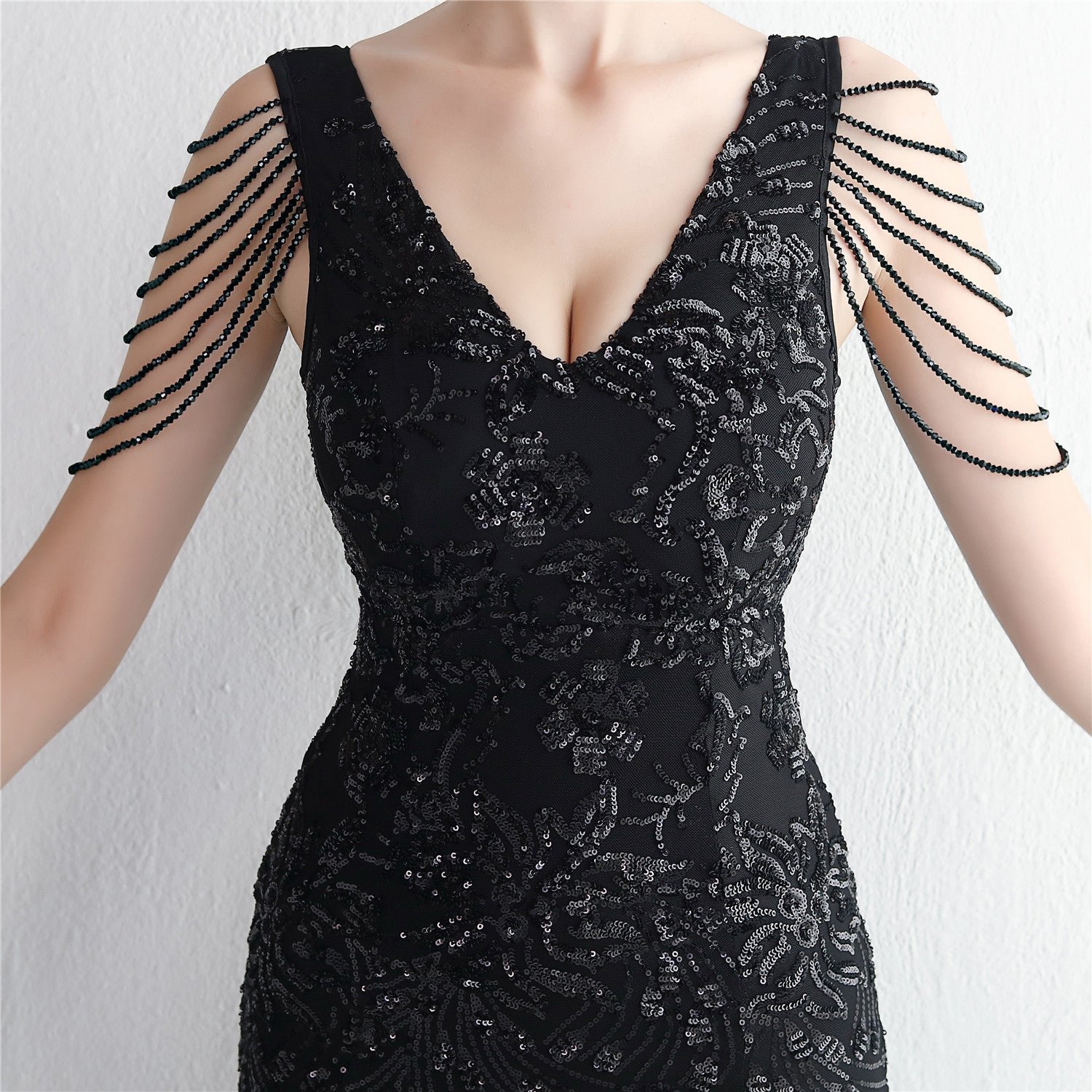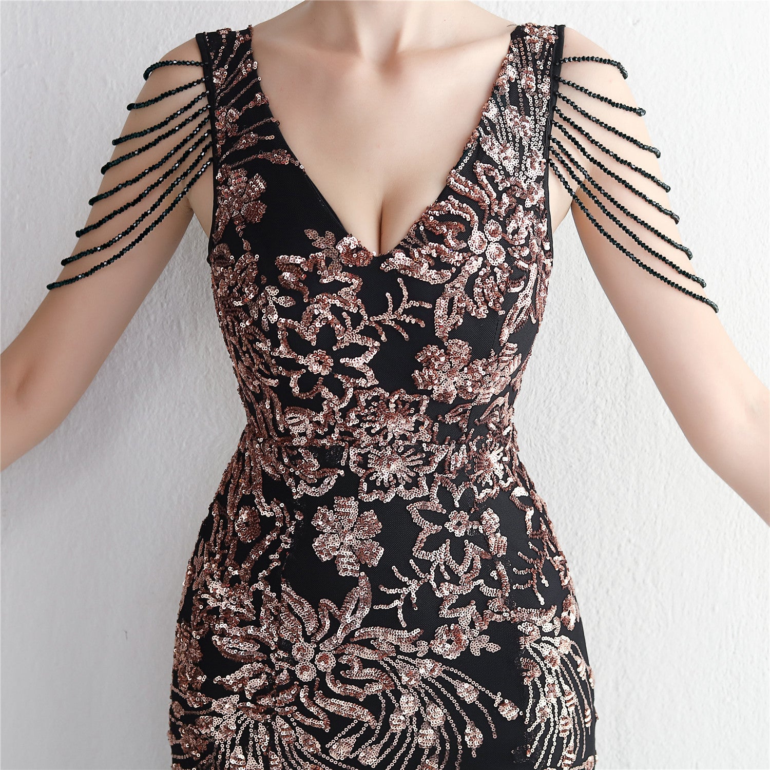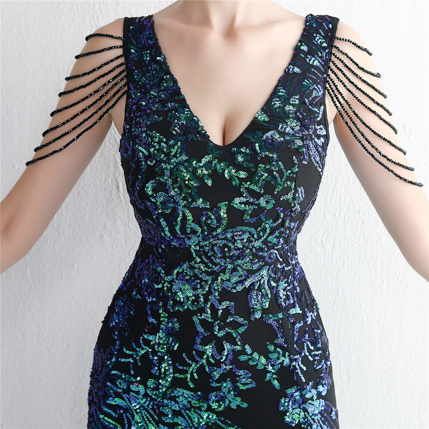 Velvet Base with Handcrafted Sequins, Beading, and Ostrich Feathers