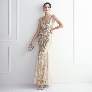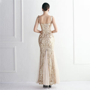 Sequins with Mesh and Beaded Embroidery, Built-in Chest Pads