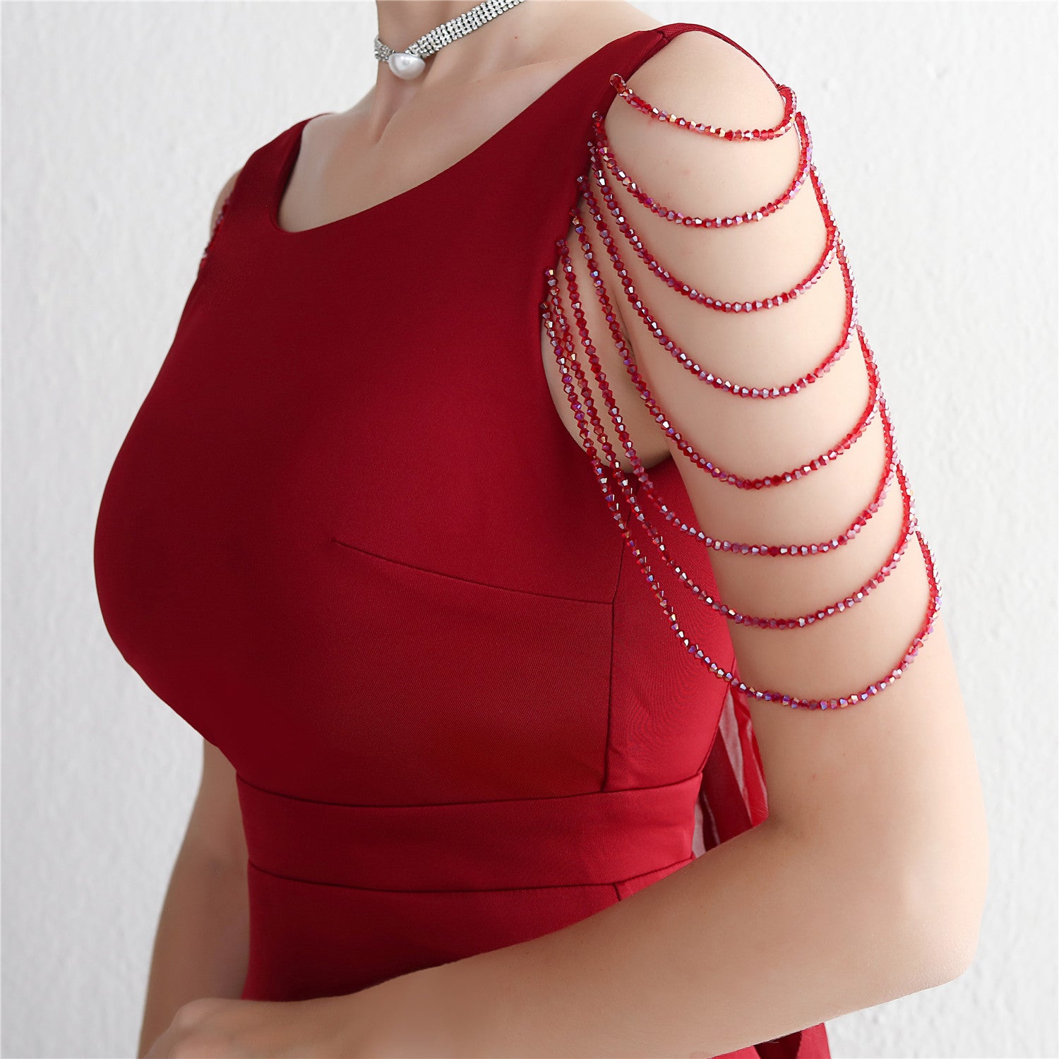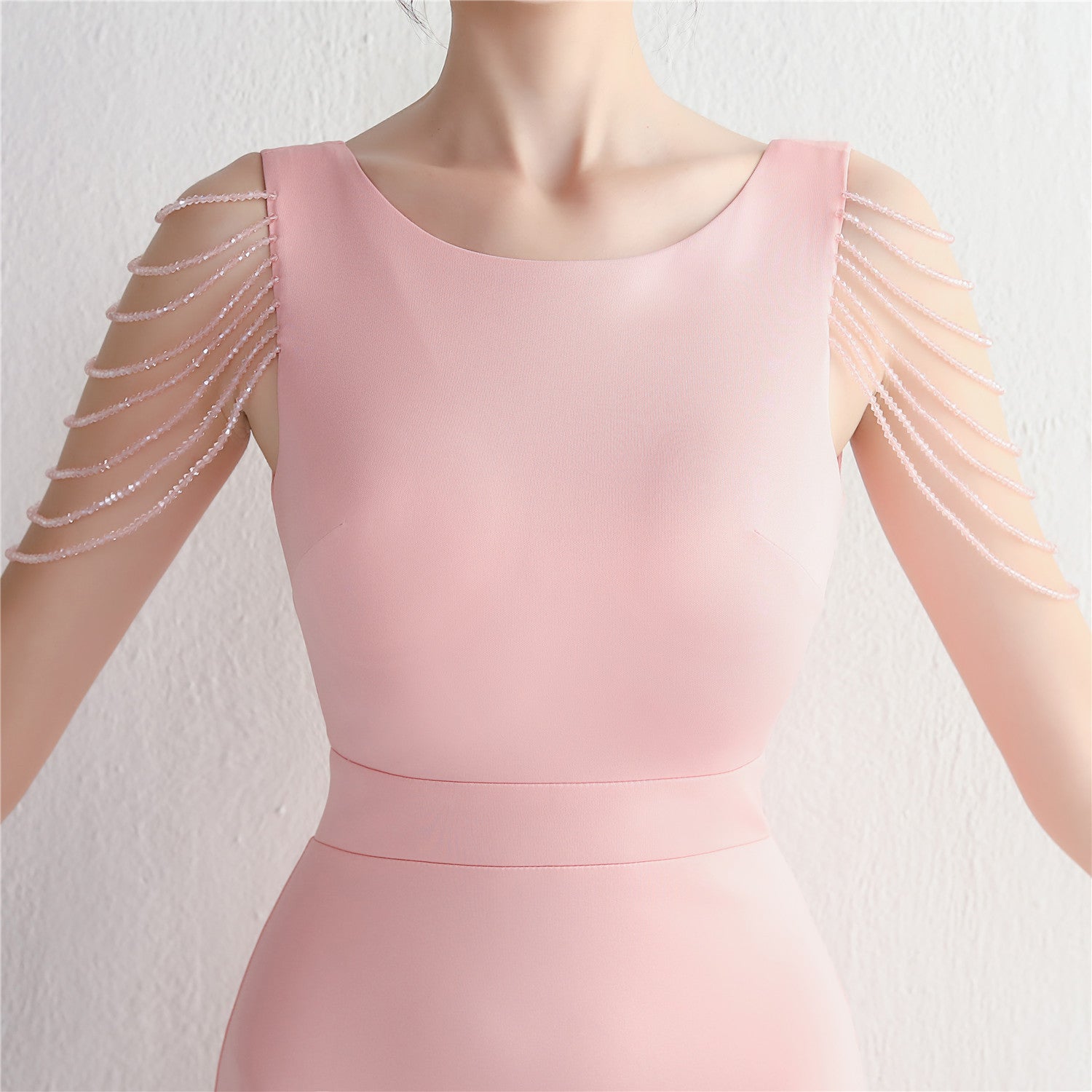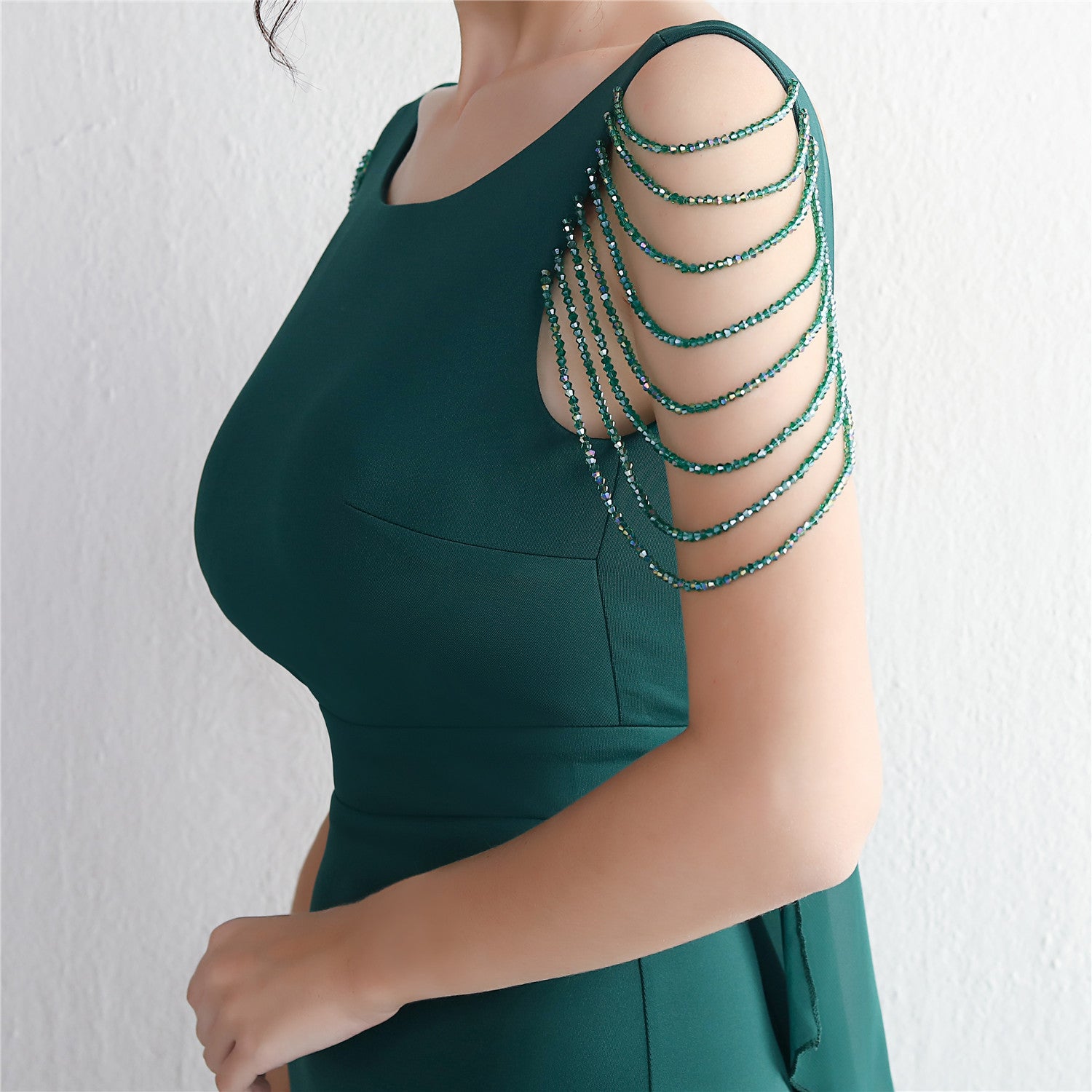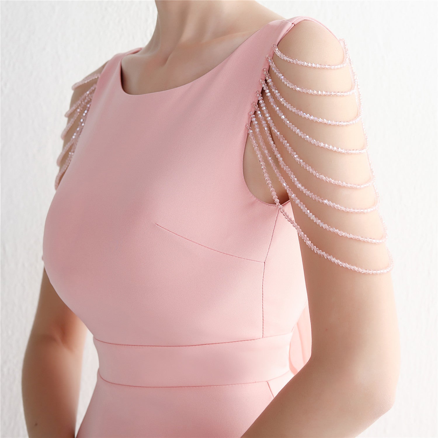 Beaded satin and chiffon, with breast pads