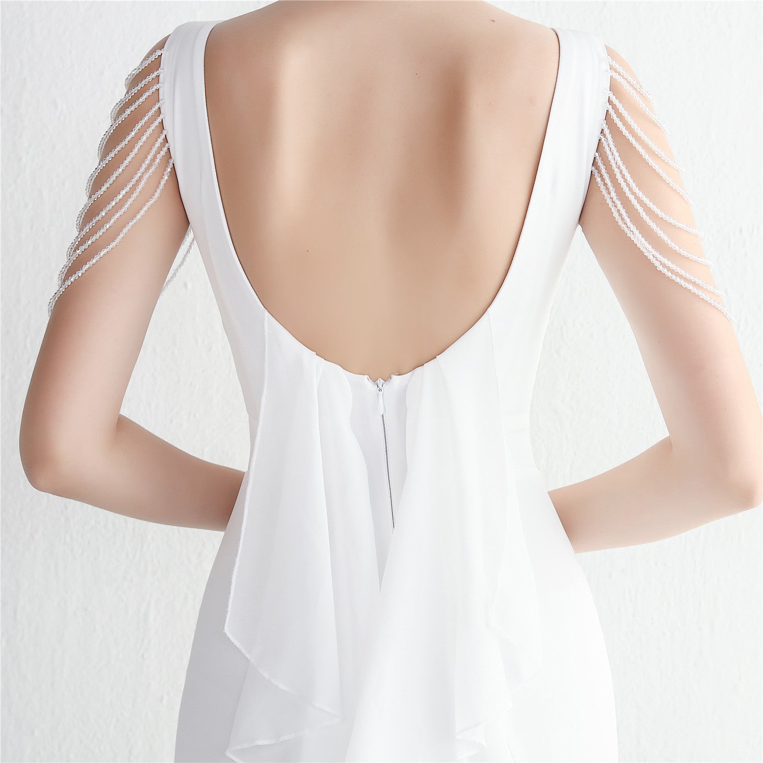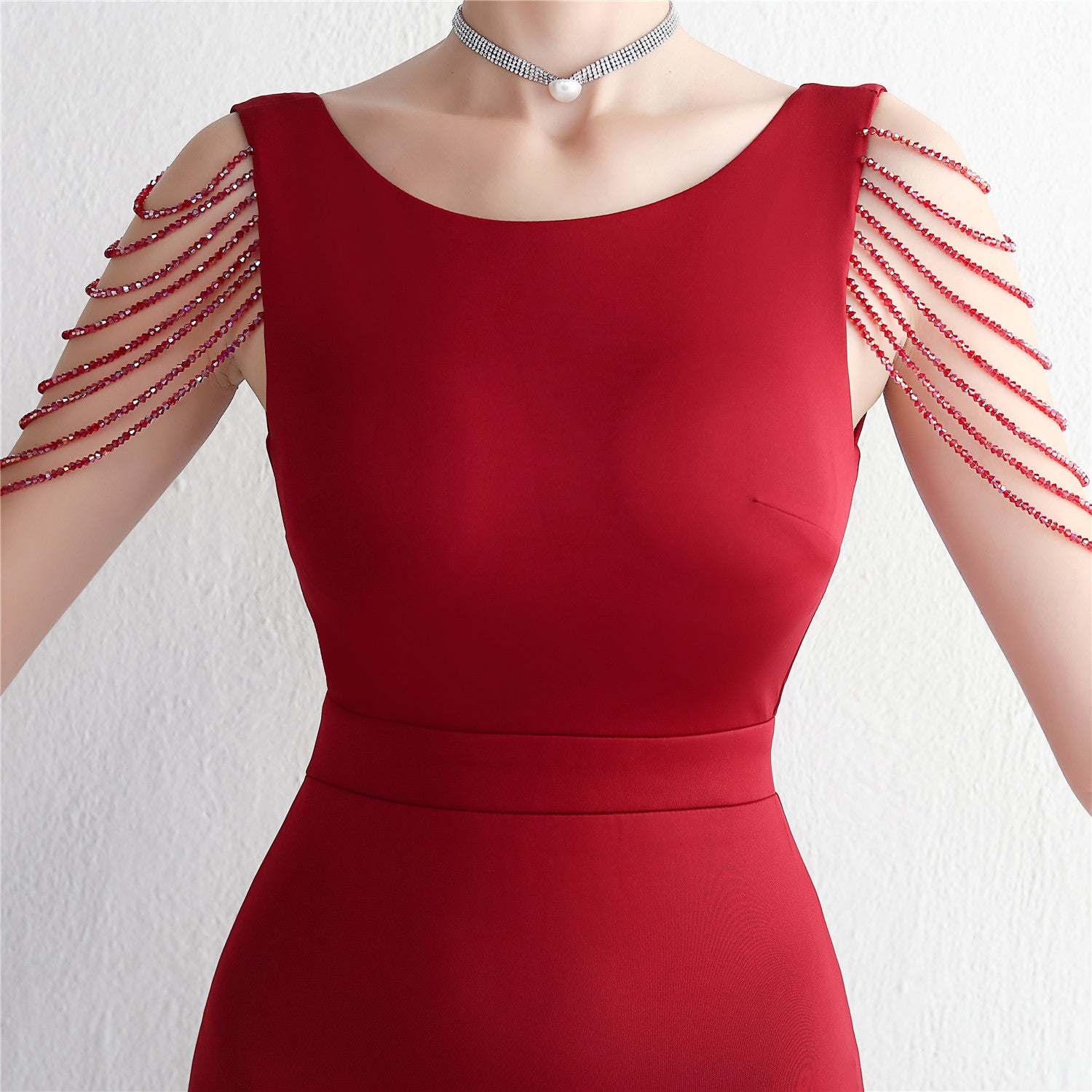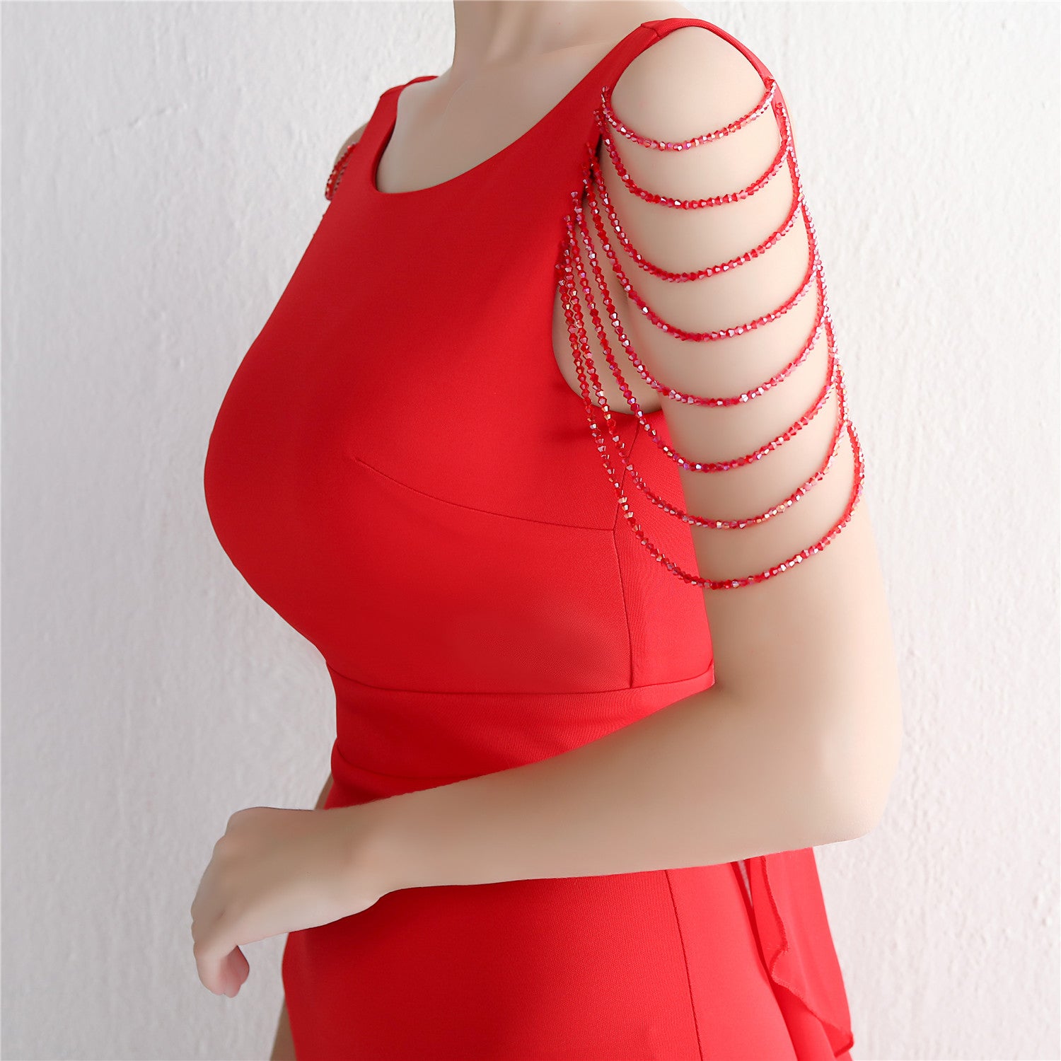Beaded satin and chiffon, with breast pads