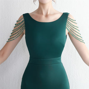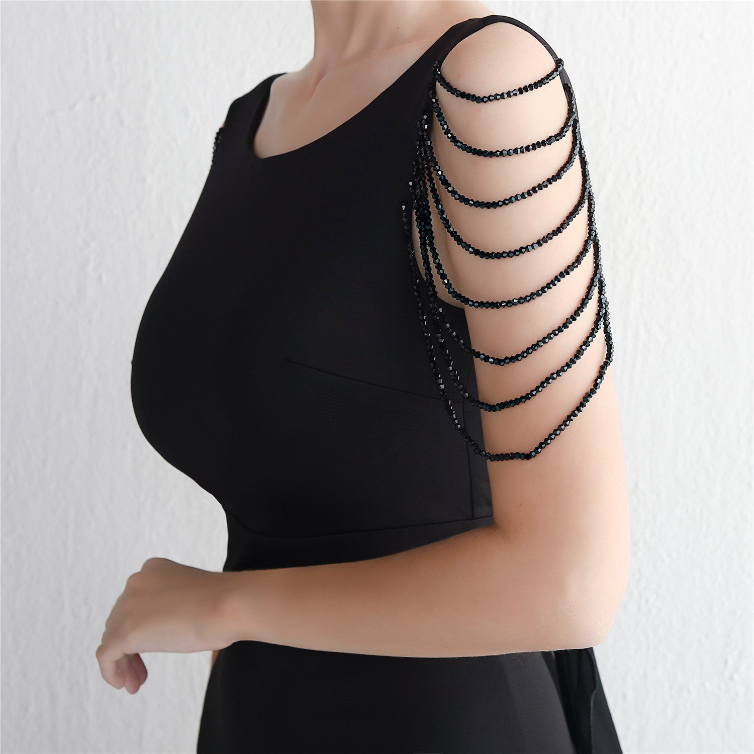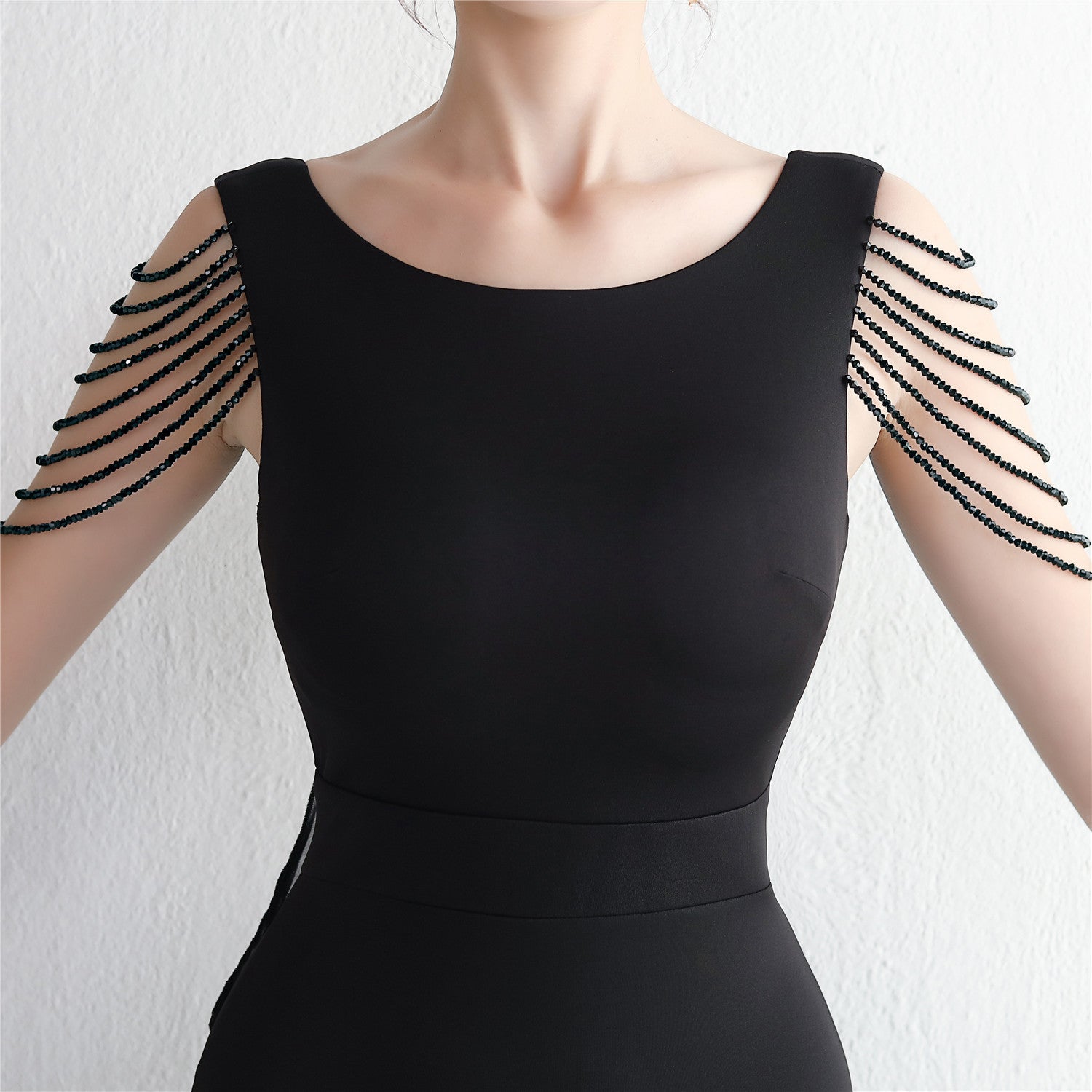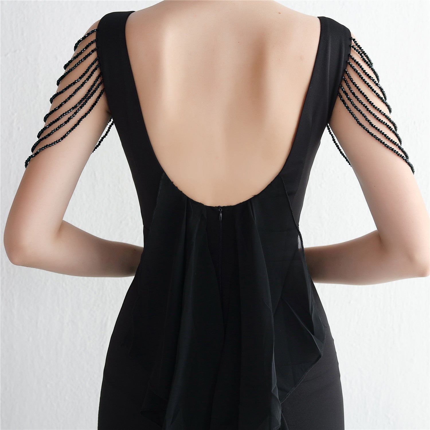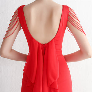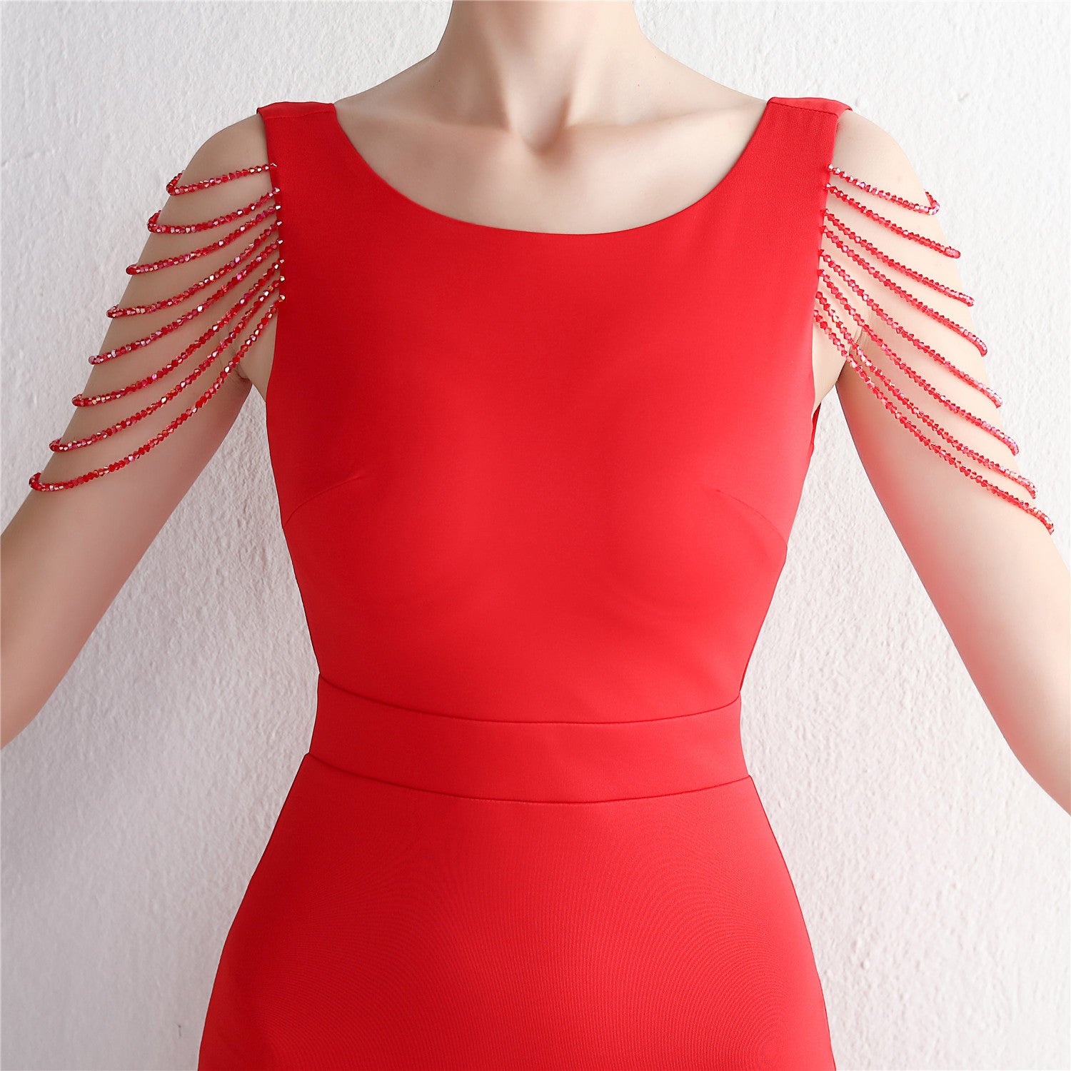 Beaded satin and chiffon, with breast pads