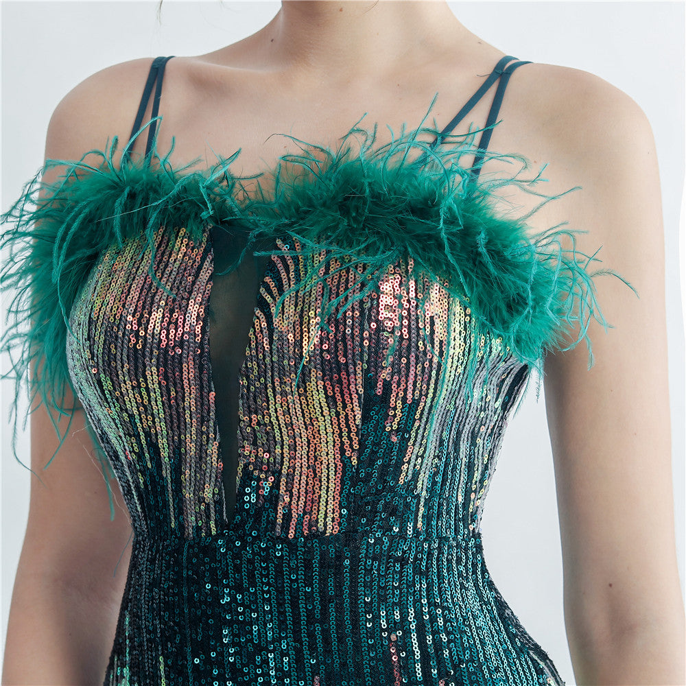 Positioned flowers, craft-ordered ostrich feathers, with chest pads