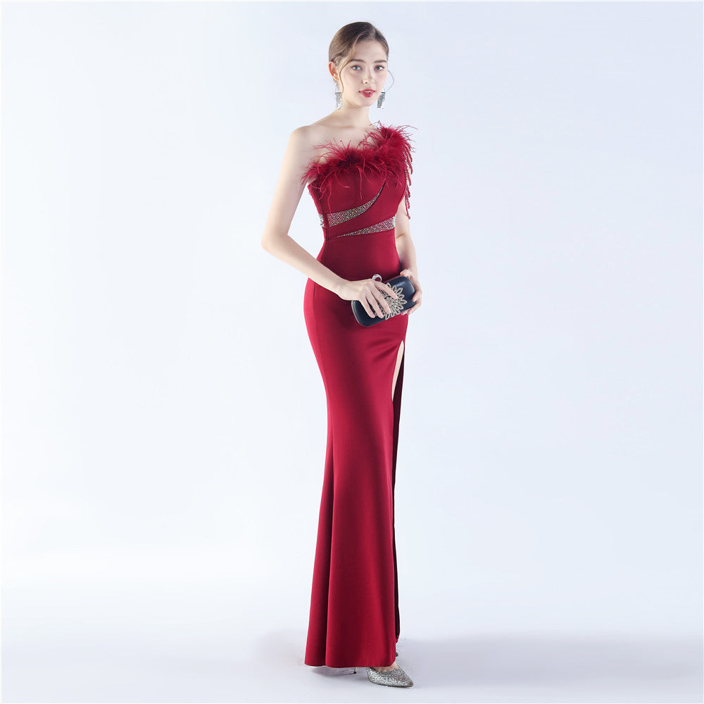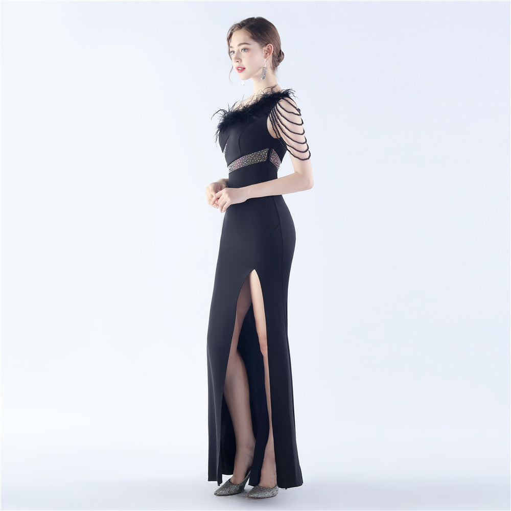 Hot drilling process + beadwork process + ostrich feather attachment, with chest pads.