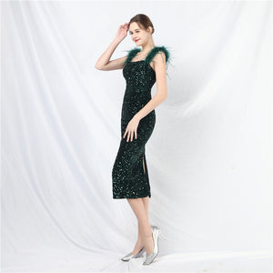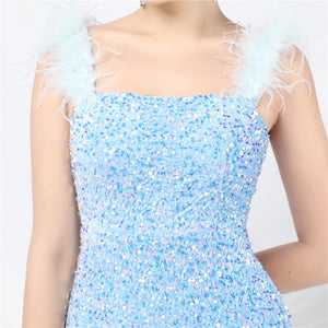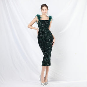 Crafted Bespoke Ostrich Fur Beaded Formal Dresses