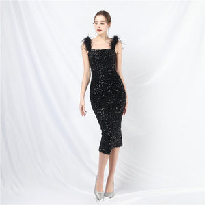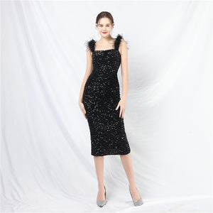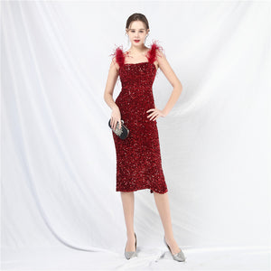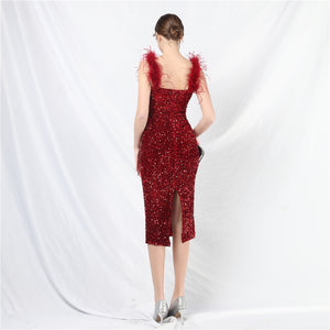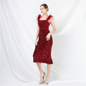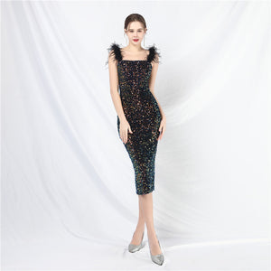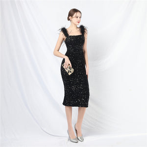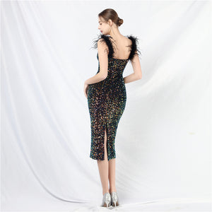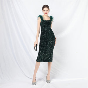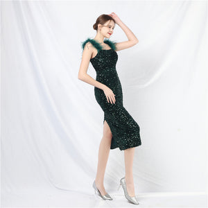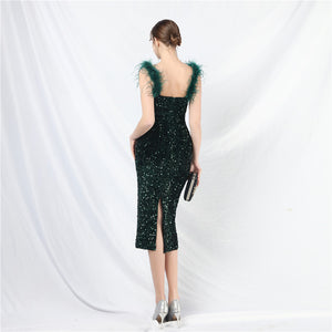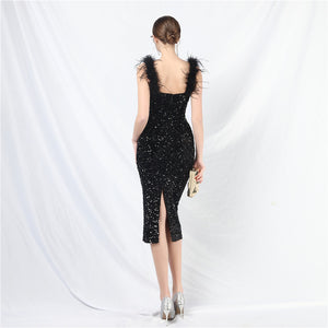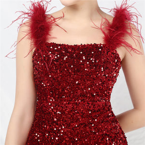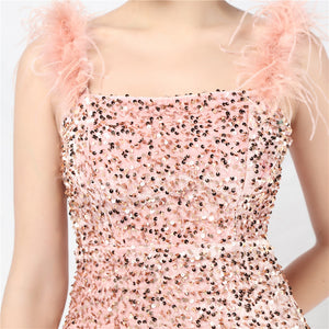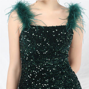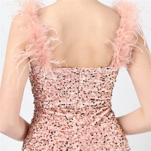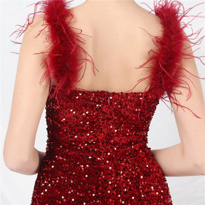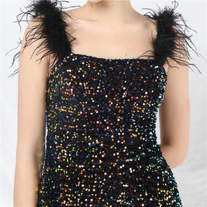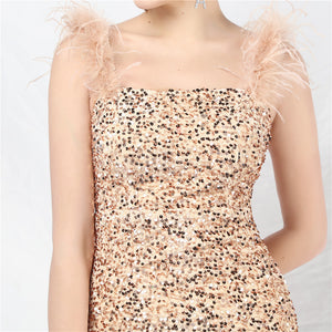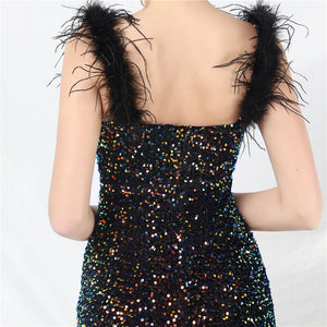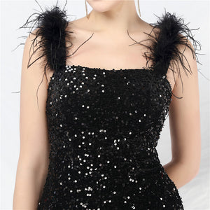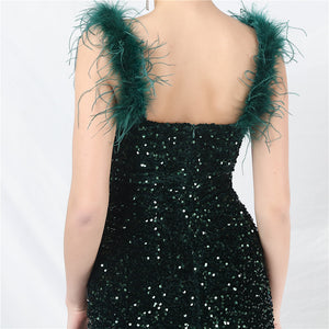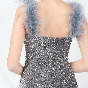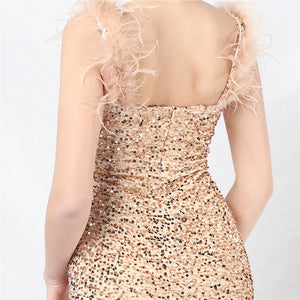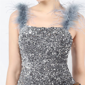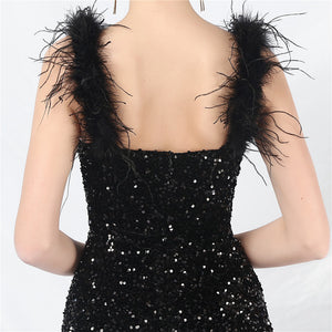 Sequins + Ostrich Feather Embellishments, Built-in Chest Pads