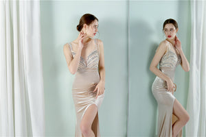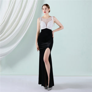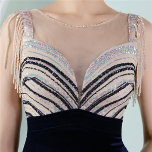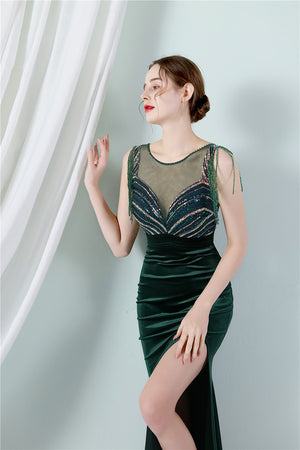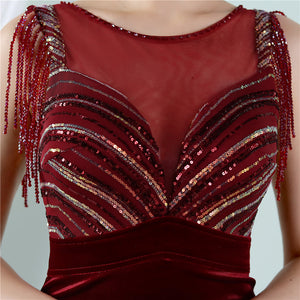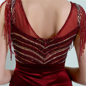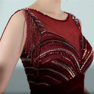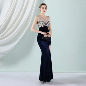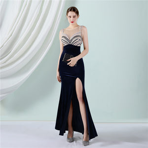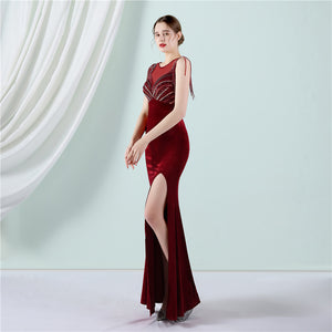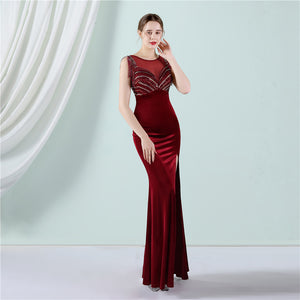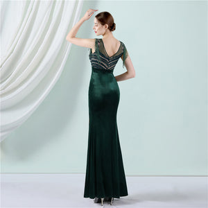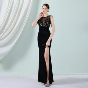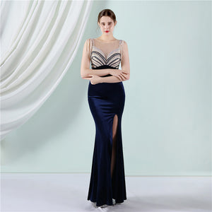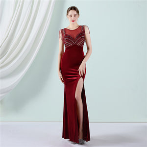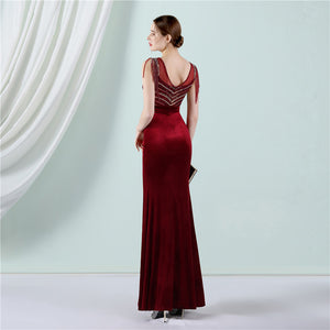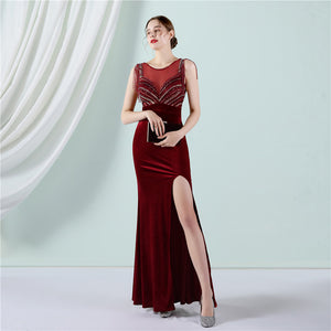 Korean Velvet Positioning Flower Beaded Formal Dresses