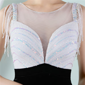 Korean Velvet with Patterned Sequins and Handcrafted Beadwork, Built-in Chest Pads