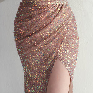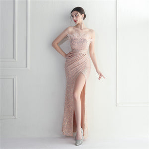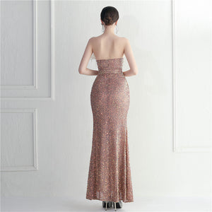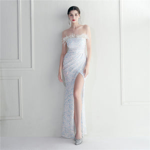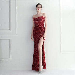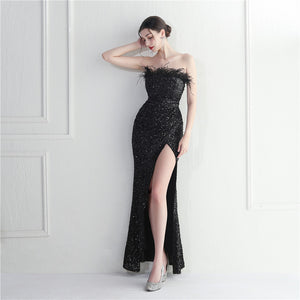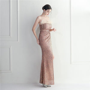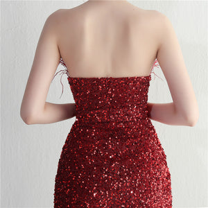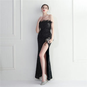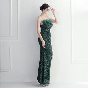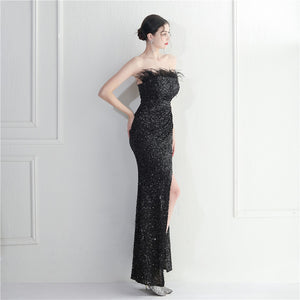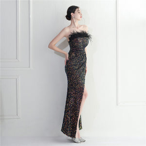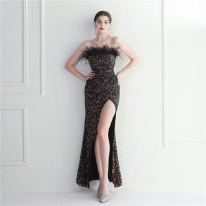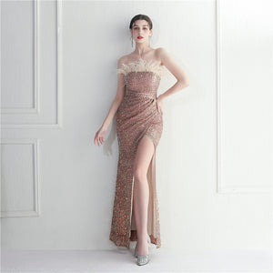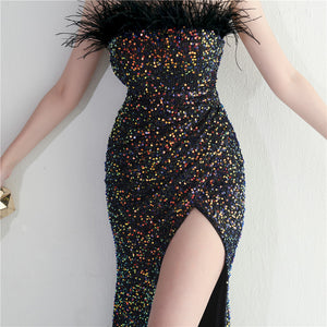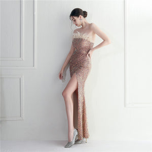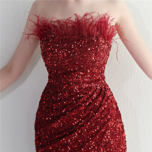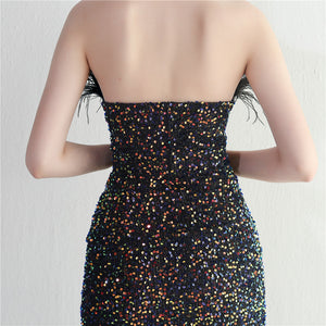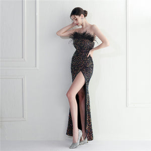 Sequin with Ostrich Feather Detailing and Built-in Chest Pads