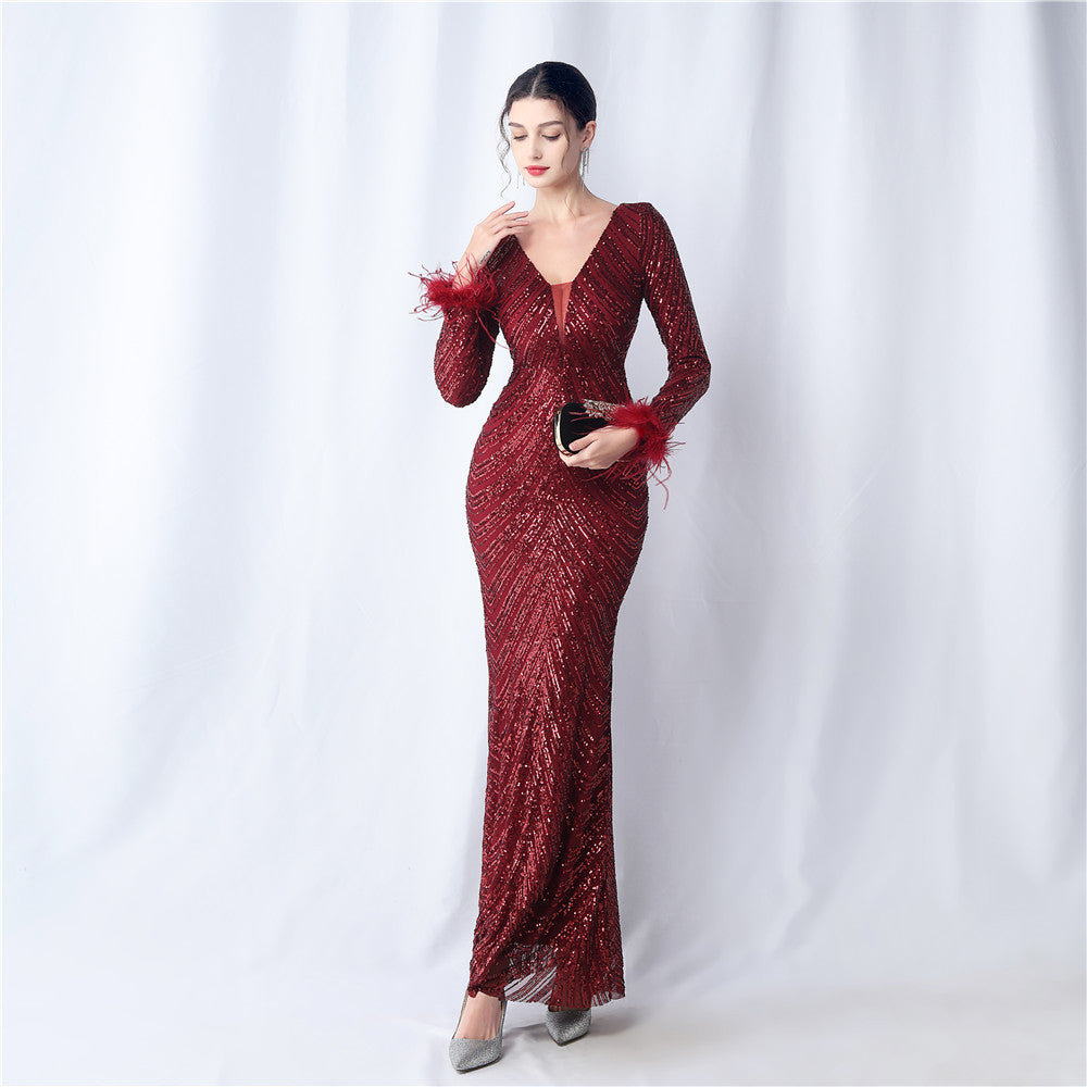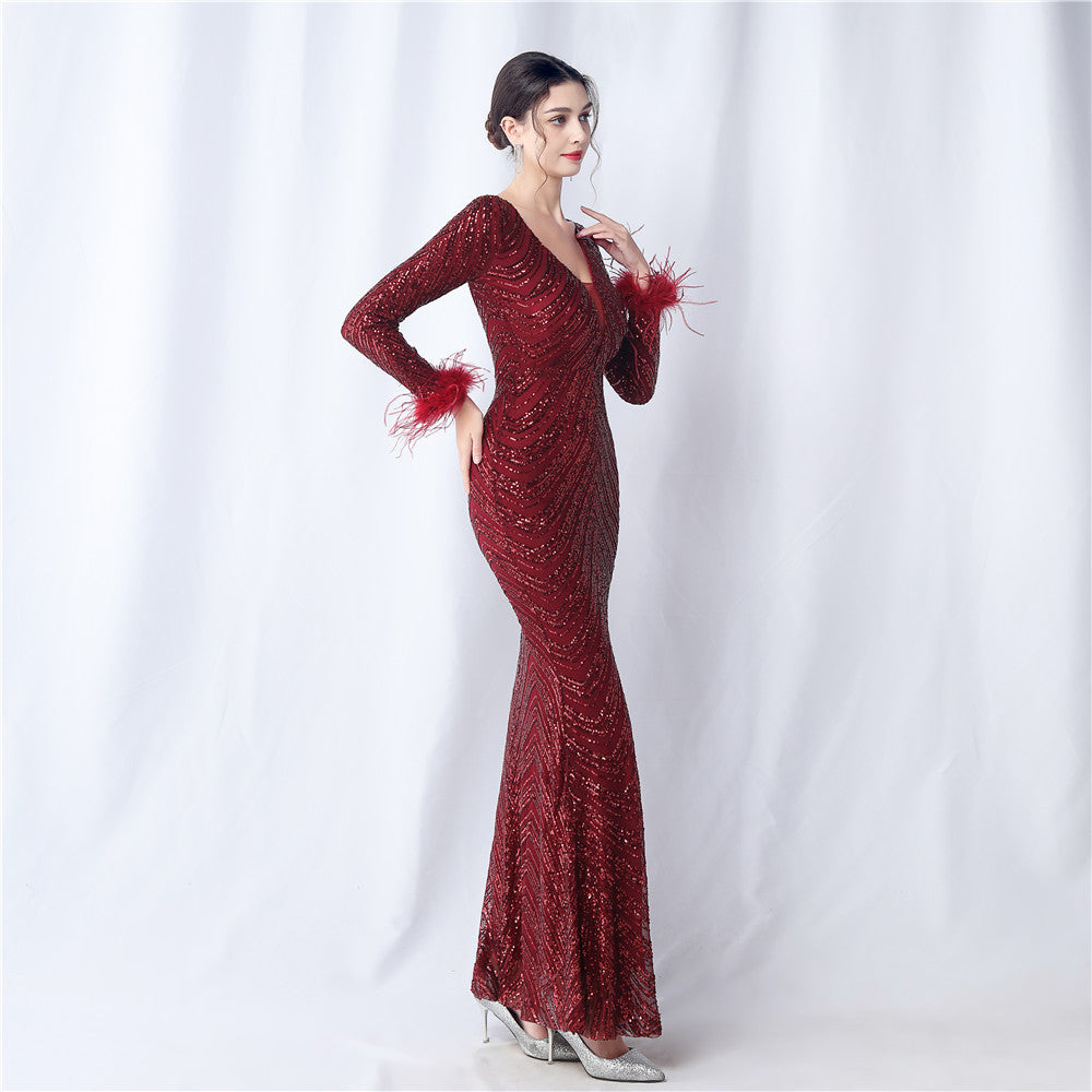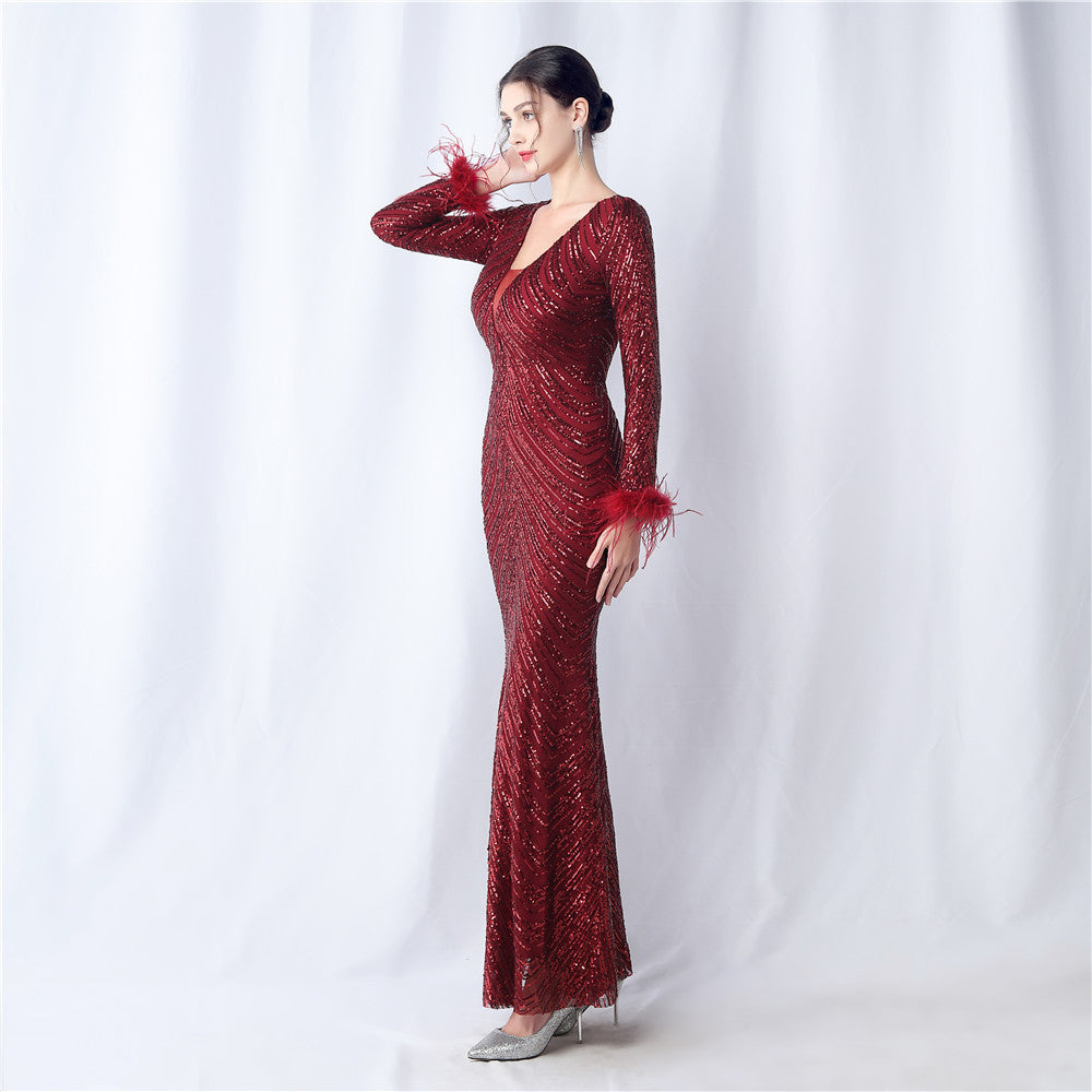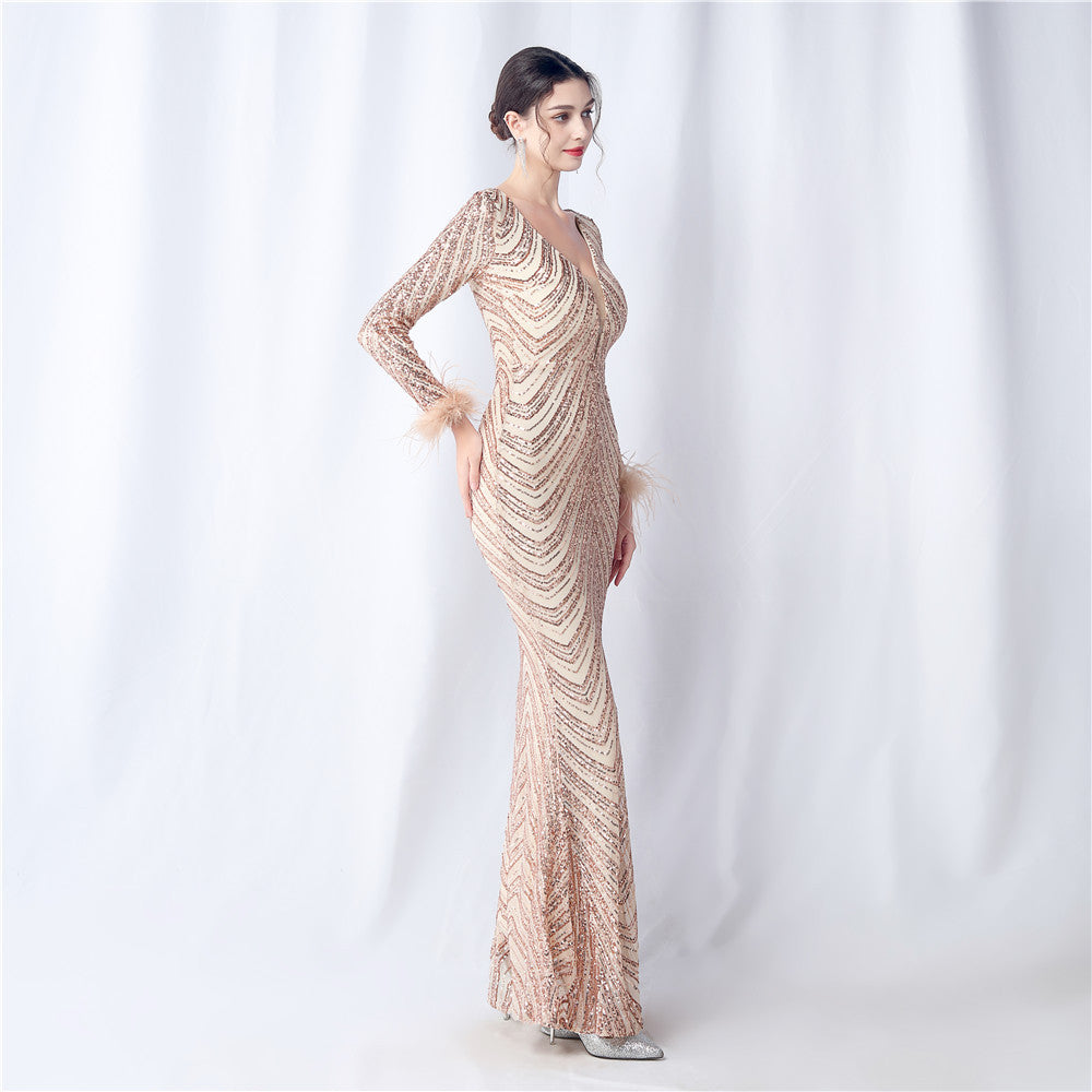 Aveline Long-Sleeve High-End Evening Formal Dress