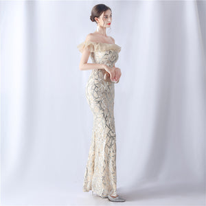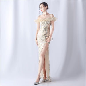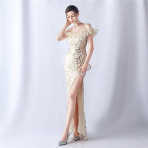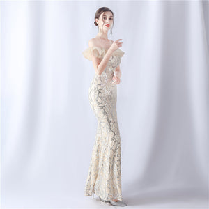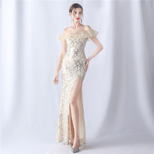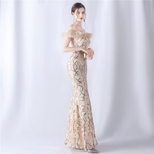 A new combination of sequin and embroidery fabric + Premium Folded Organza, with Built-in Chest Pads