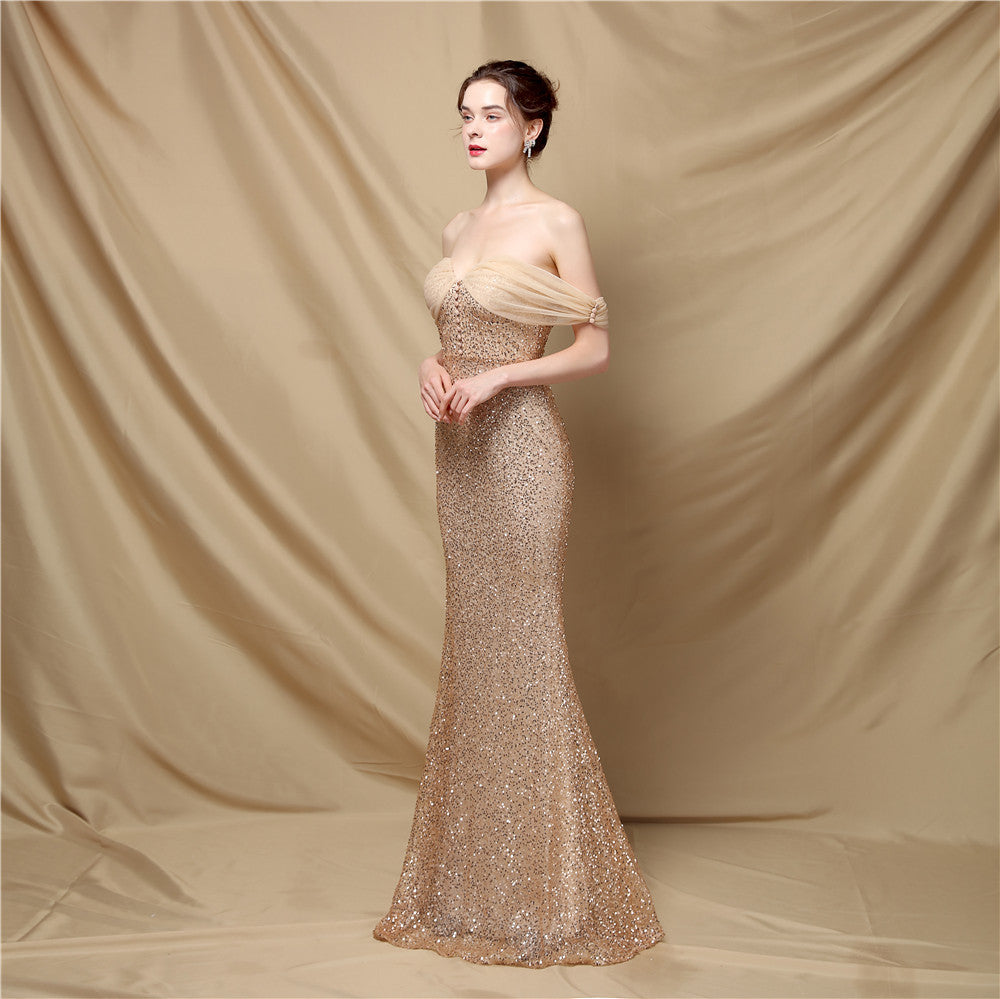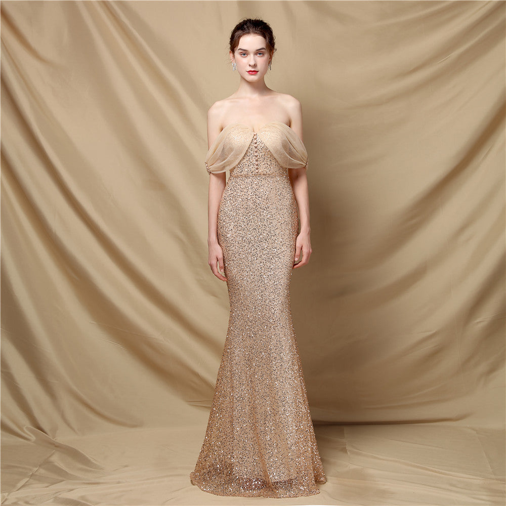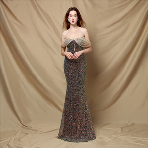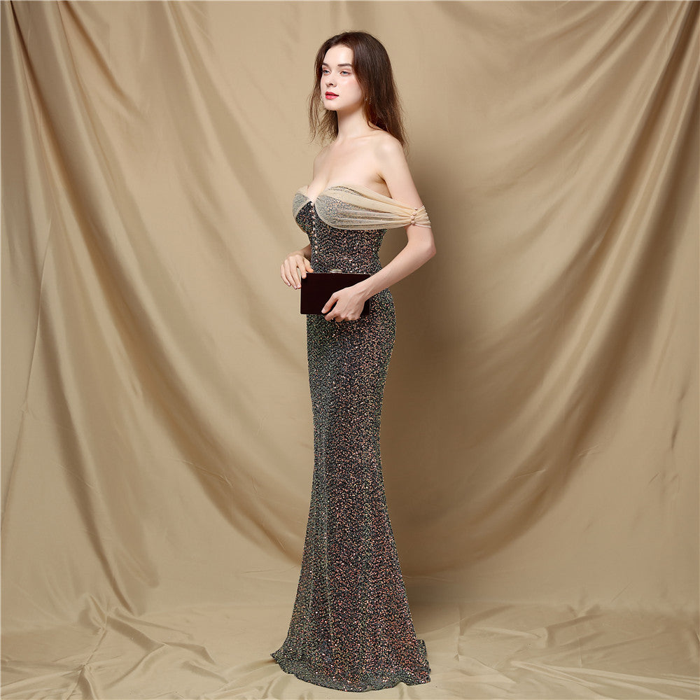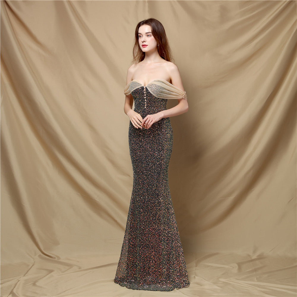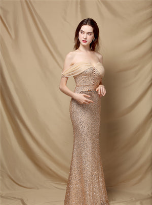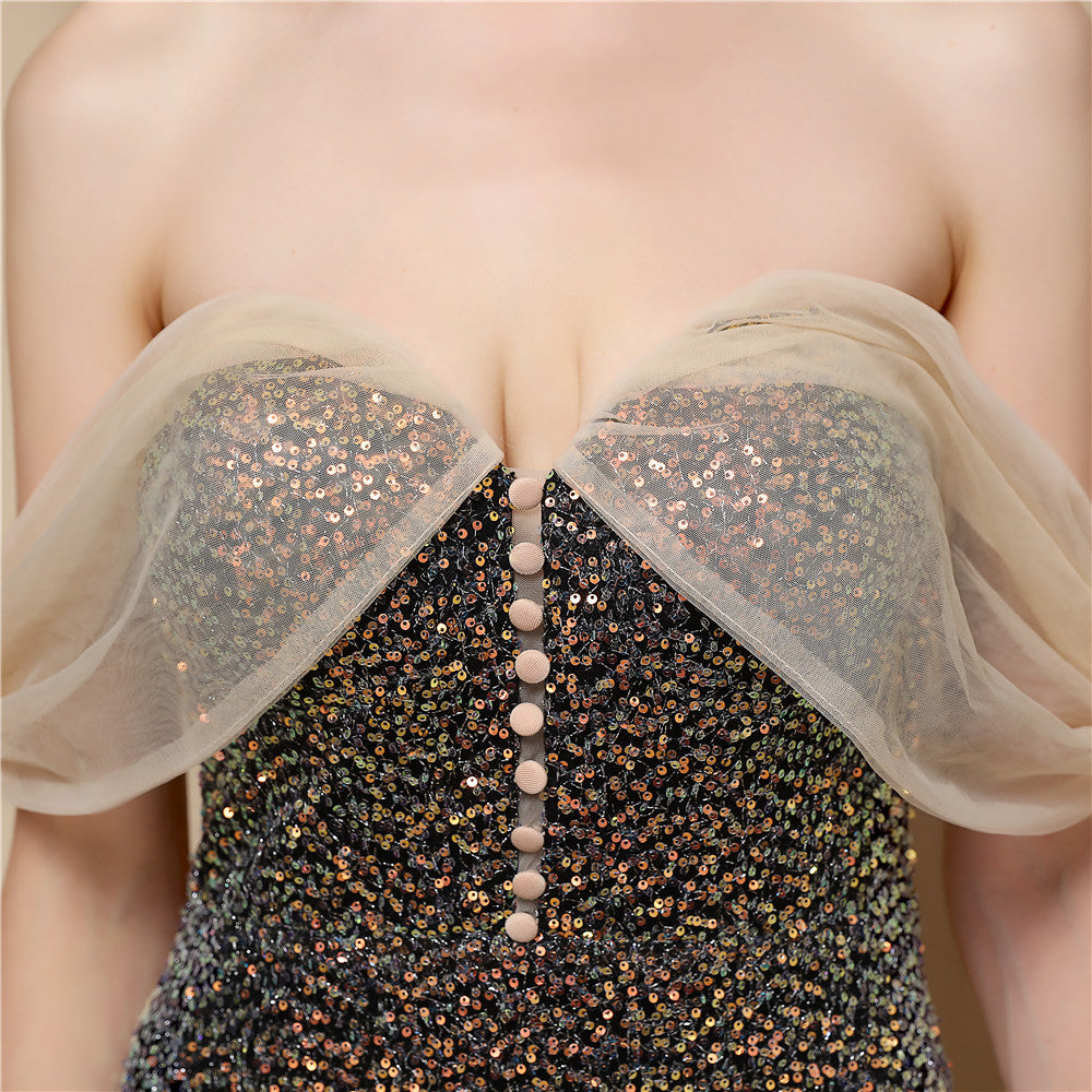 Sequins with Mesh and Beaded Embroidery, Built-in Chest Pads