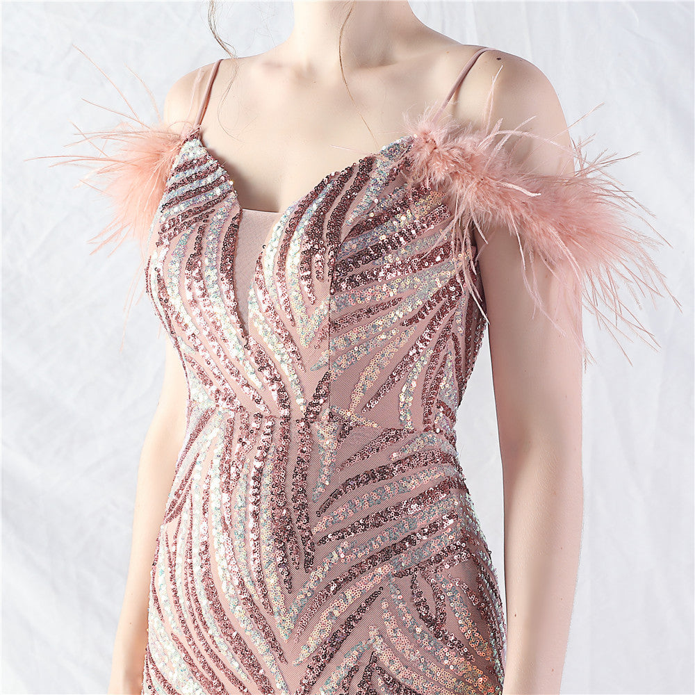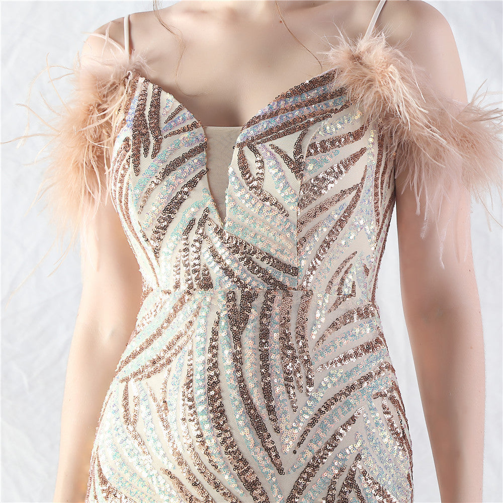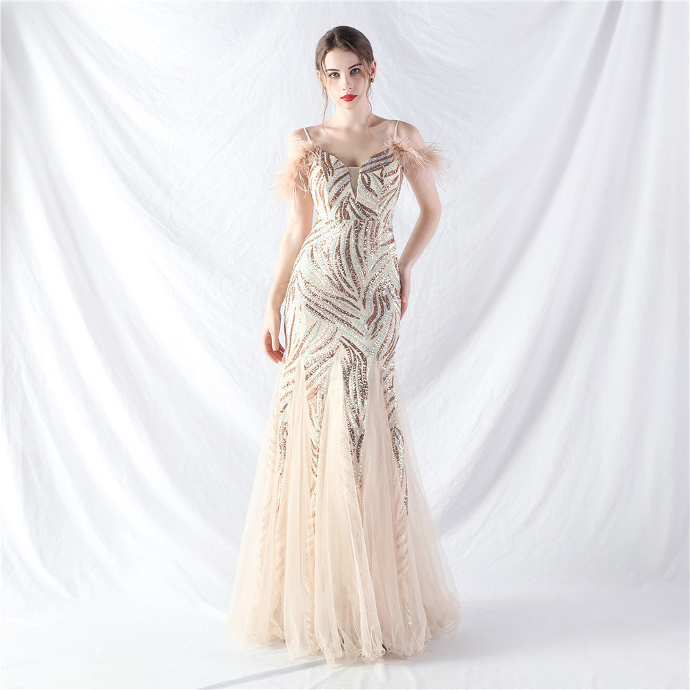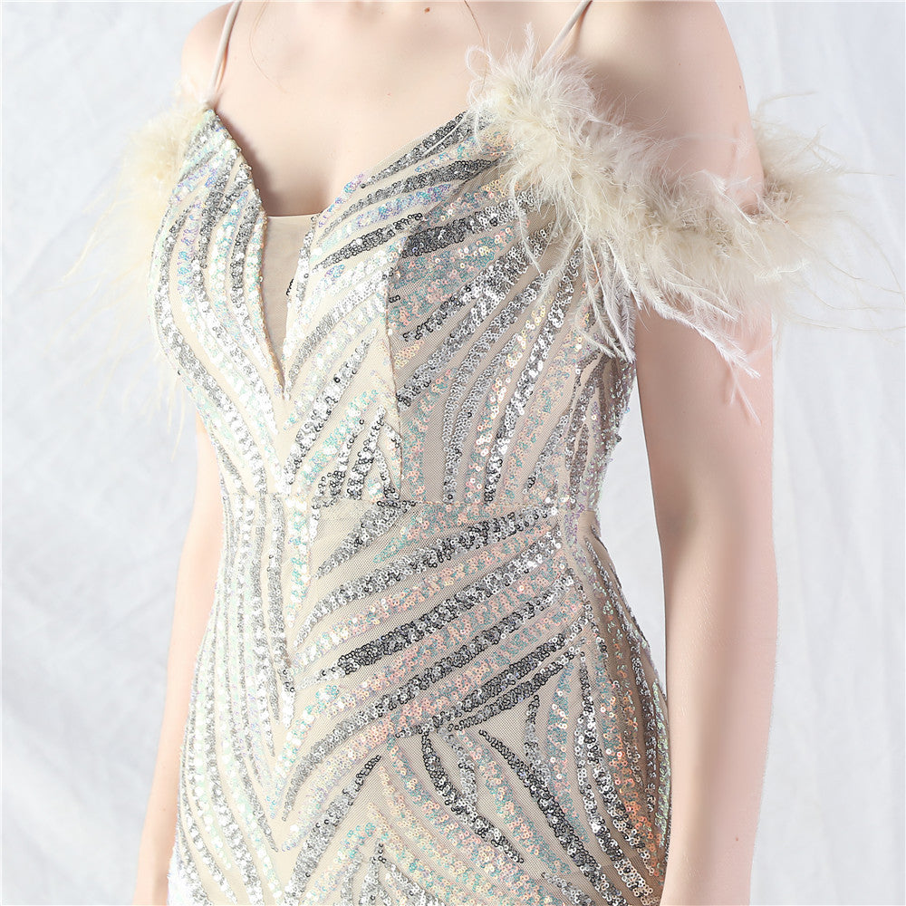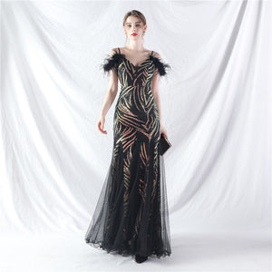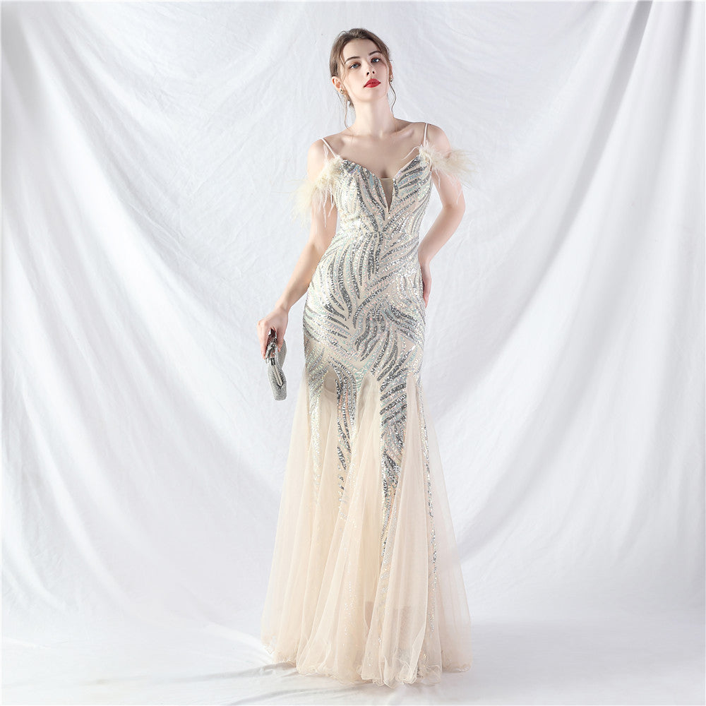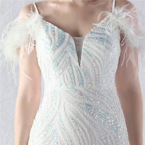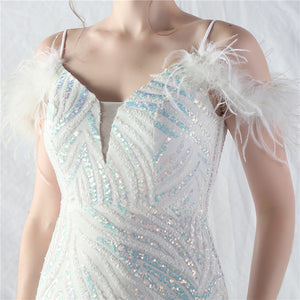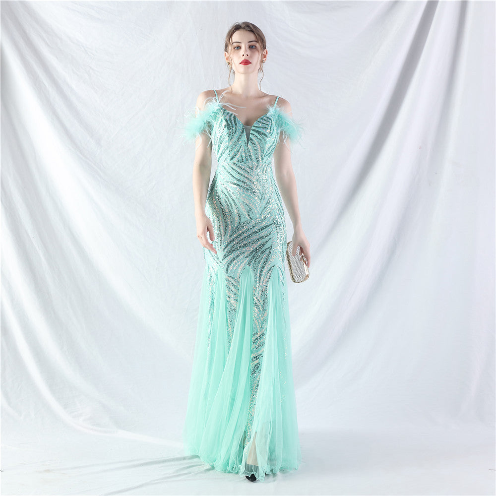 To ensure the best effect of the ostrich feather decorations, please use a hair dryer to gently fluff and smooth the feathers before wearing the gown. (Please use the hair dryer safely.)