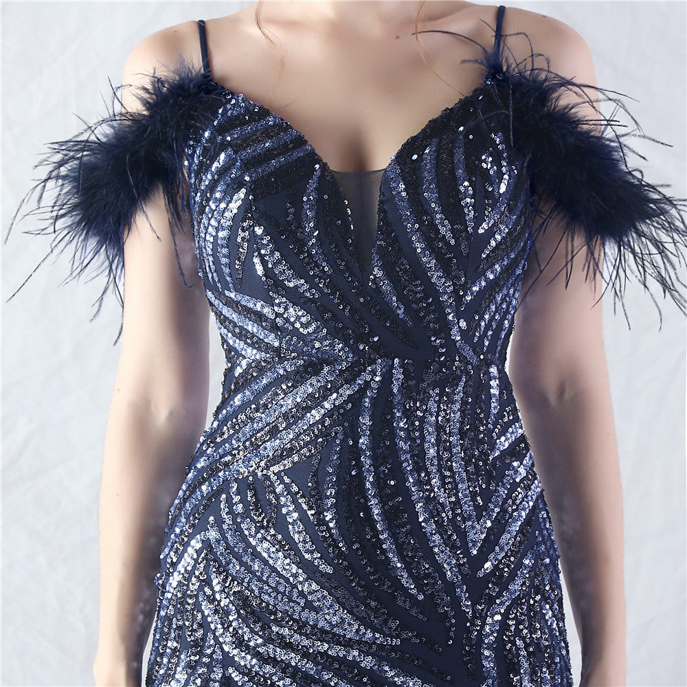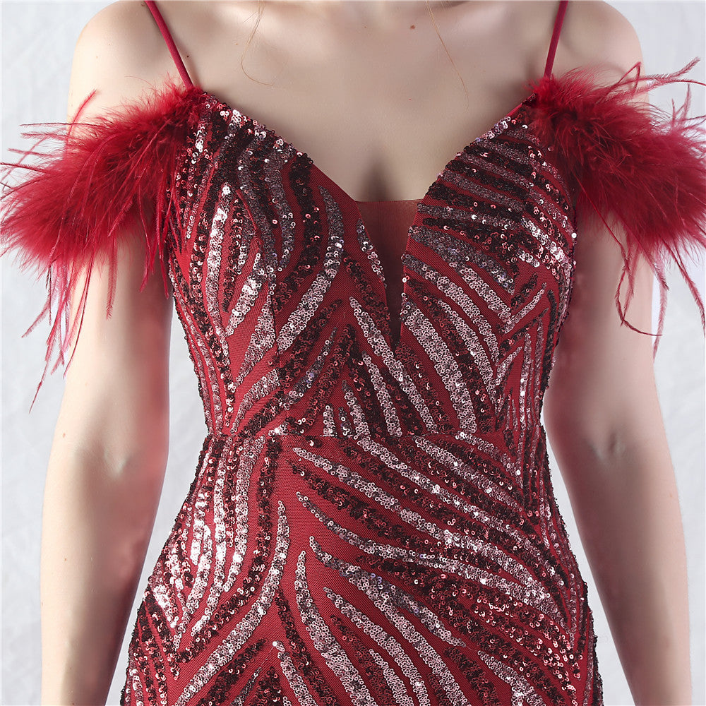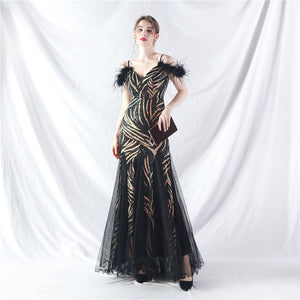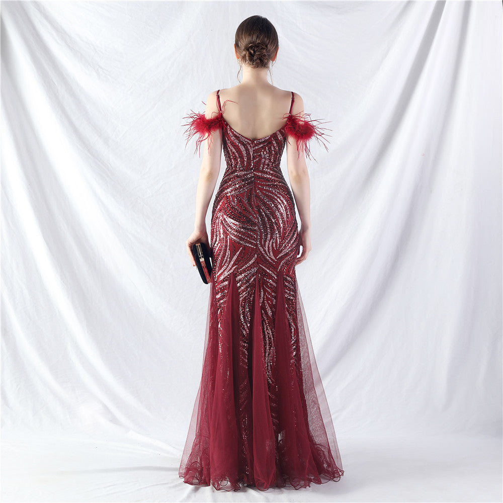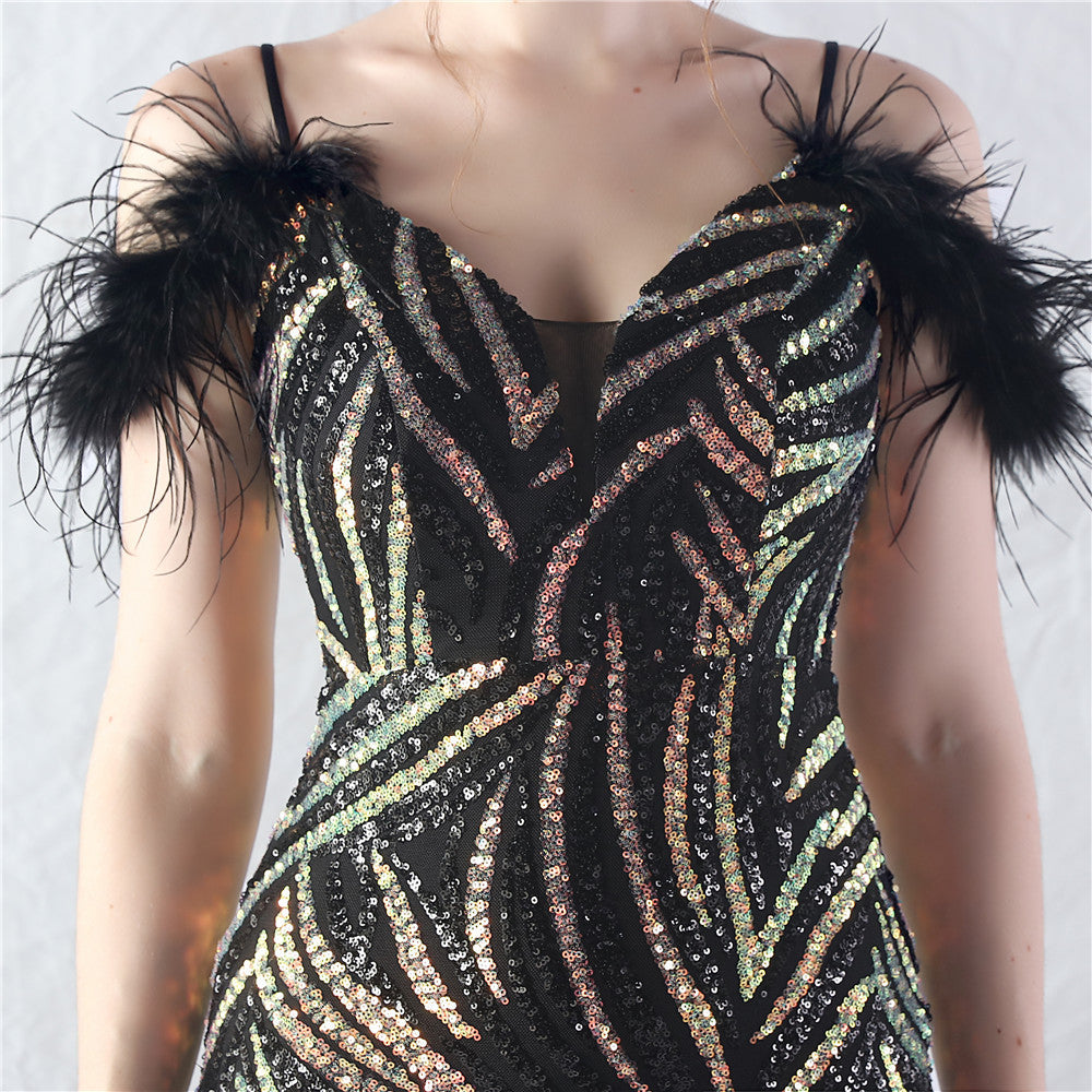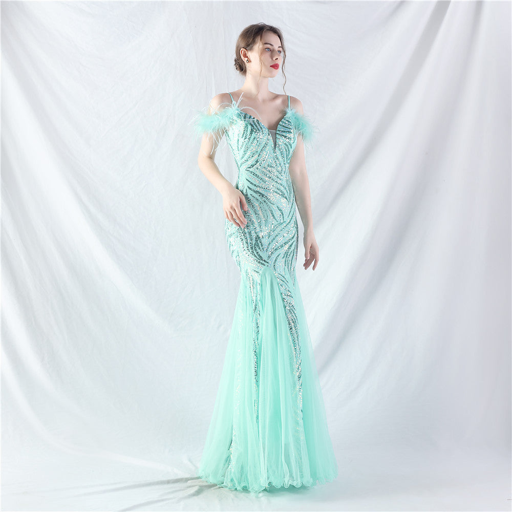 To ensure the best effect of the ostrich feather decorations, please use a hair dryer to gently fluff and smooth the feathers before wearing the gown. (Please use the hair dryer safely.)