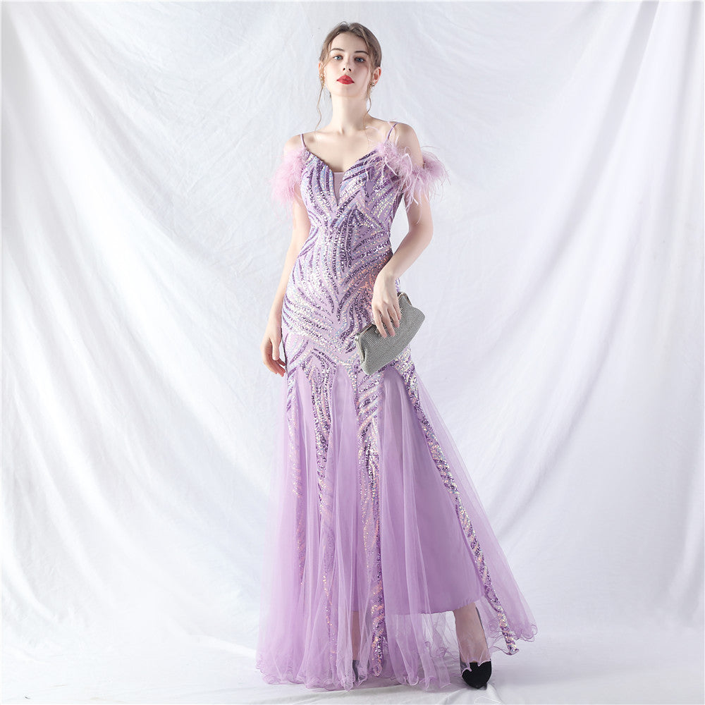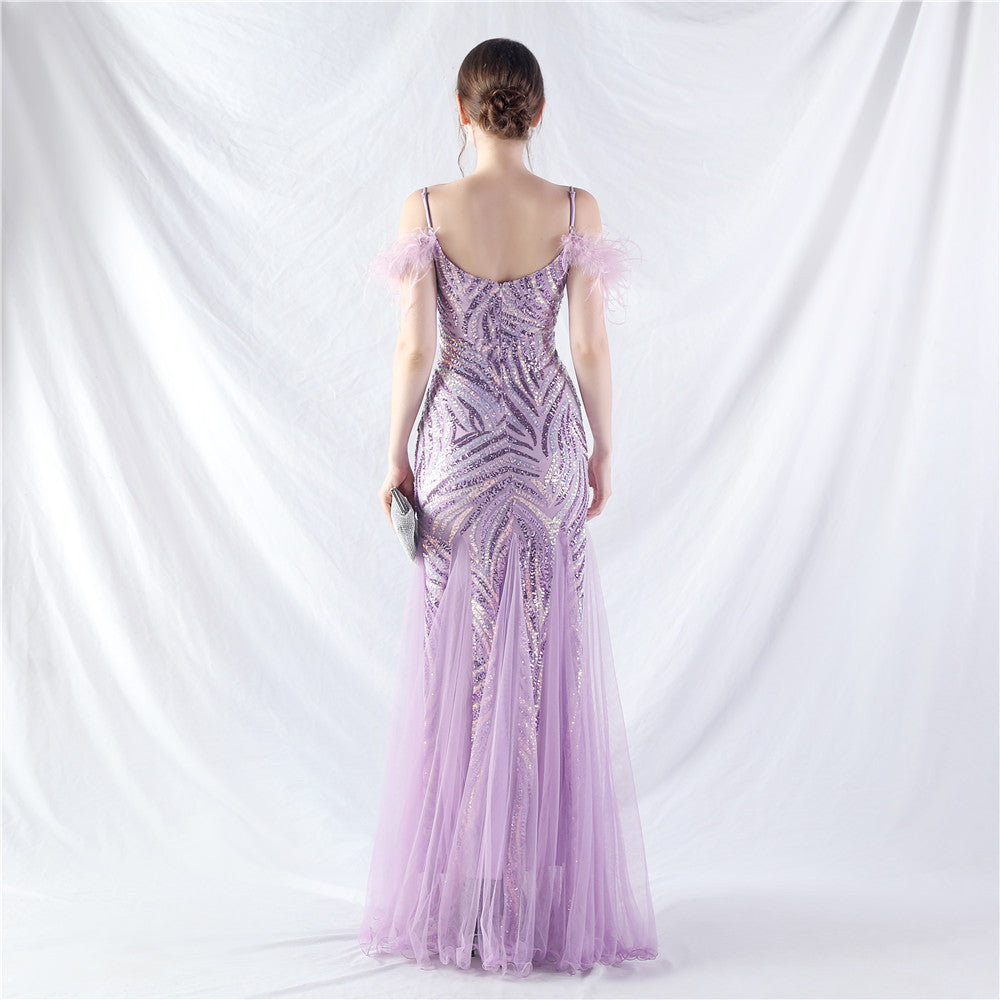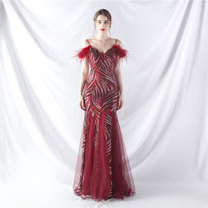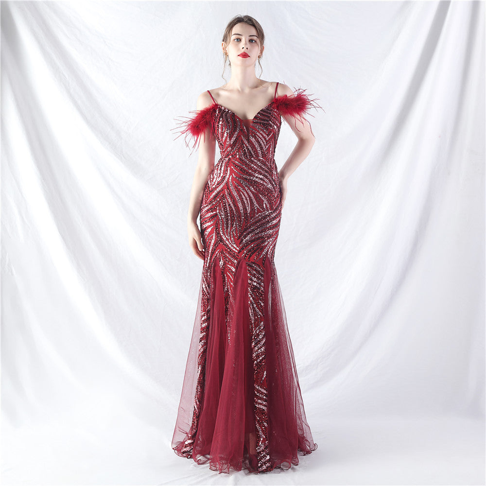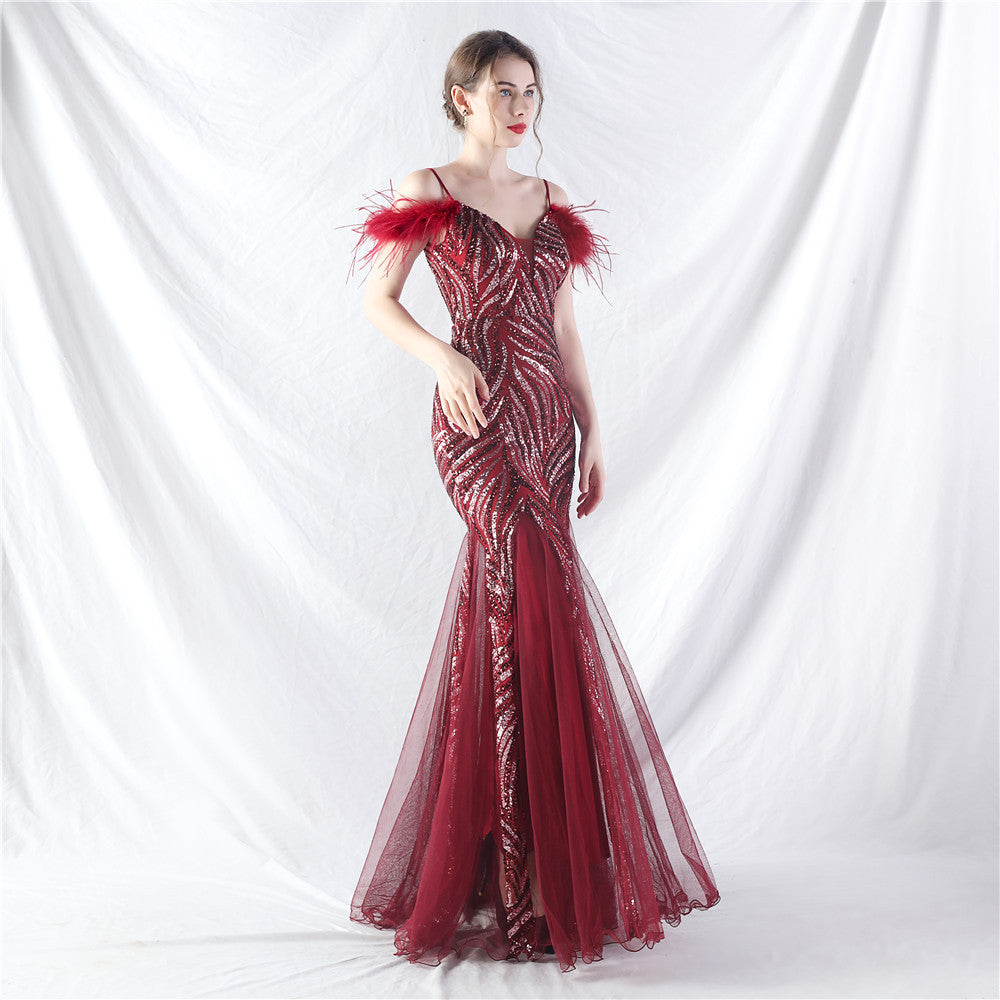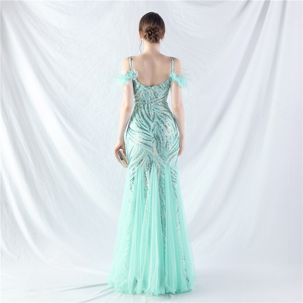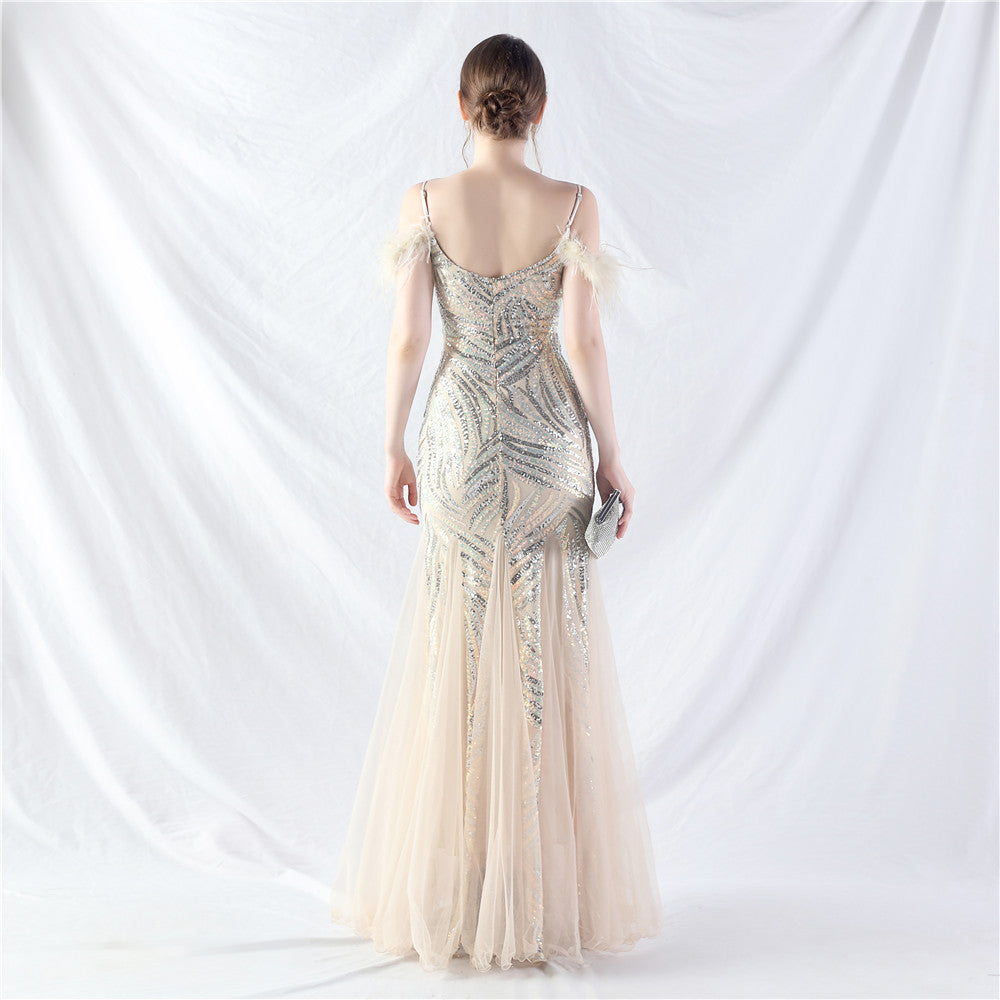 To ensure the best effect of the ostrich feather decorations, please use a hair dryer to gently fluff and smooth the feathers before wearing the gown. (Please use the hair dryer safely.)