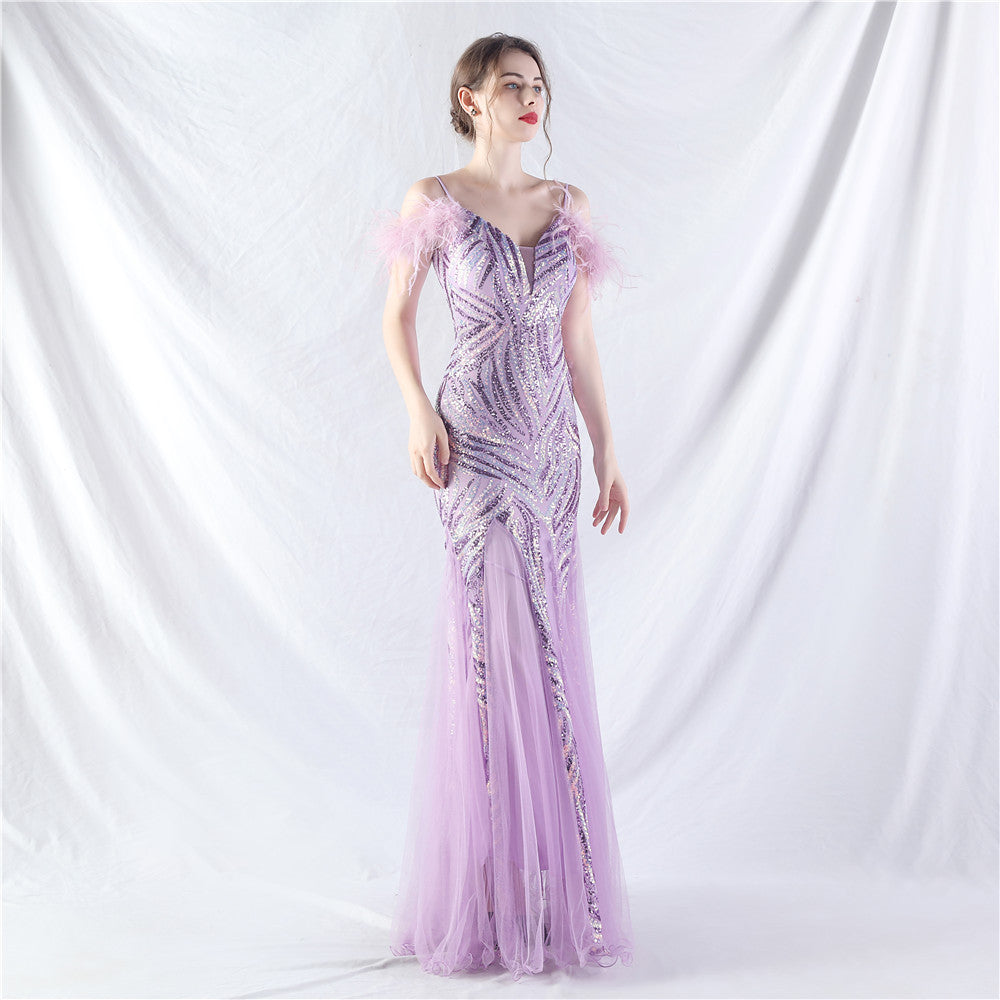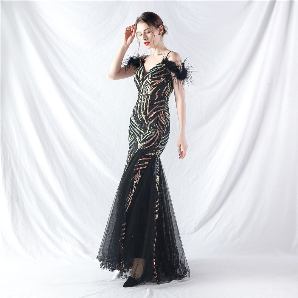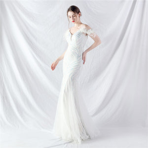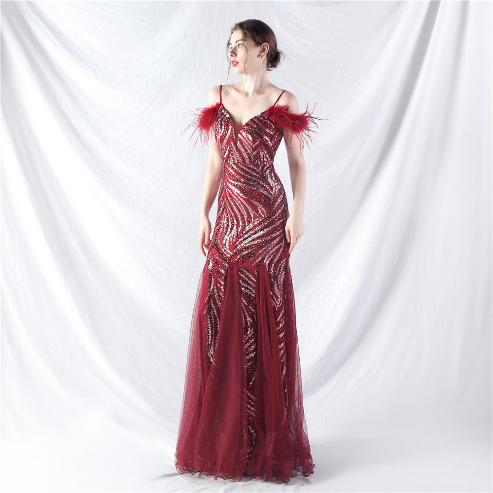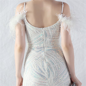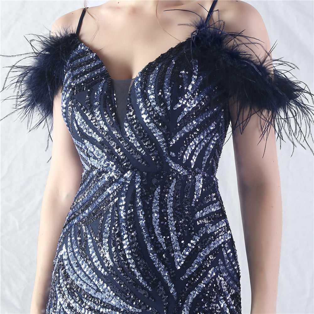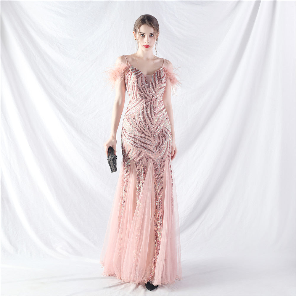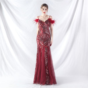 To ensure the best effect of the ostrich feather decorations, please use a hair dryer to gently fluff and smooth the feathers before wearing the gown. (Please use the hair dryer safely.)