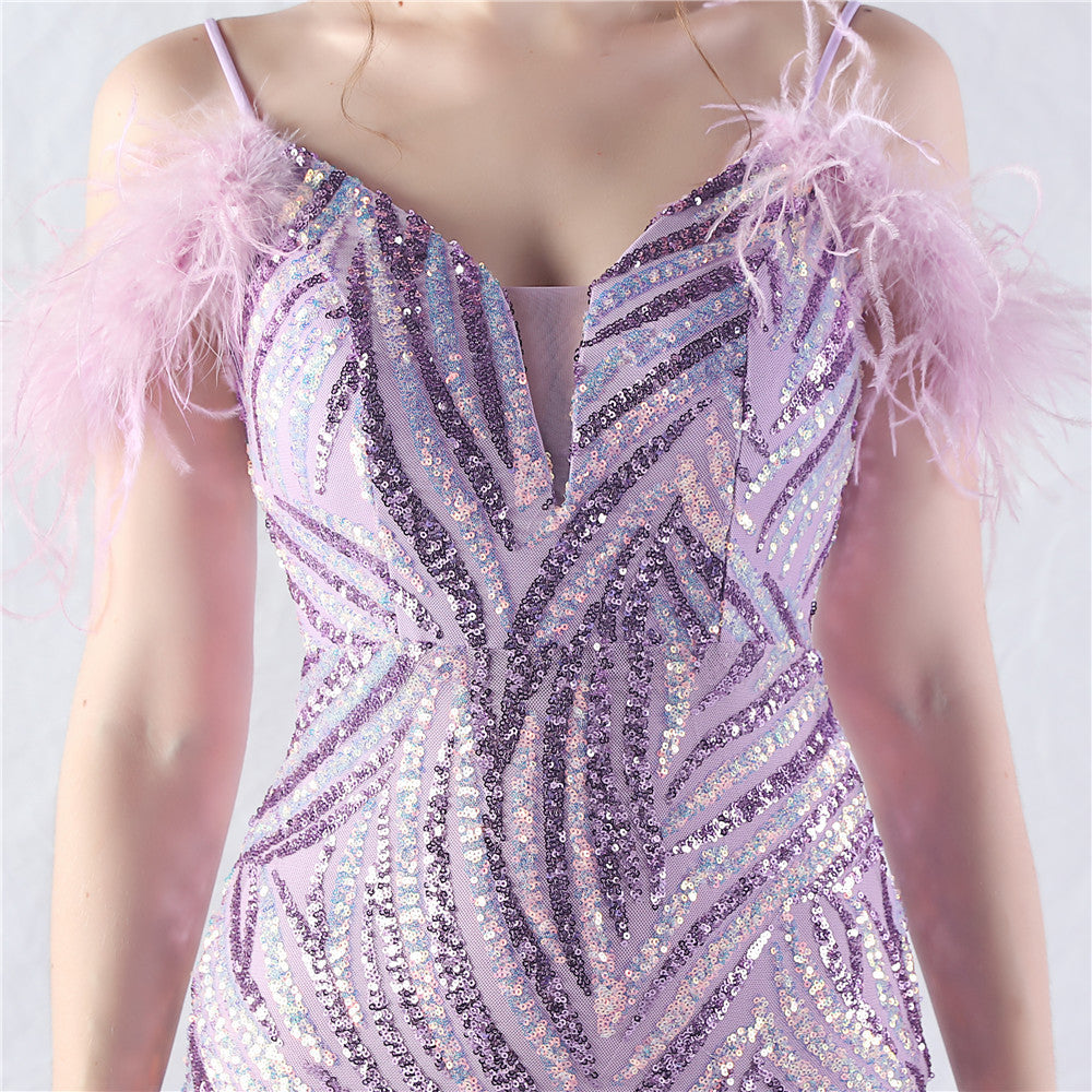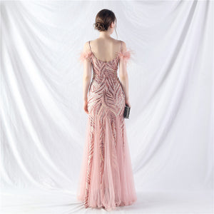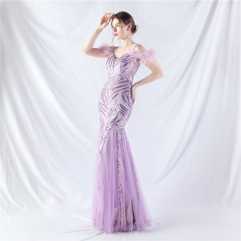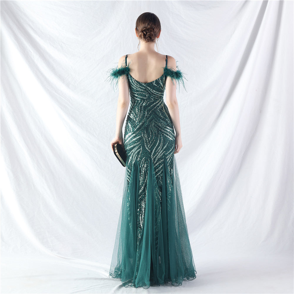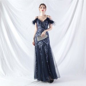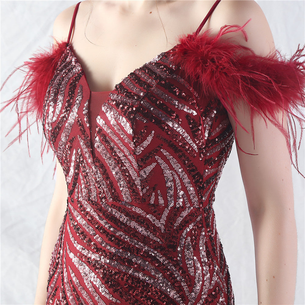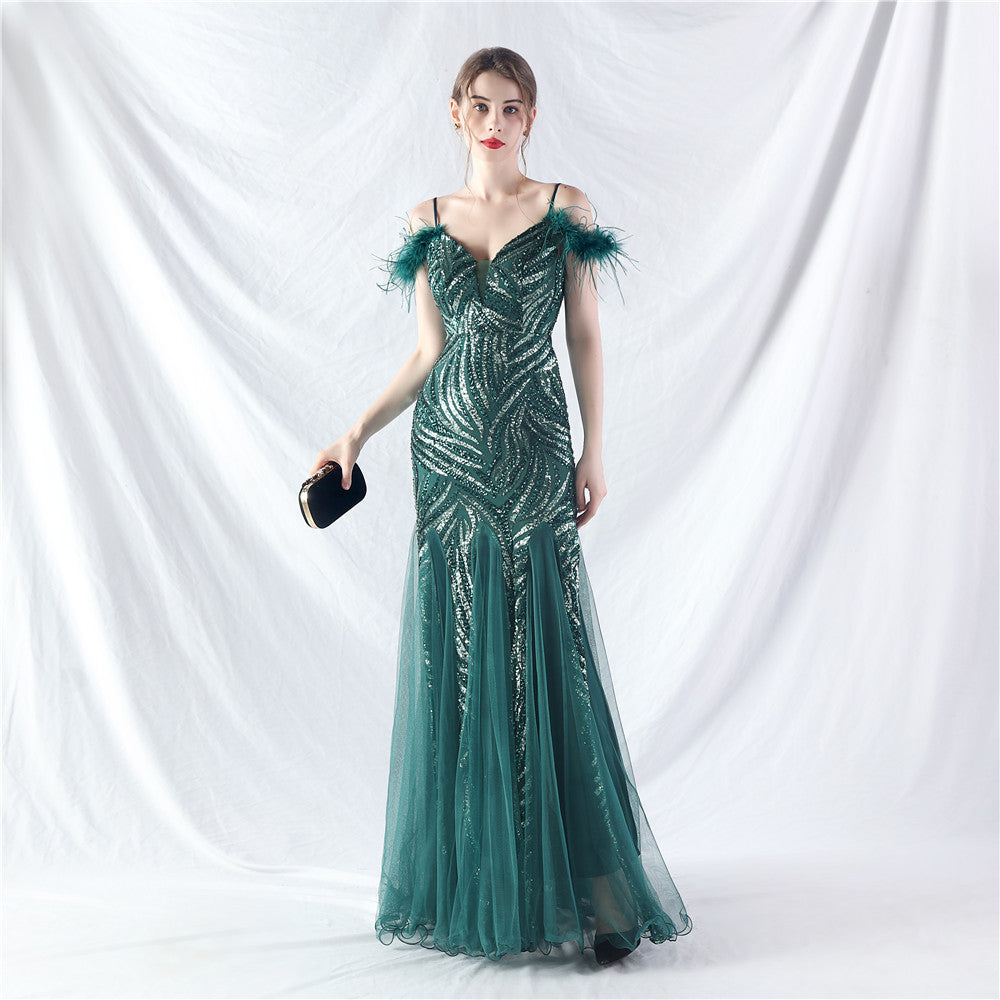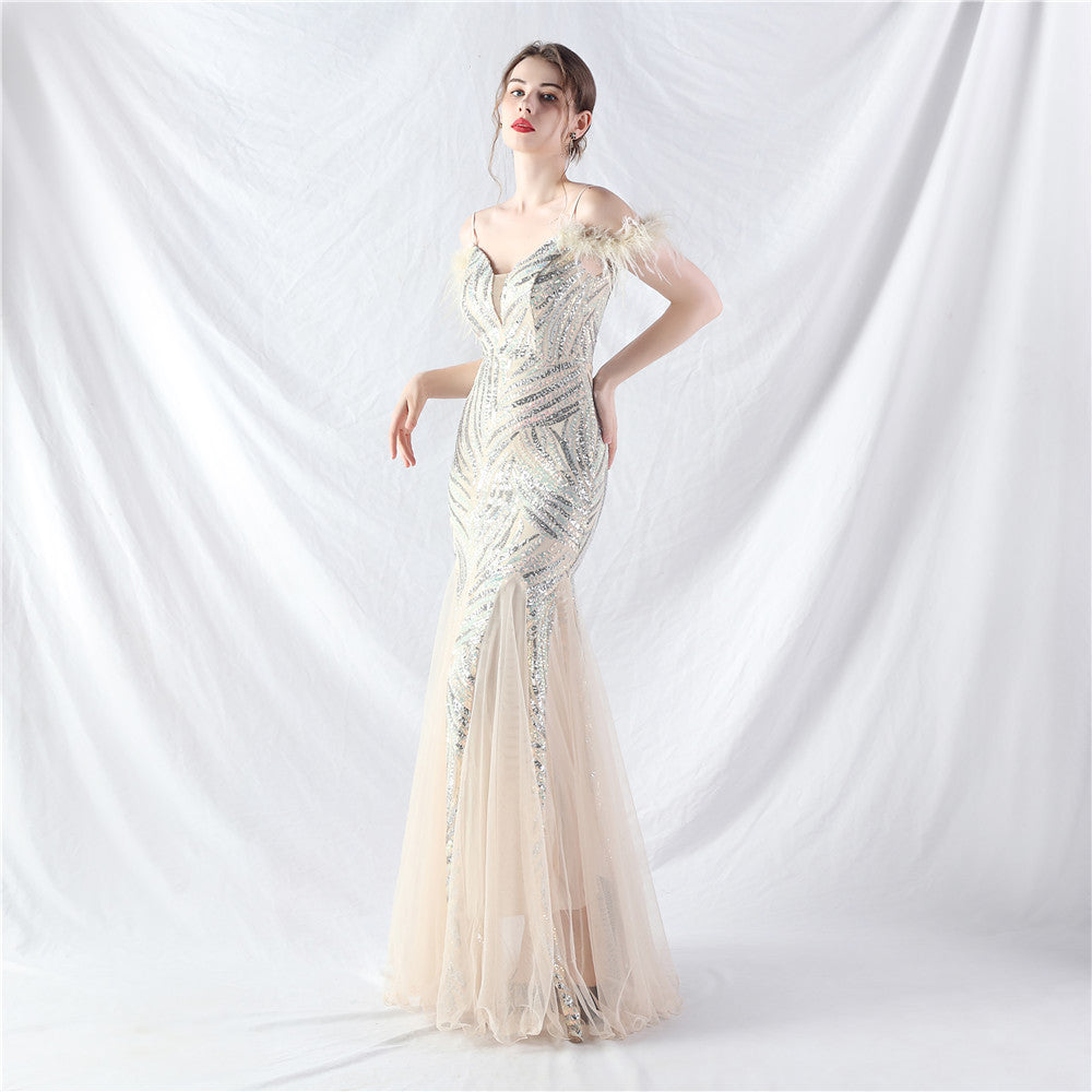 To ensure the best effect of the ostrich feather decorations, please use a hair dryer to gently fluff and smooth the feathers before wearing the gown. (Please use the hair dryer safely.)