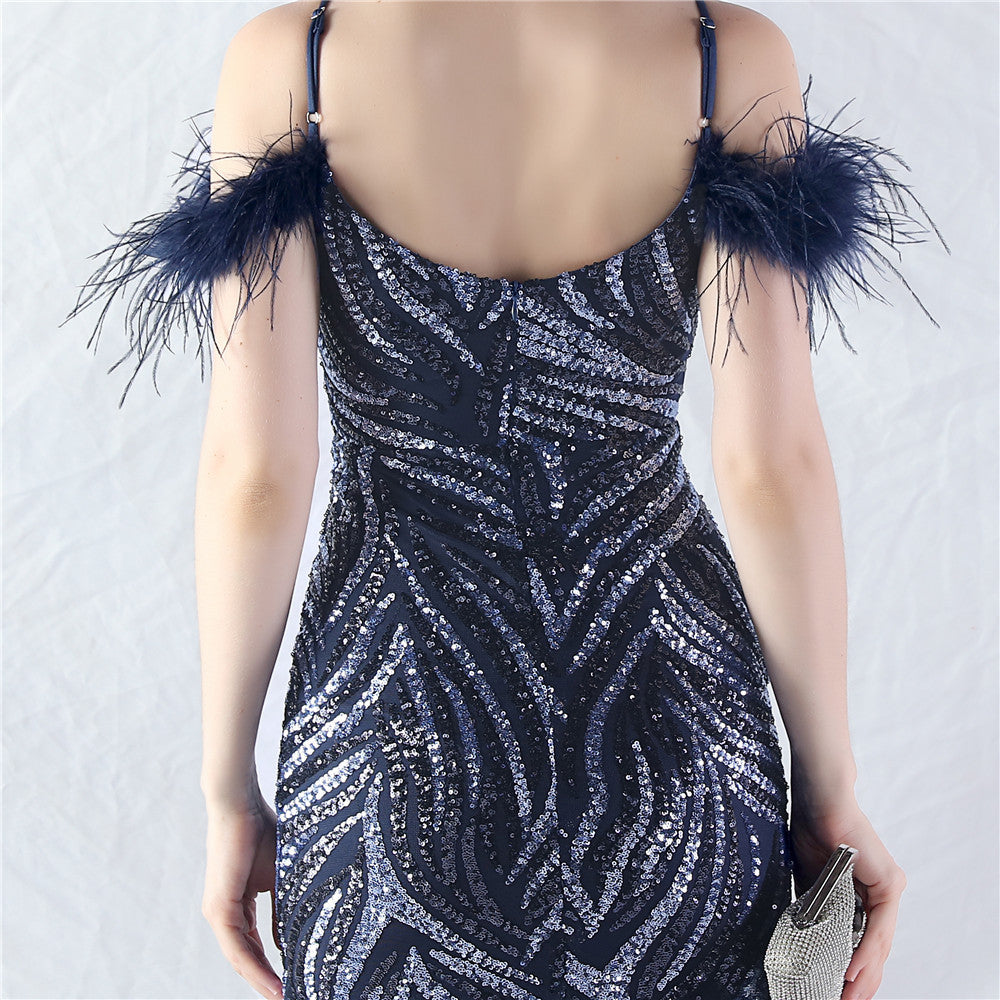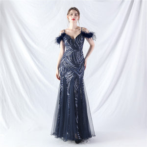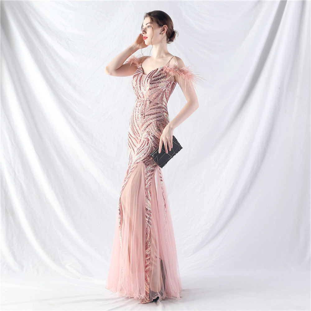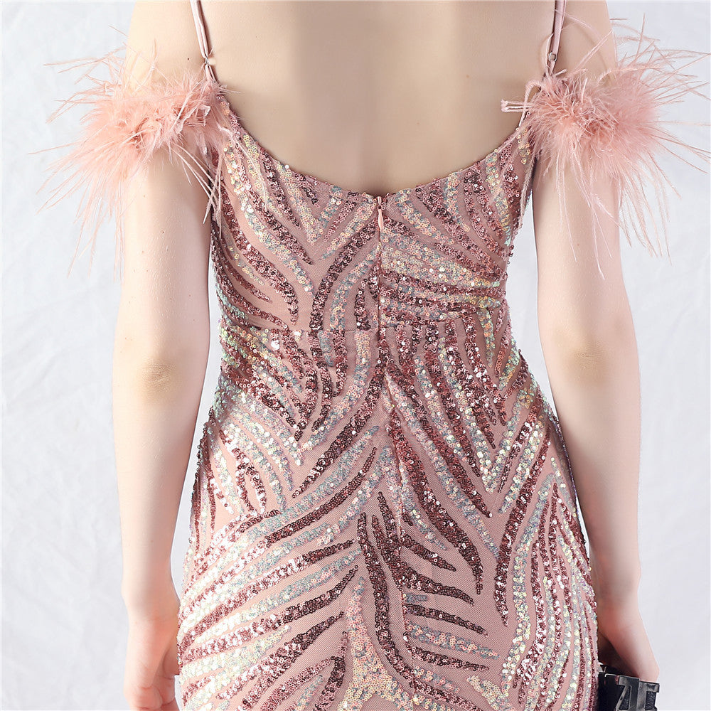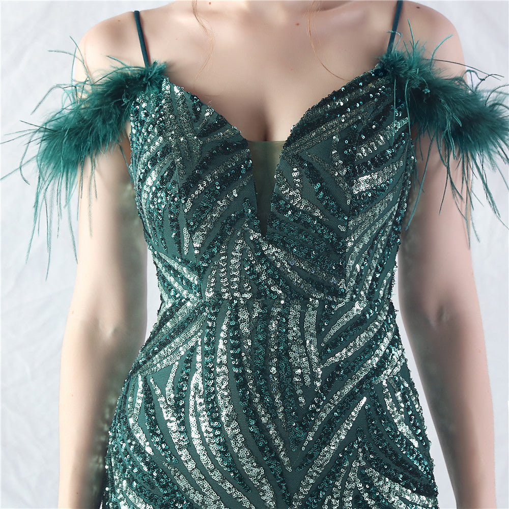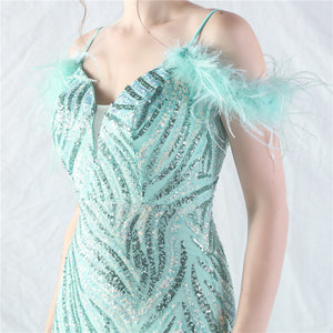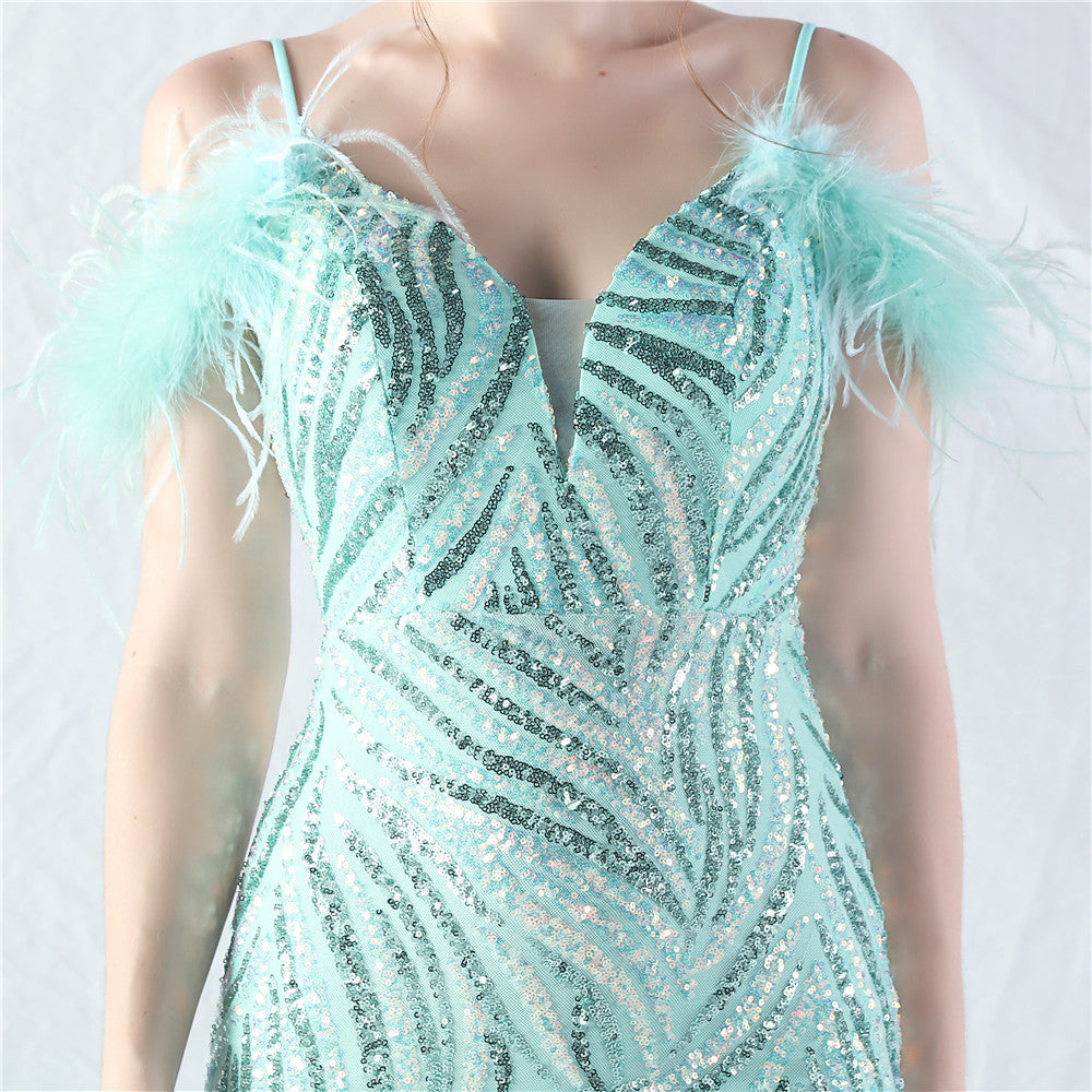 To ensure the best effect of the ostrich feather decorations, please use a hair dryer to gently fluff and smooth the feathers before wearing the gown. (Please use the hair dryer safely.)