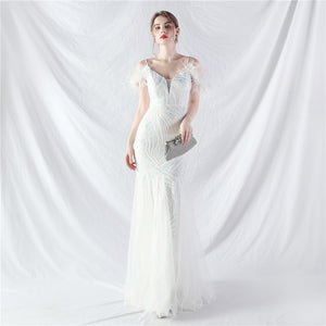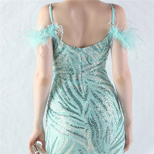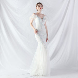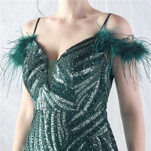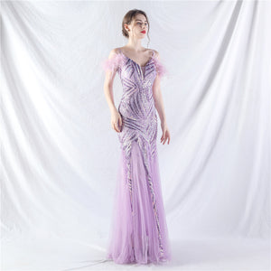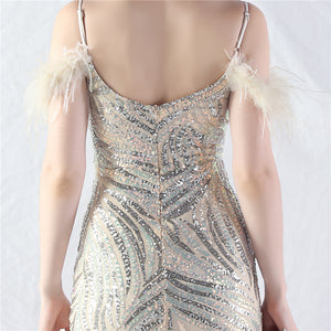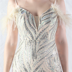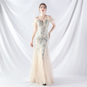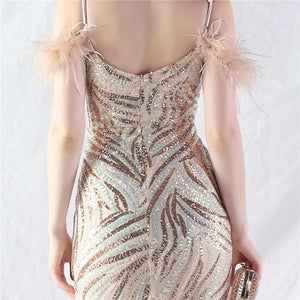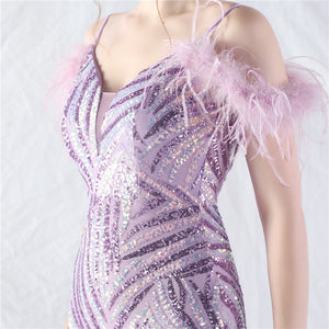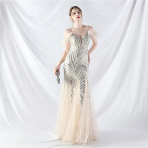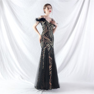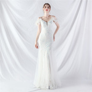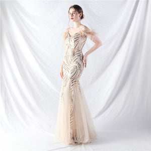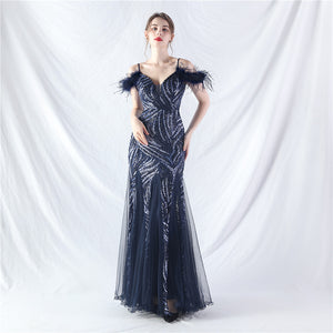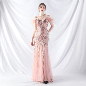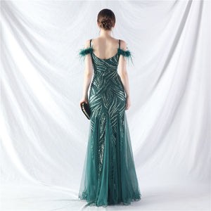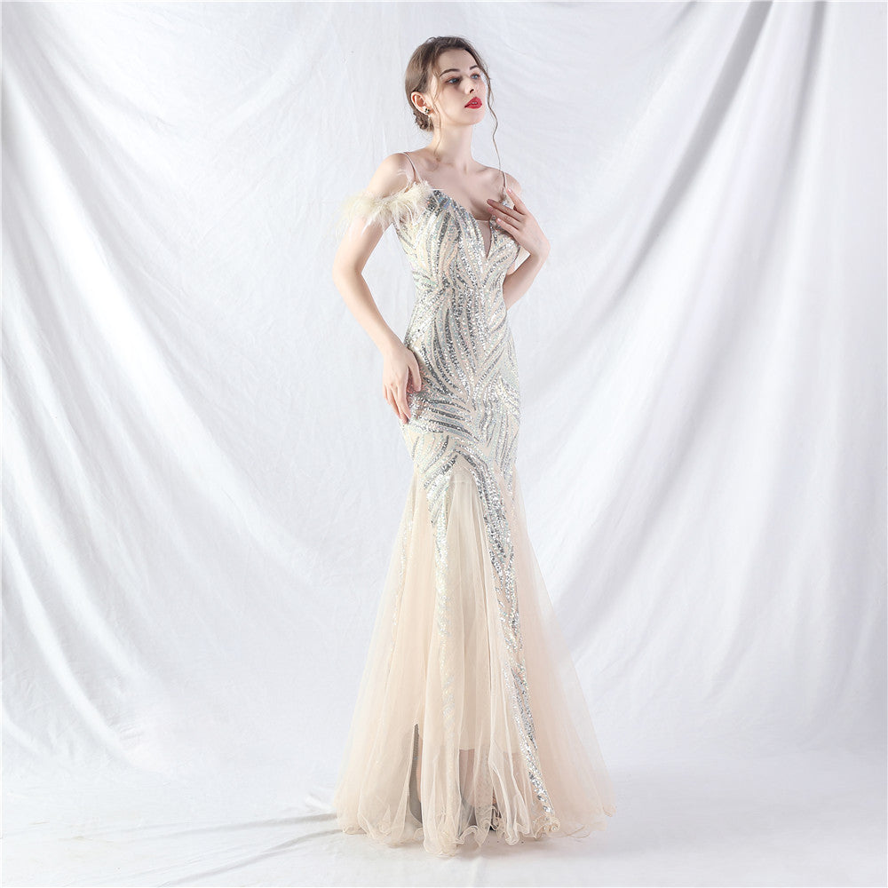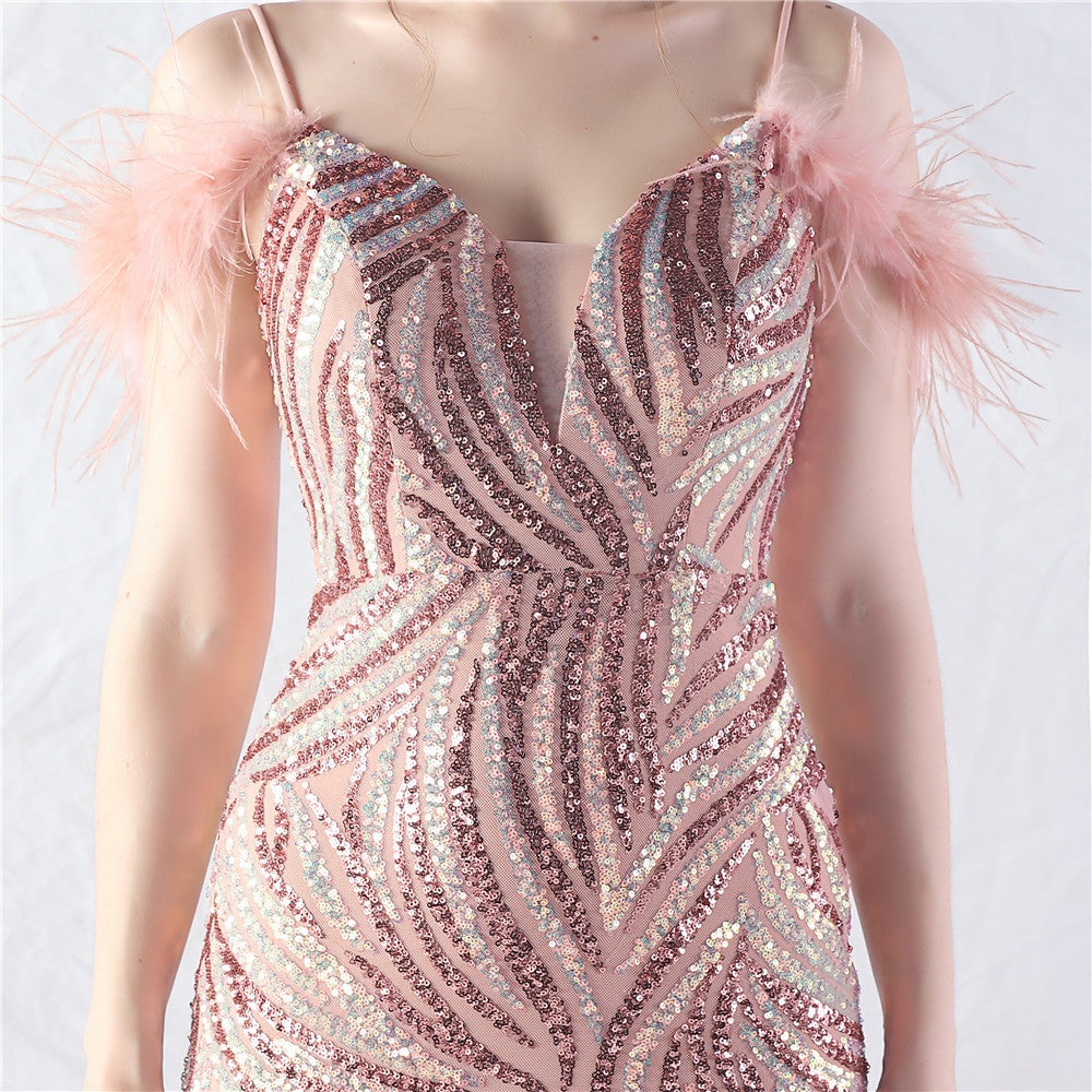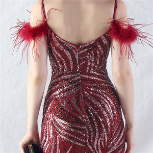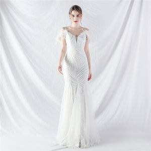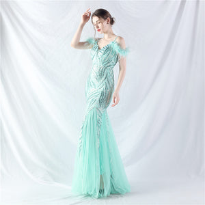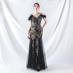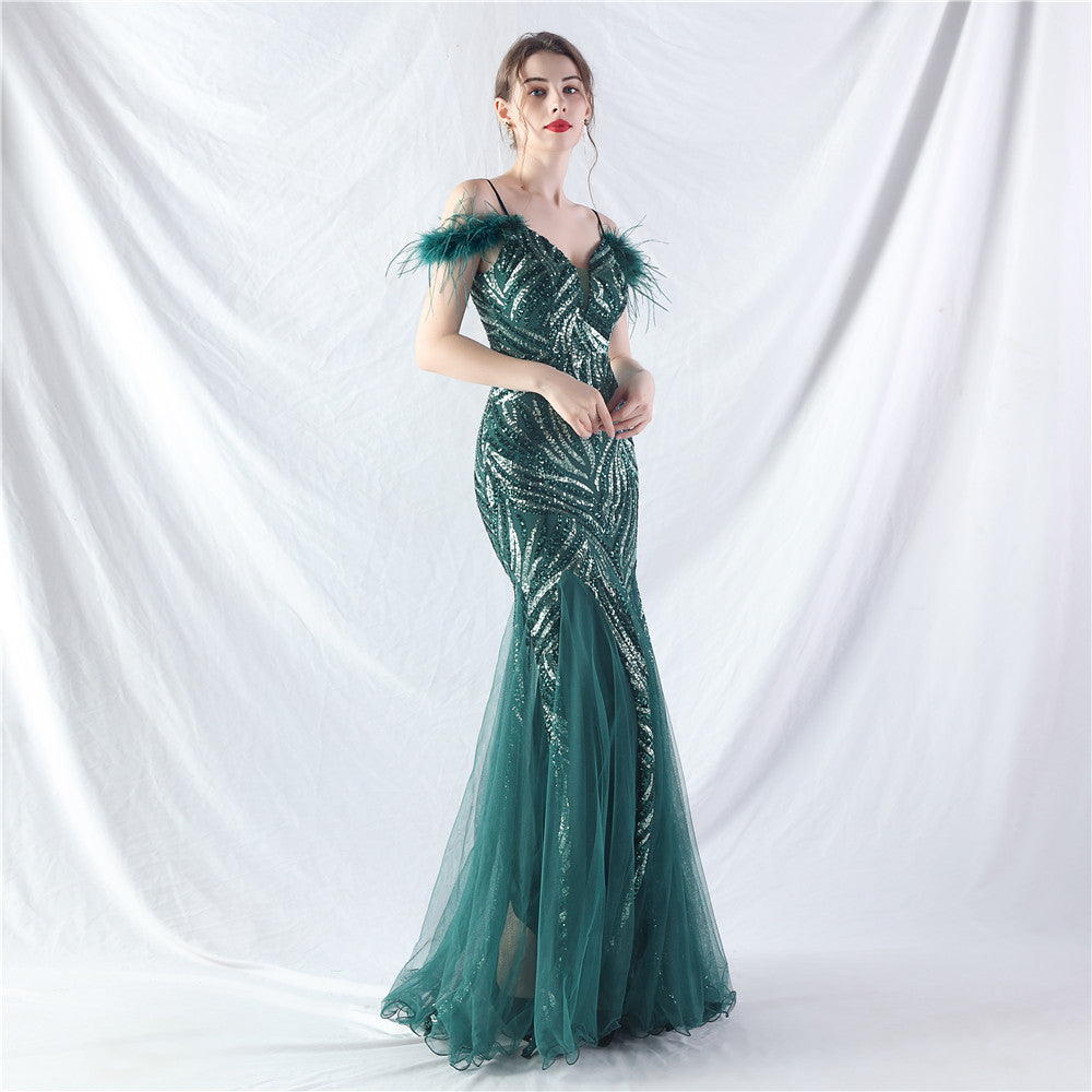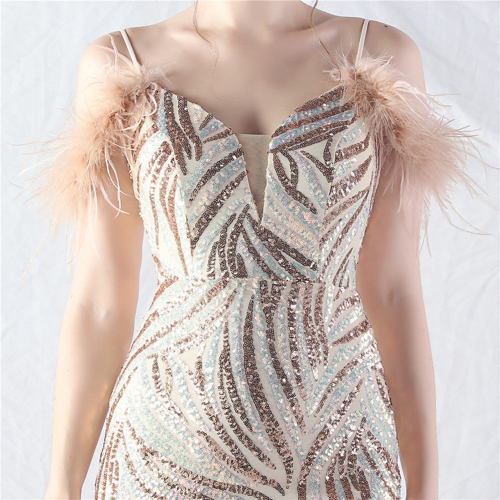 To ensure the best effect of the ostrich feather decorations, please use a hair dryer to gently fluff and smooth the feathers before wearing the gown. (Please use the hair dryer safely.)