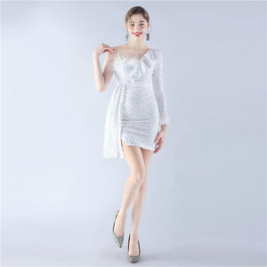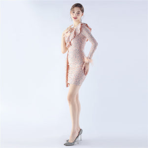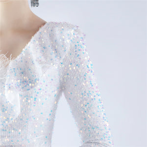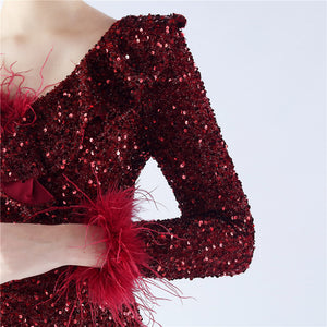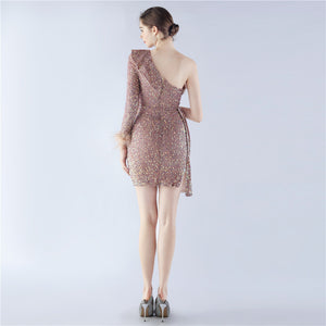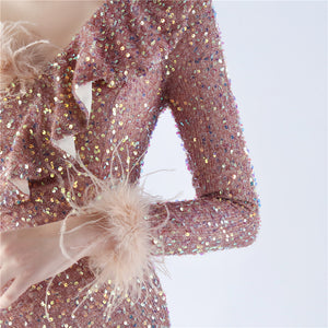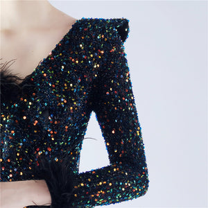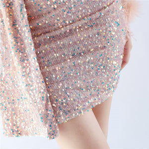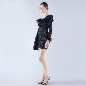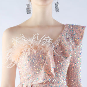 Embellished with Ostrich Feathers, Sequins, Padded Bust