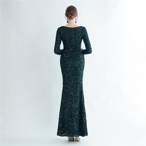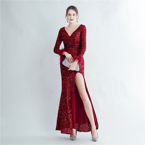 Split Long Sleeve Sequin Formal Dress