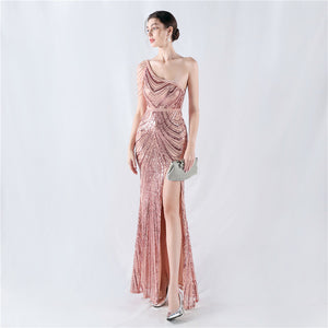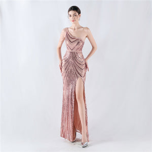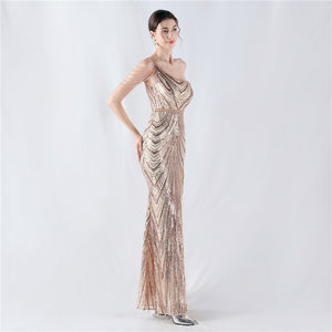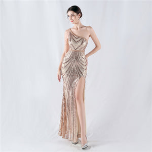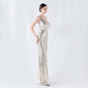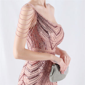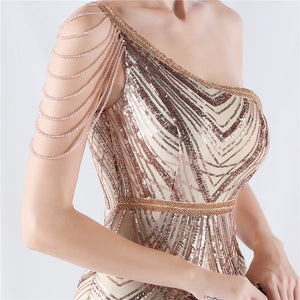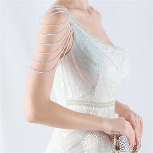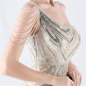 Placement Sequin Embroidery + Handcrafted Beading, with Built-in Chest Pads