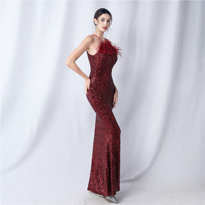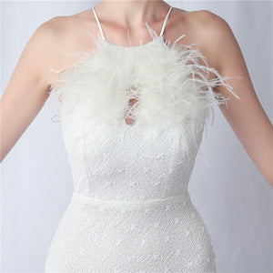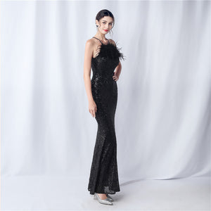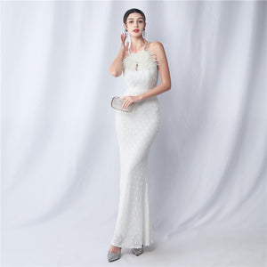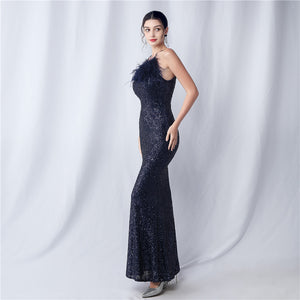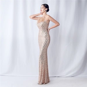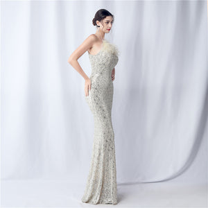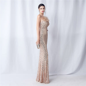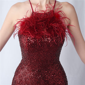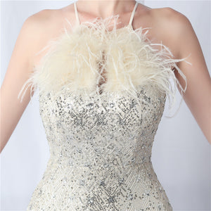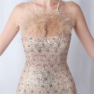 Checkered sequins + beadwork detailing + ostrich feather beading, with chest pads