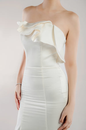 Strapless Satin Mermaid modern Wedding Dress with Sculptural Ruffle Detail - Aya. WL Bridal & Gown