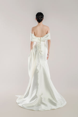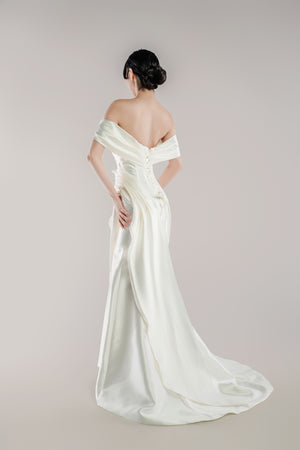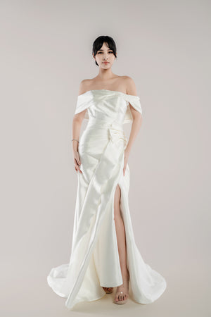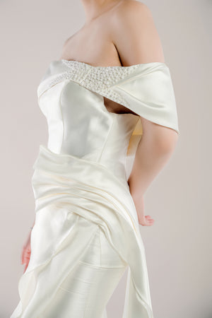 Gown Off-Shoulder Pearl Satin Mermaid Wedding Formal Dress