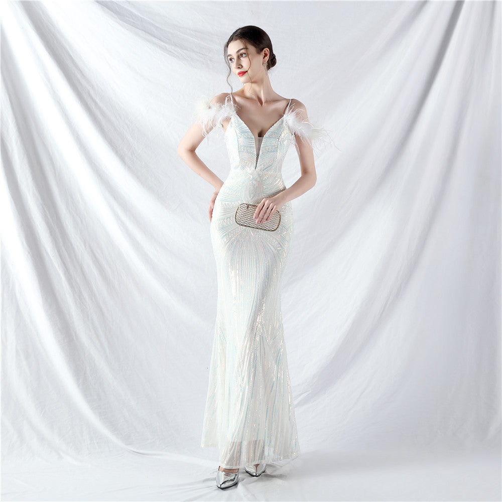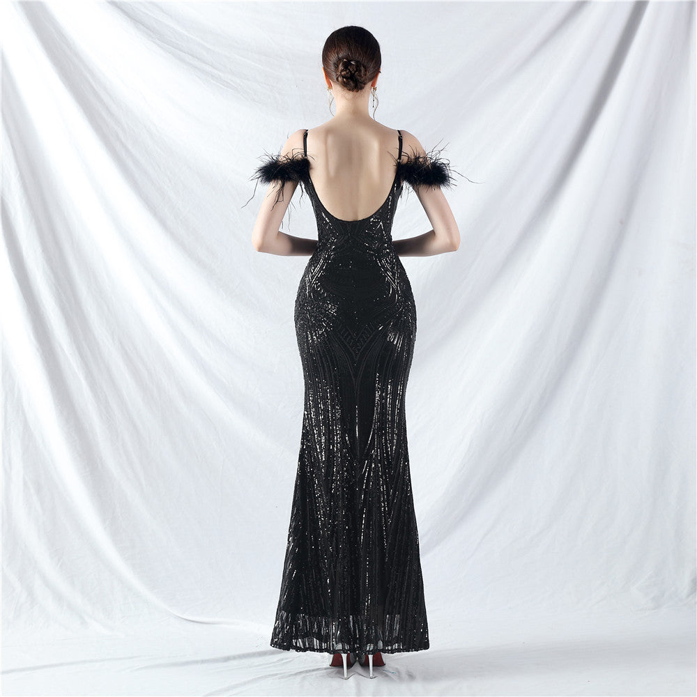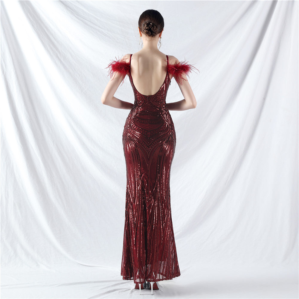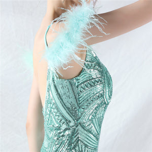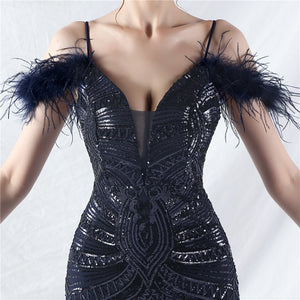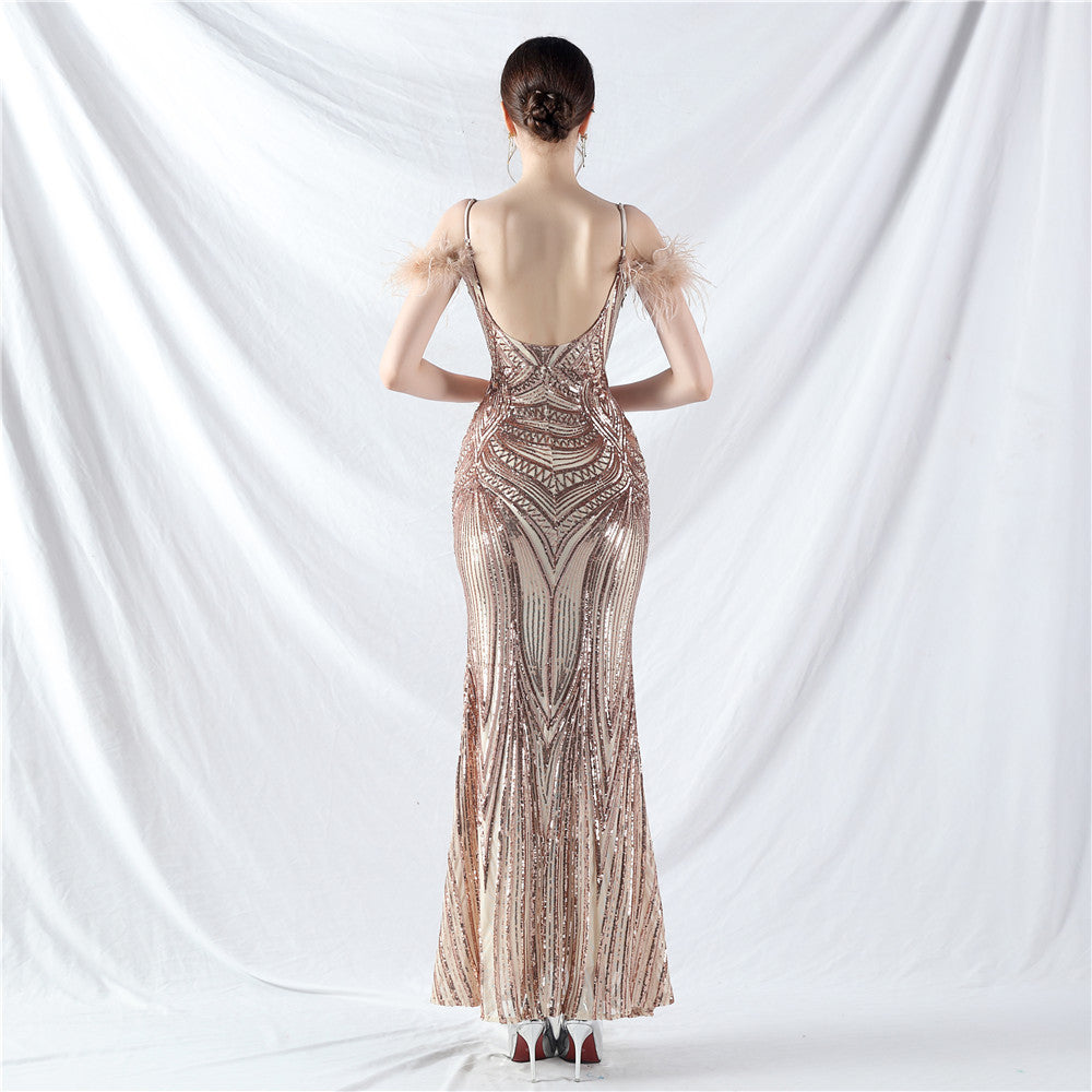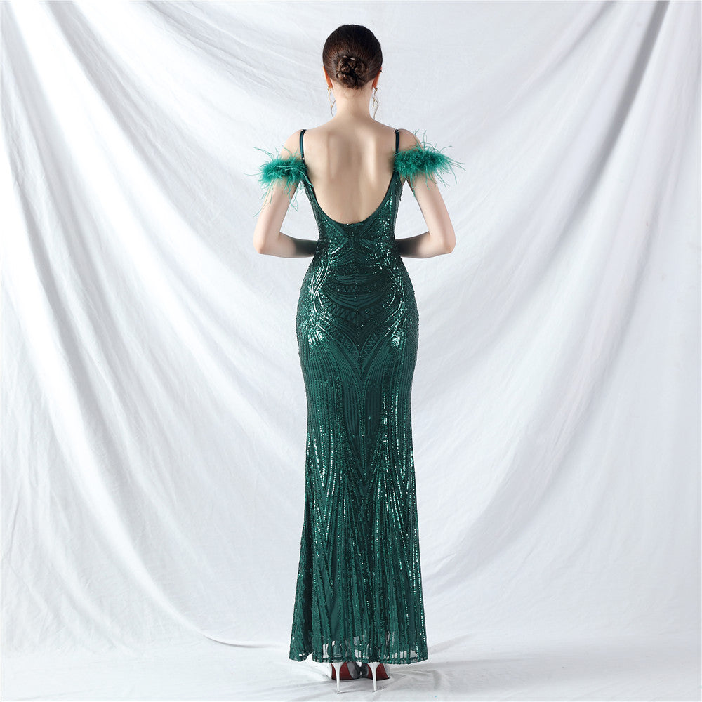 fixed flower beads and crafted ostrich feathers, with chest pads