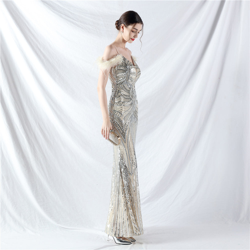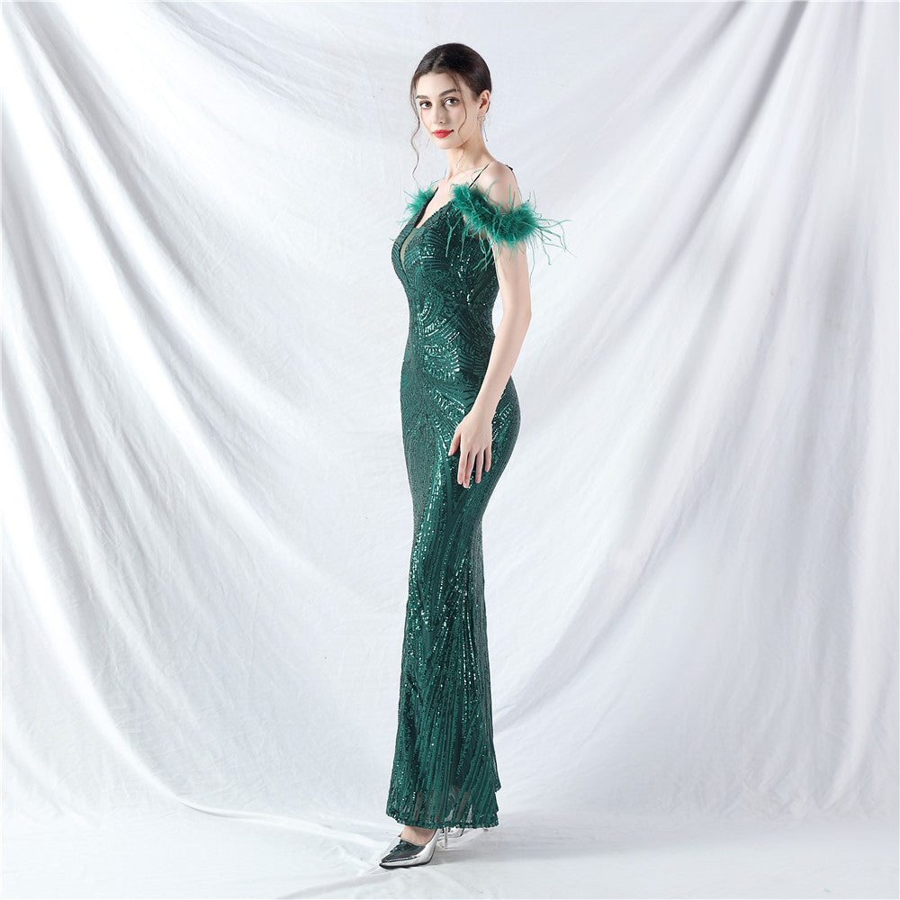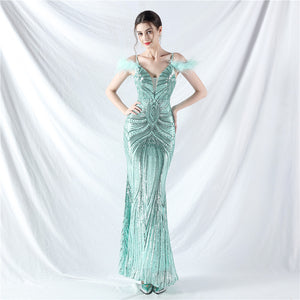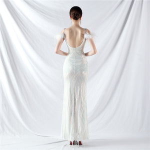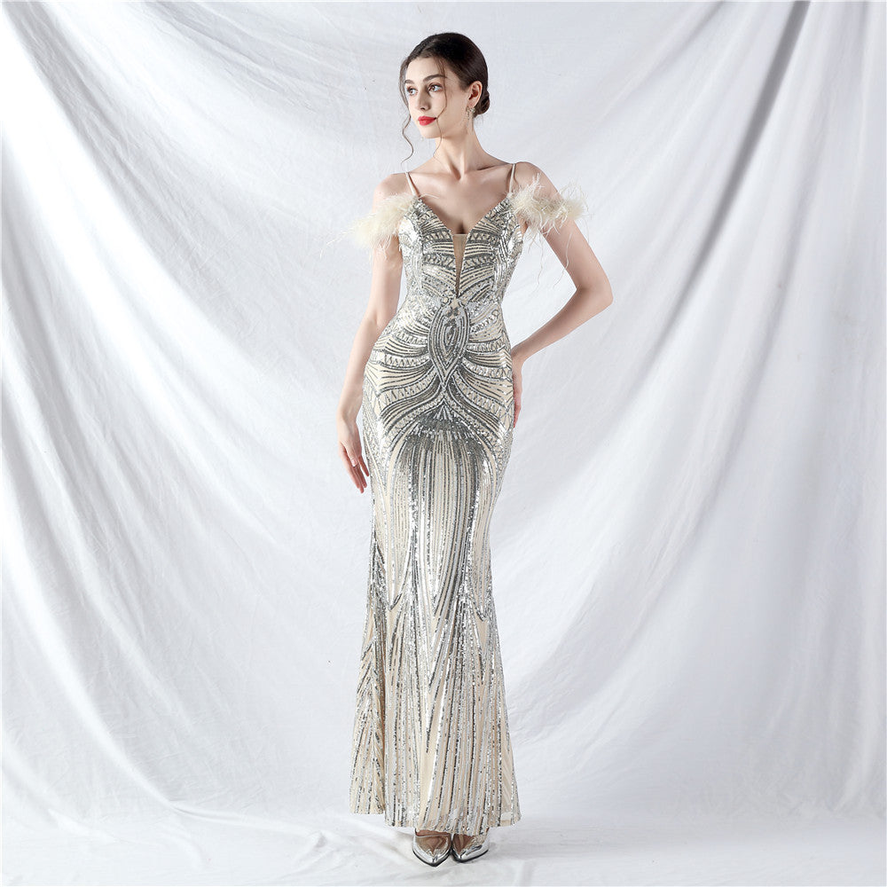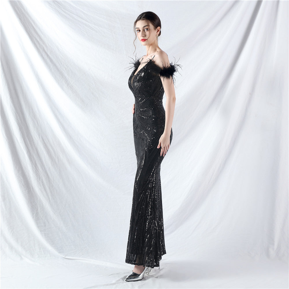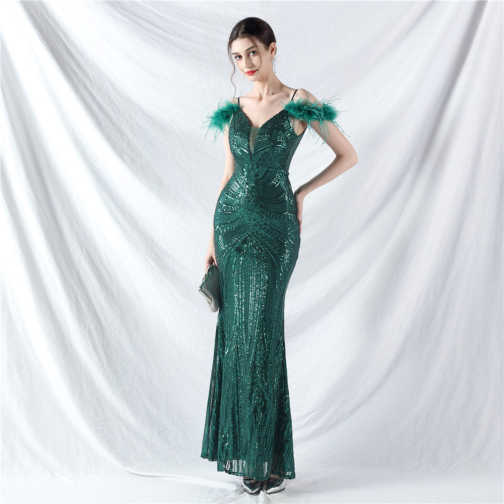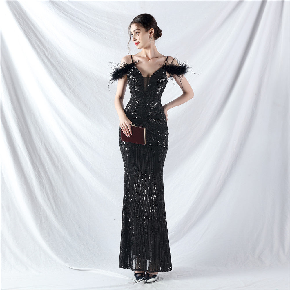 fixed flower beads and crafted ostrich feathers, with chest pads