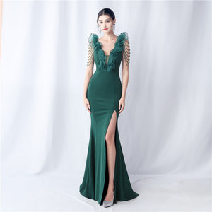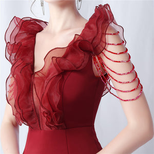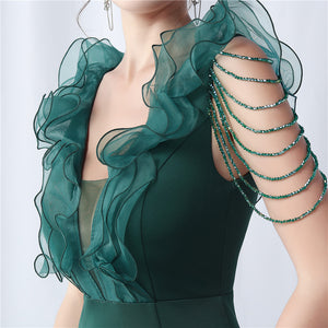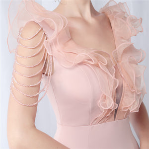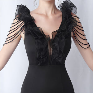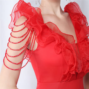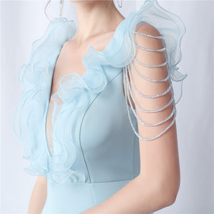 Satin + Premium Organza + Handcrafted Beadwork, Built-in Chest Pads