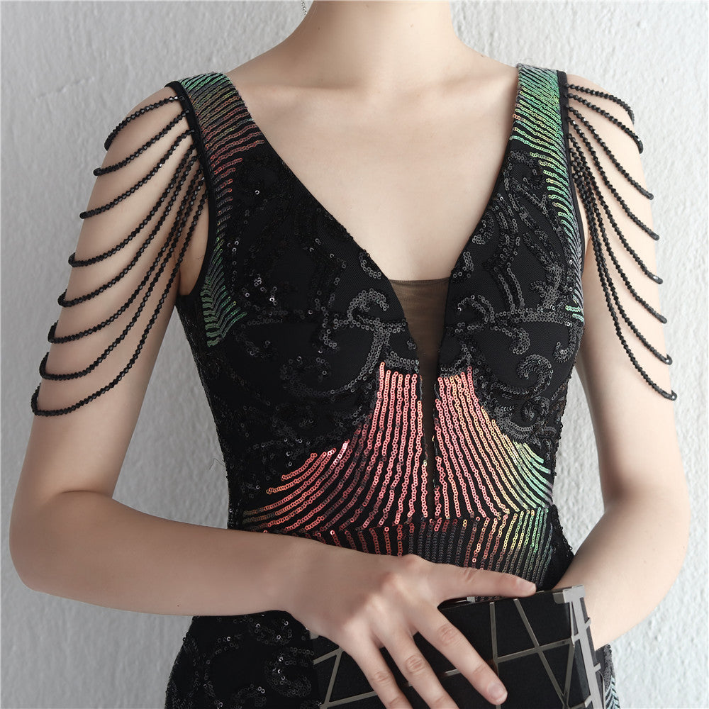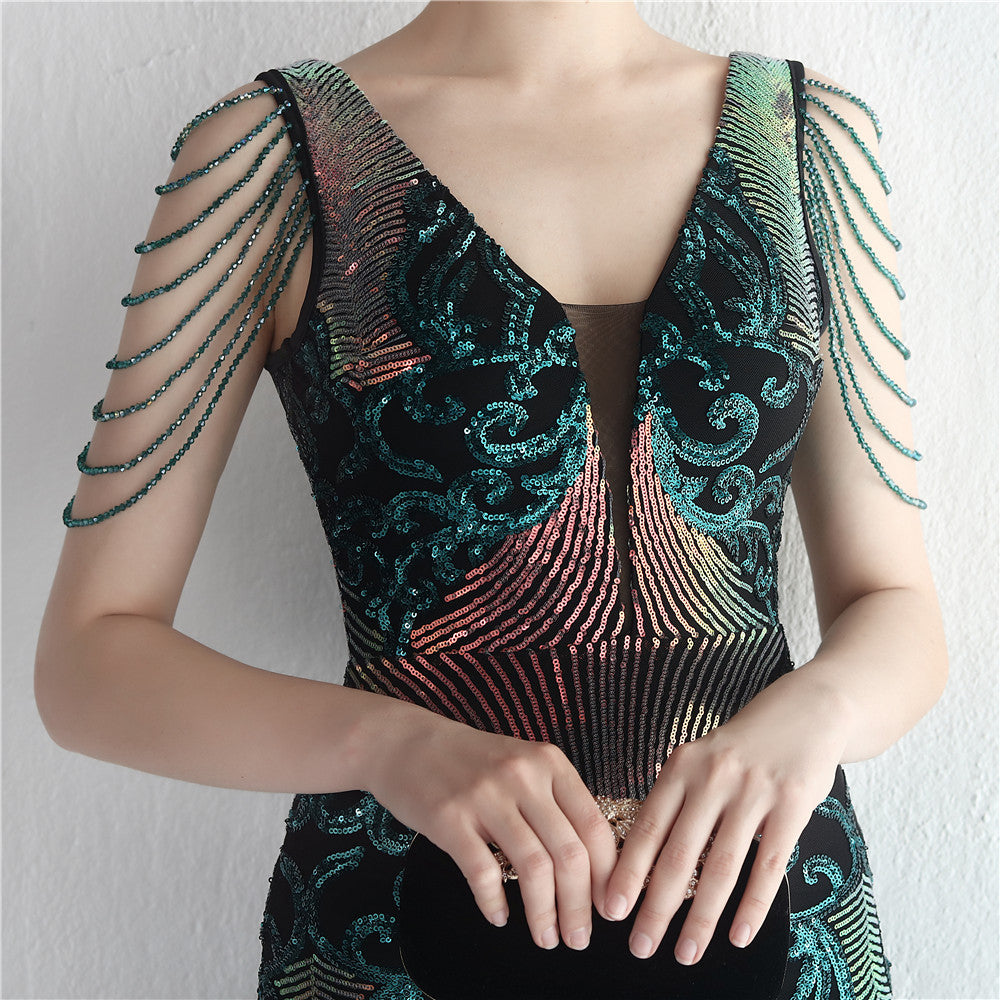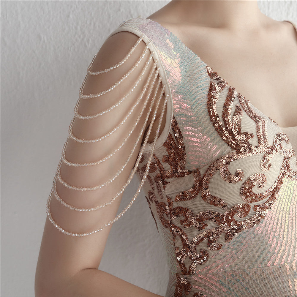 Whole Positioned Flower Cropped Ten Craft Beaded Formal Dress