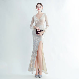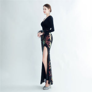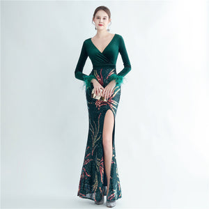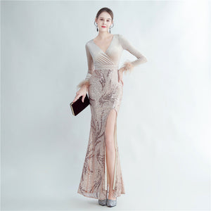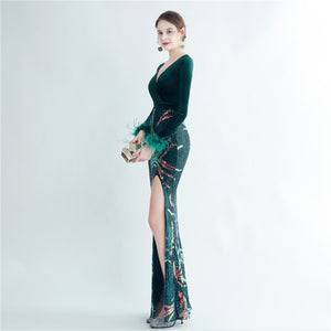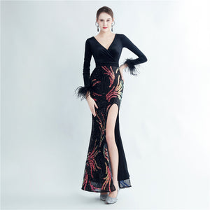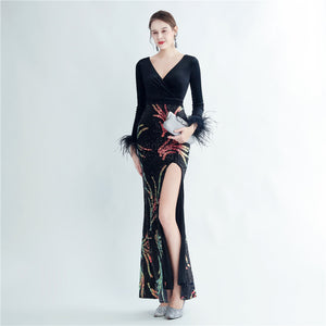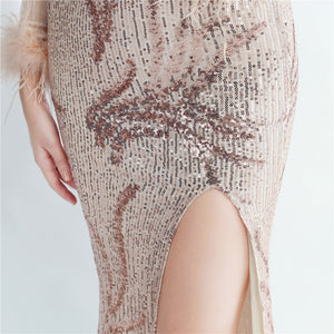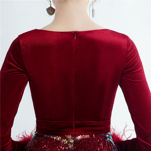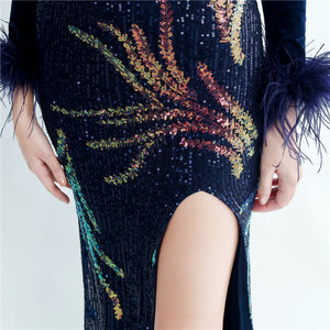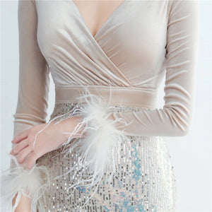 Sequins + Velvet + Ostrich feather detailing, with chest pads