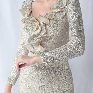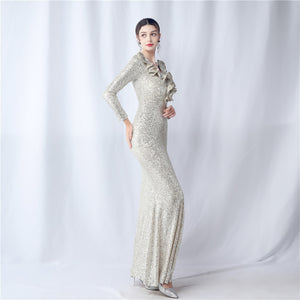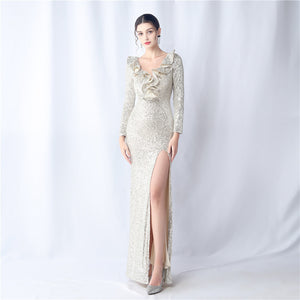 Sequined Floral Detailing on Both Sides of the Chest + Sequin Embroidery, Built-in Chest Pads