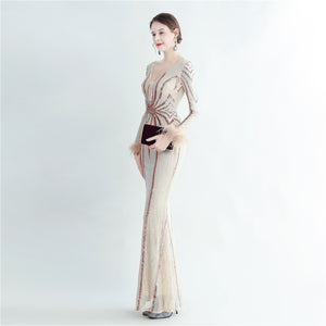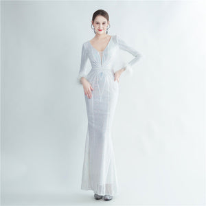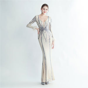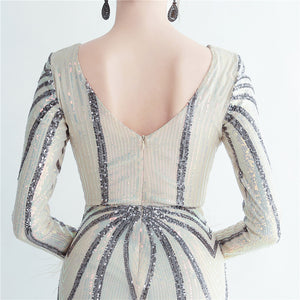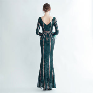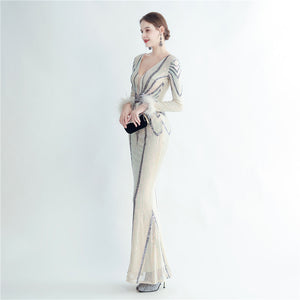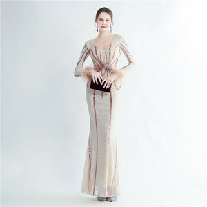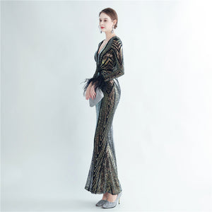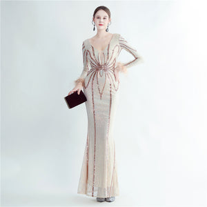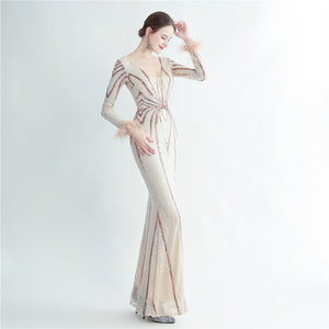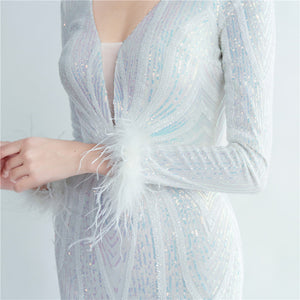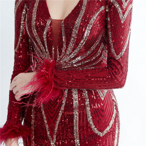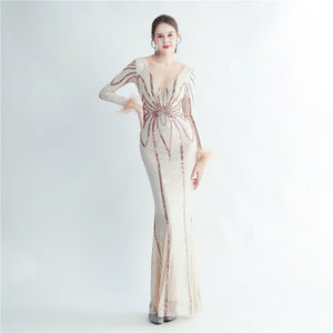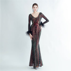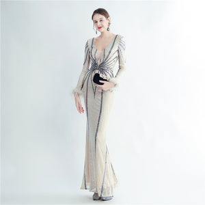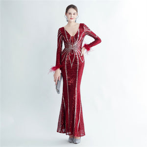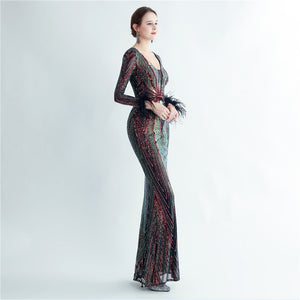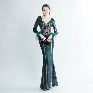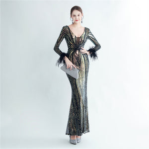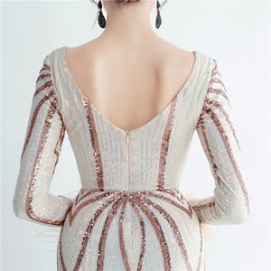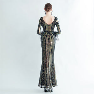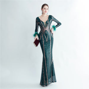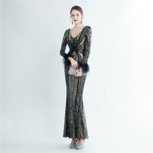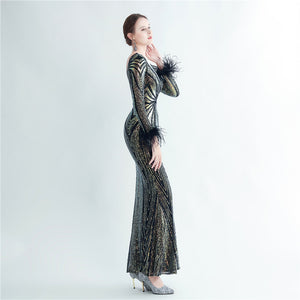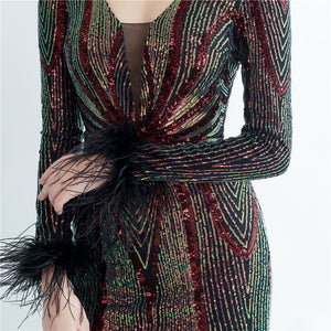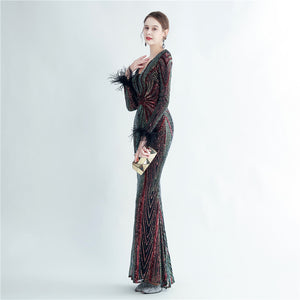 Velvet Base with Handcrafted Sequins, Beading, and Ostrich Feathers