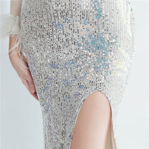 Velvet Base with Handcrafted Sequins, Beading, and Ostrich Feathers
