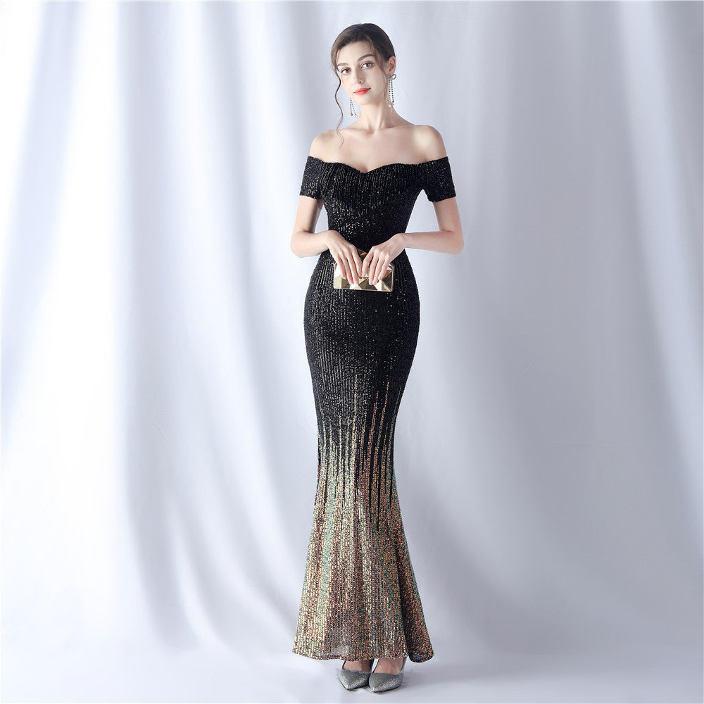 Gradient sequins with intricate beadwork, includes built-in chest pads