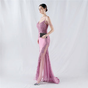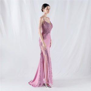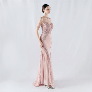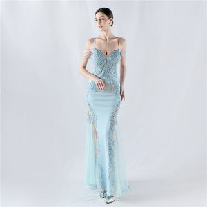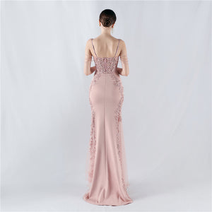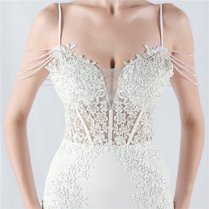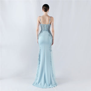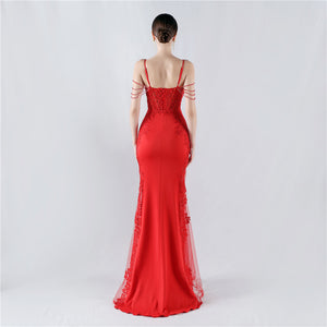 Satin with Heavy Bone Structure, Handcrafted Hot Drill Flower Edge, Handcrafted Beading, Built-in Chest Pads.