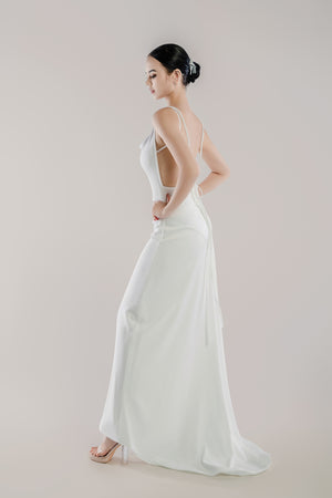 Like moonlight draped across the skin, this wedding dress captures a quiet kind of elegance.