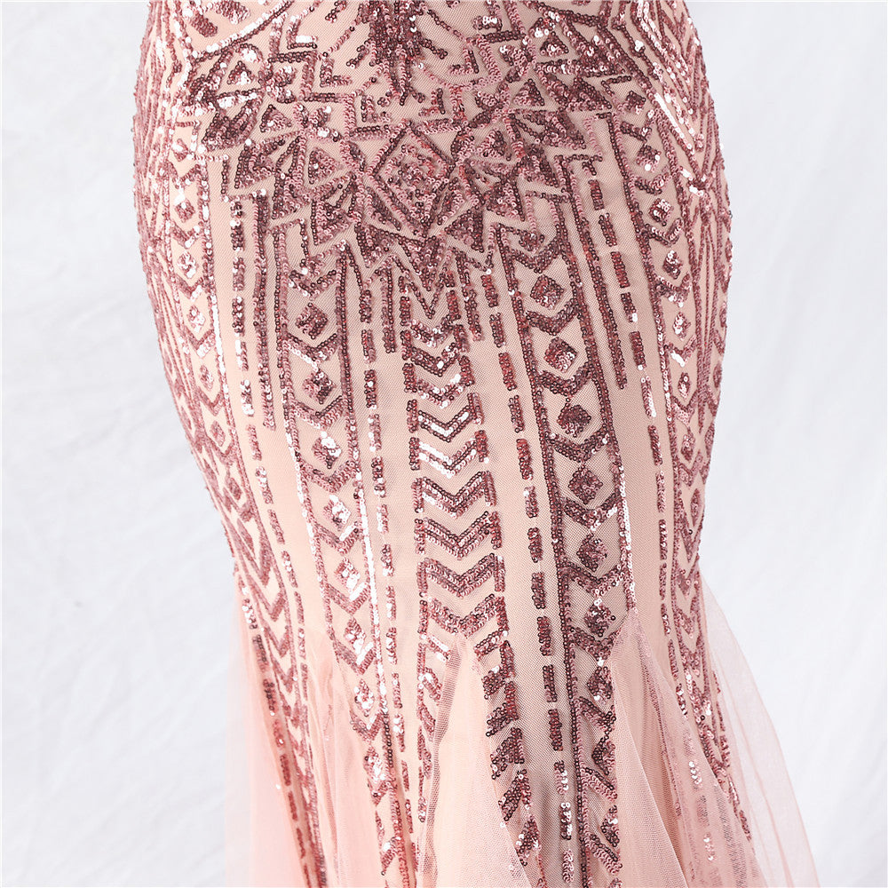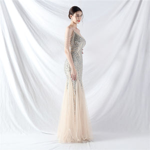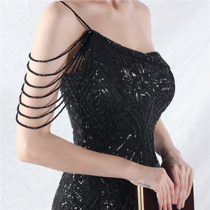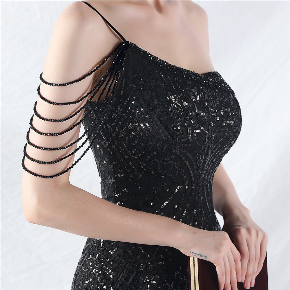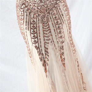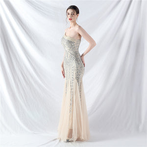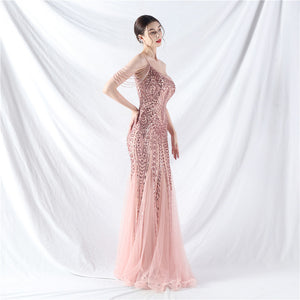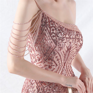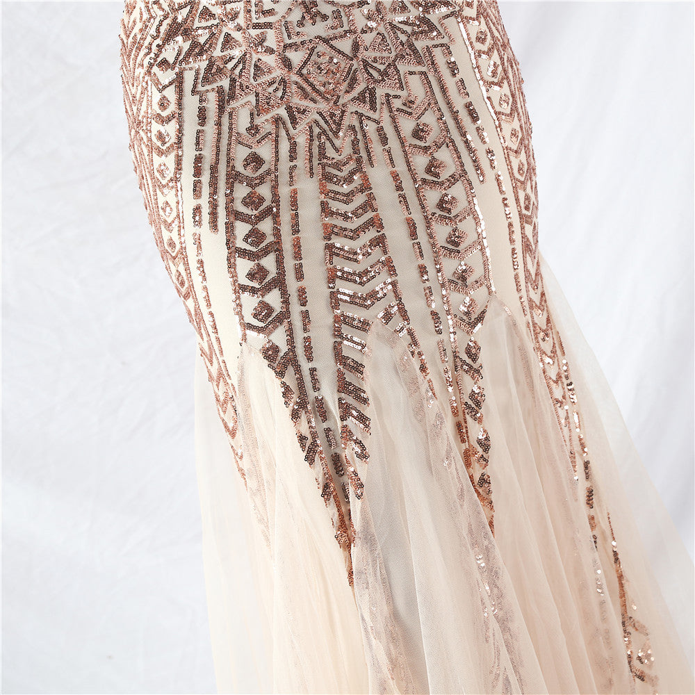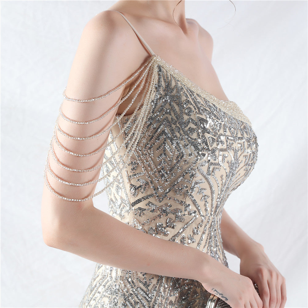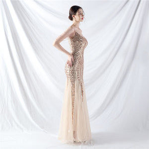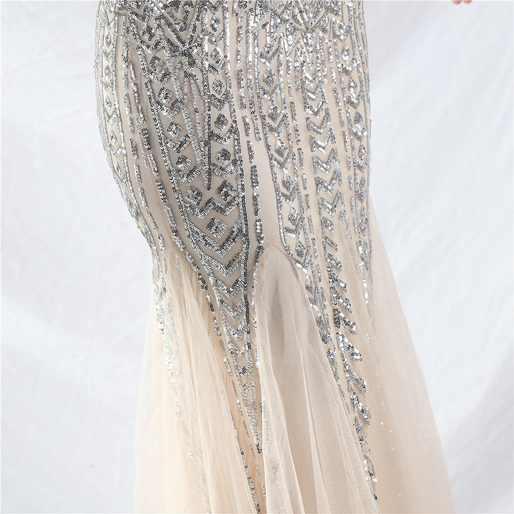 Placement Sequin Embroidery + Front Chest Handcrafted Beading + Hand Beaded Sleeves + Tulle, with Built-in Chest Pads