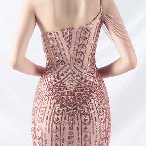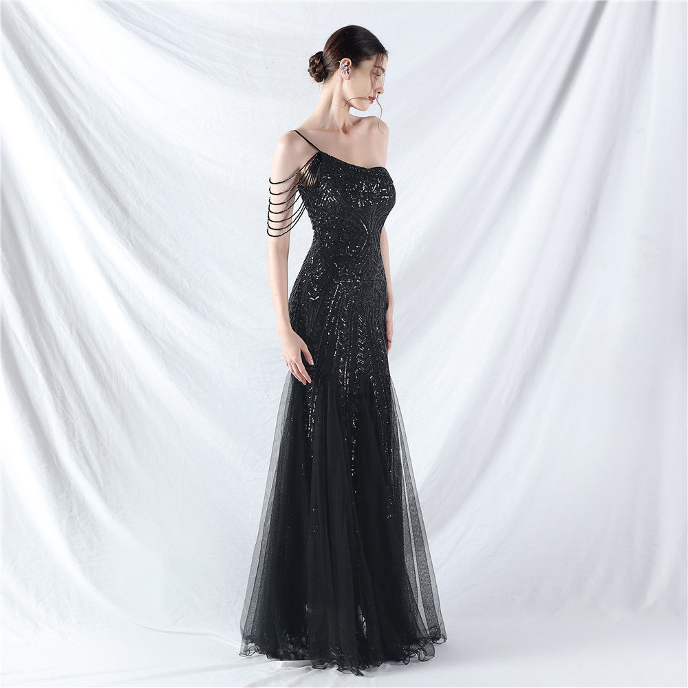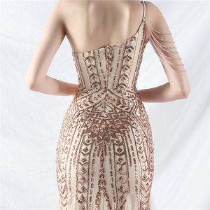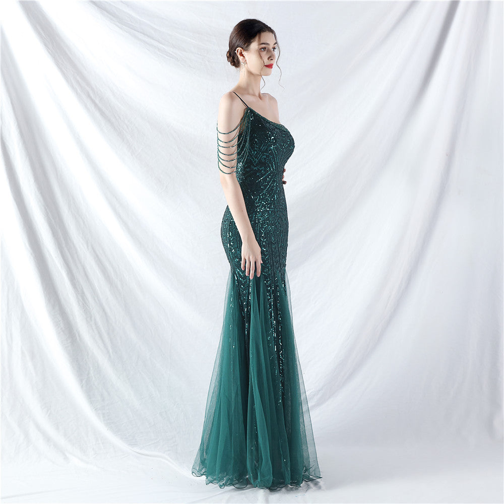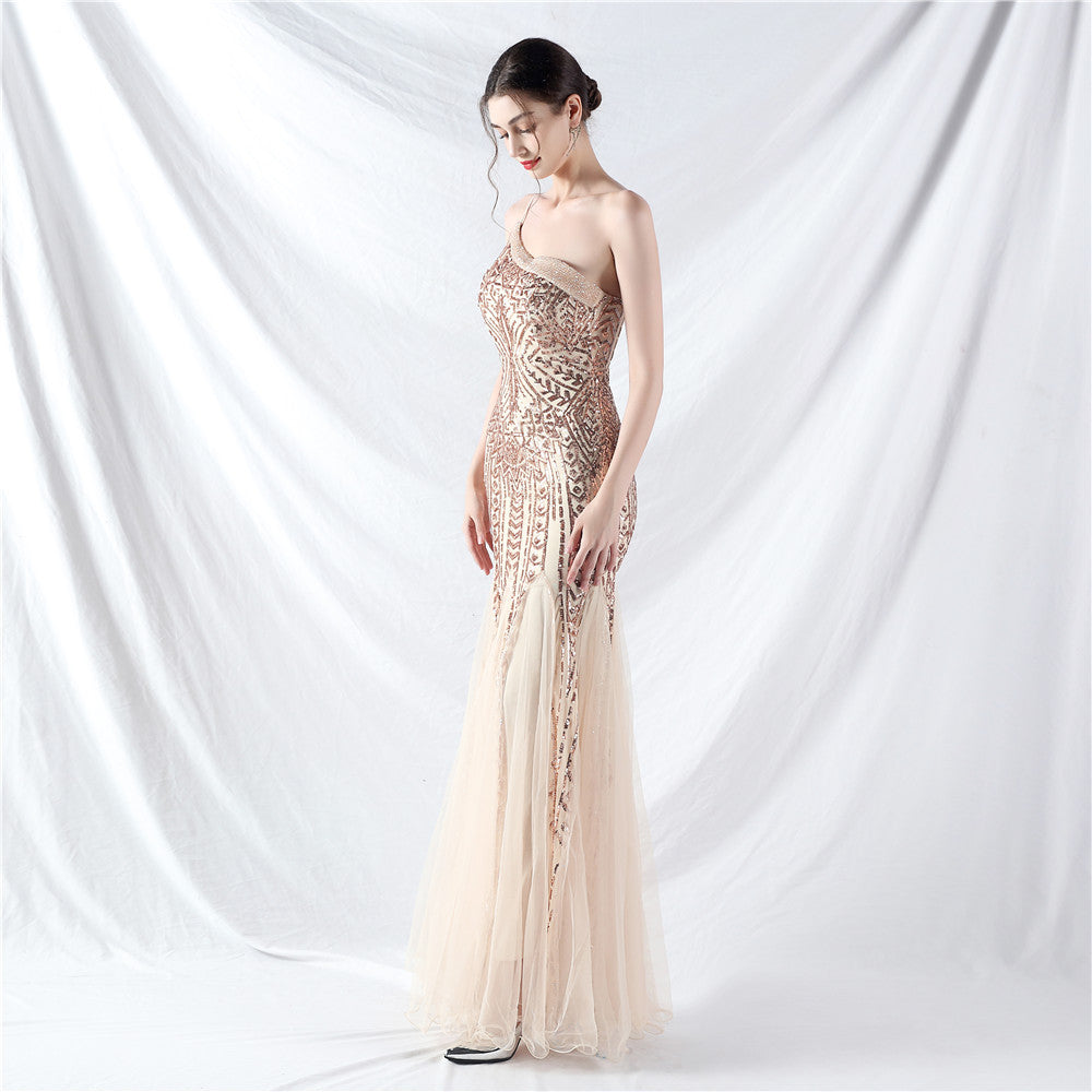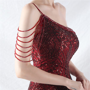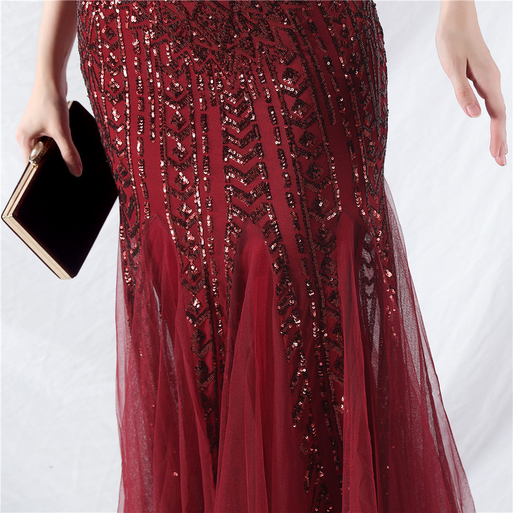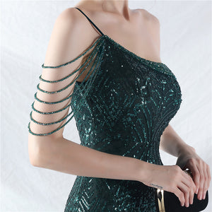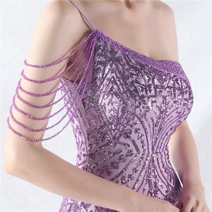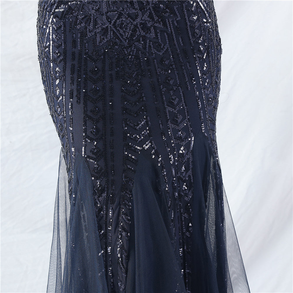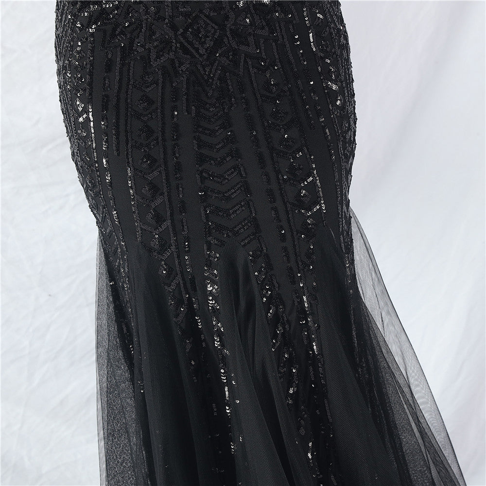 Placement Sequin Embroidery + Front Chest Handcrafted Beading + Hand Beaded Sleeves + Tulle, with Built-in Chest Pads