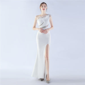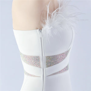 Rhinestone detailing with ostrich feather embellishment, with chest pads