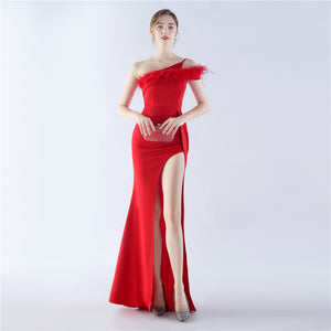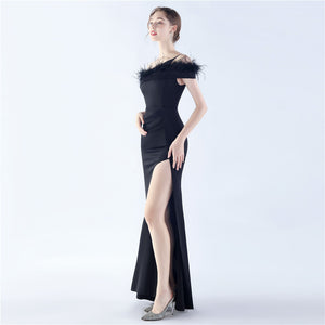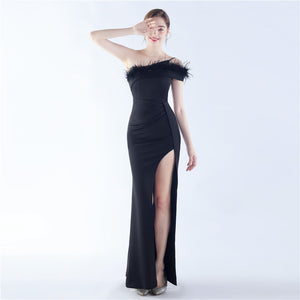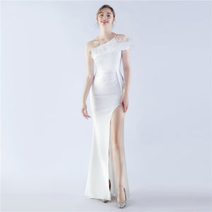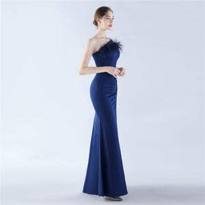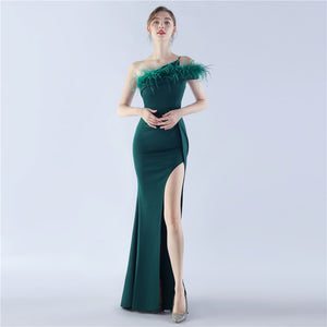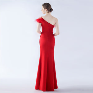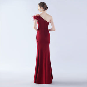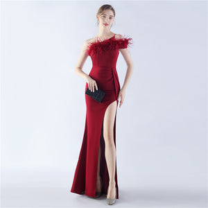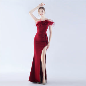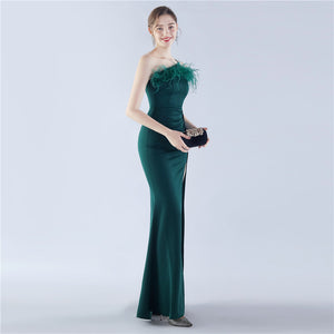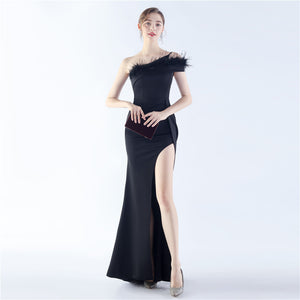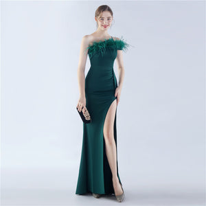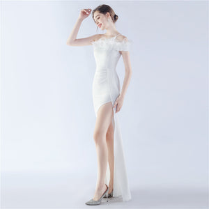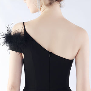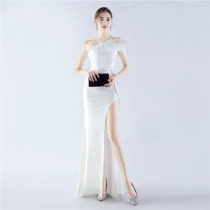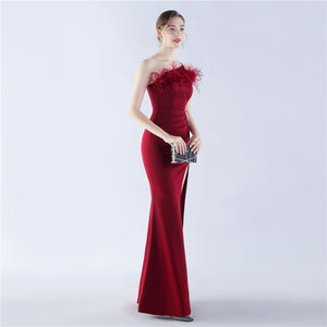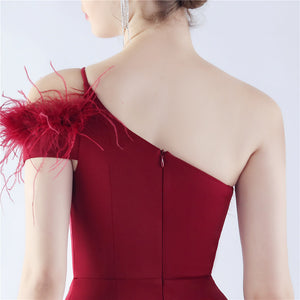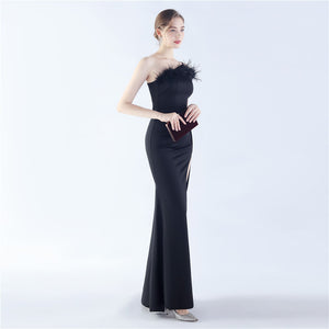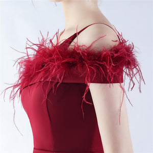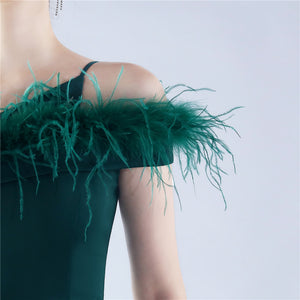 Ostrich Feather Embroidery + Satin with Built-in Bra
