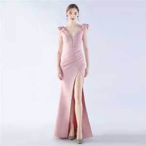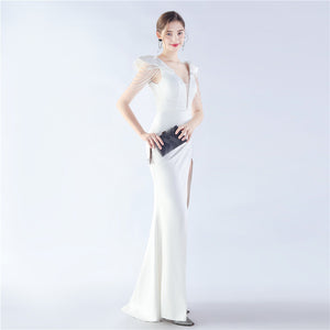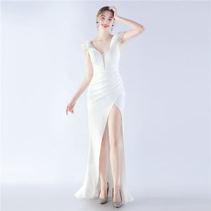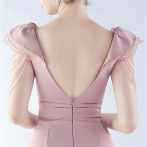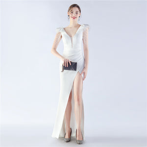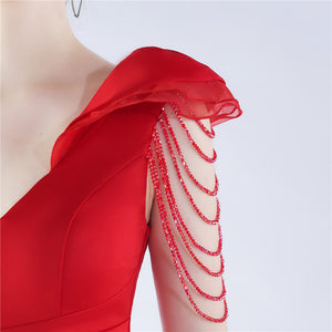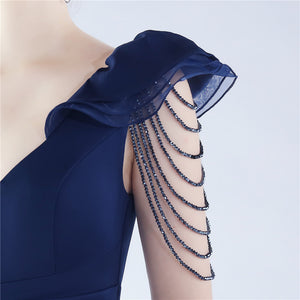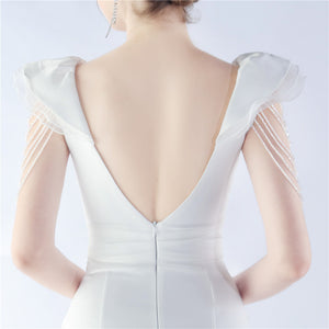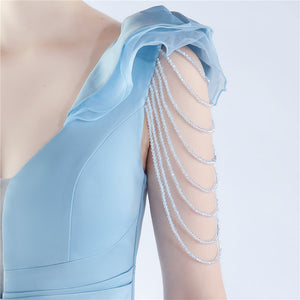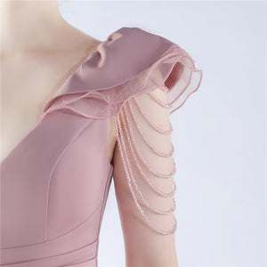 Satin with Organza Detailing and Beading Craftsmanship, Built-in Chest Pads
