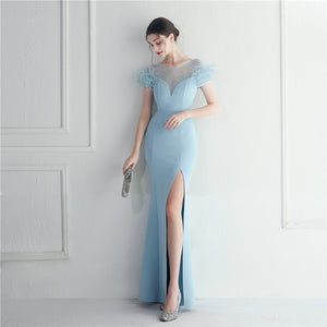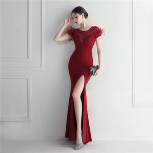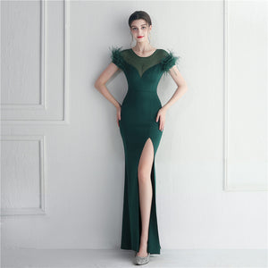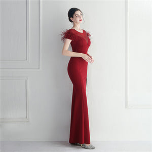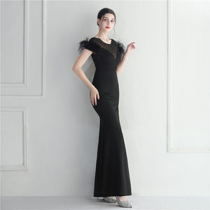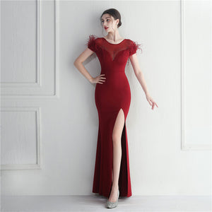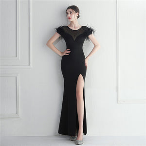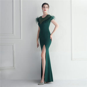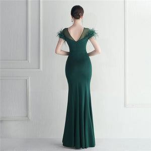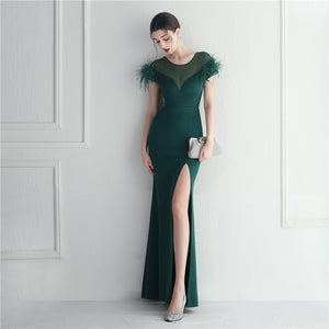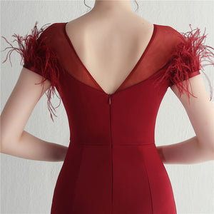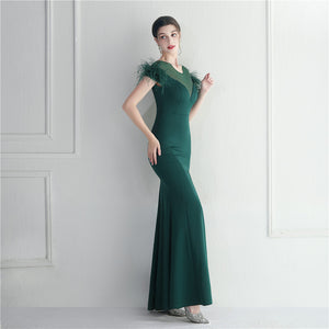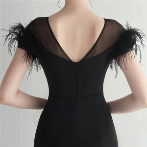 Velvet Base with Handcrafted Sequins, Beading, and Ostrich Feathers