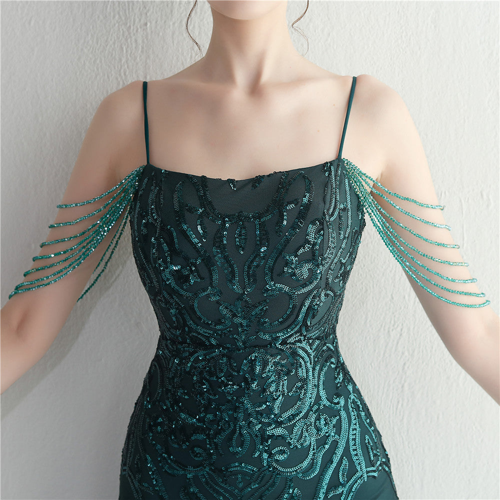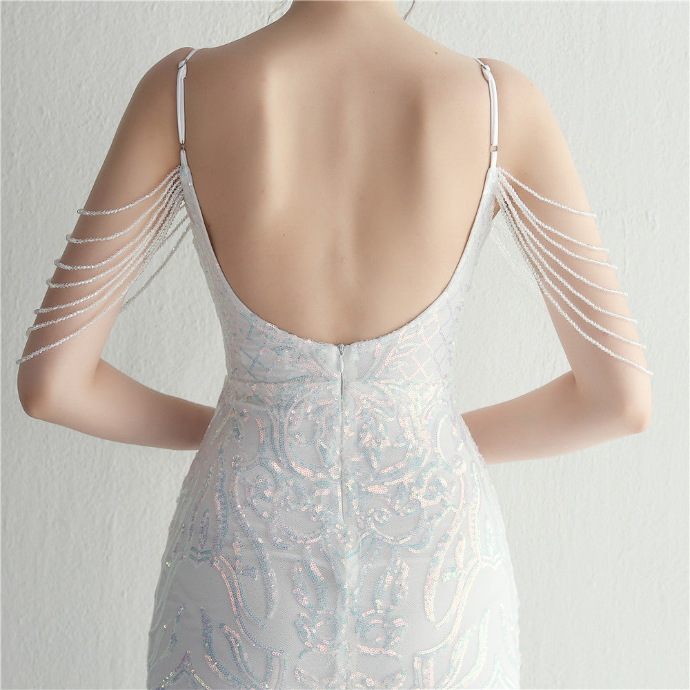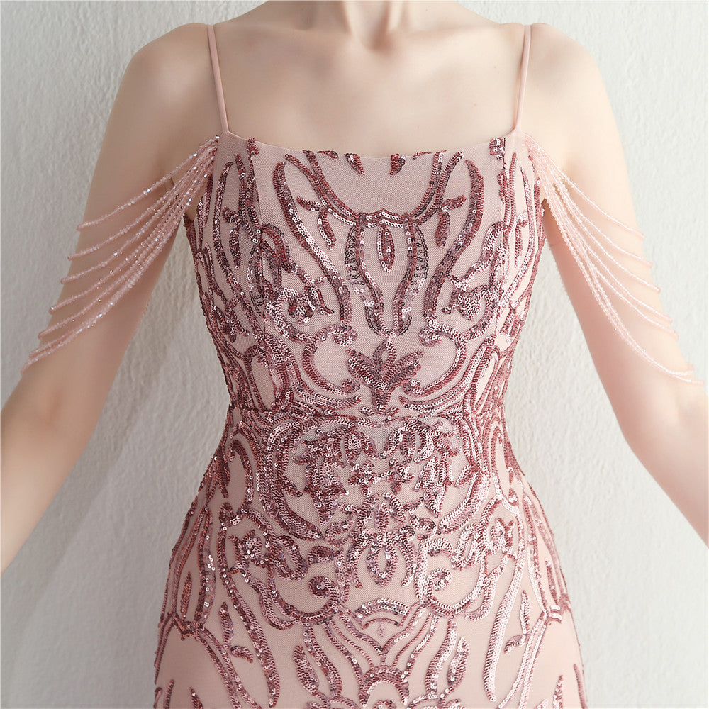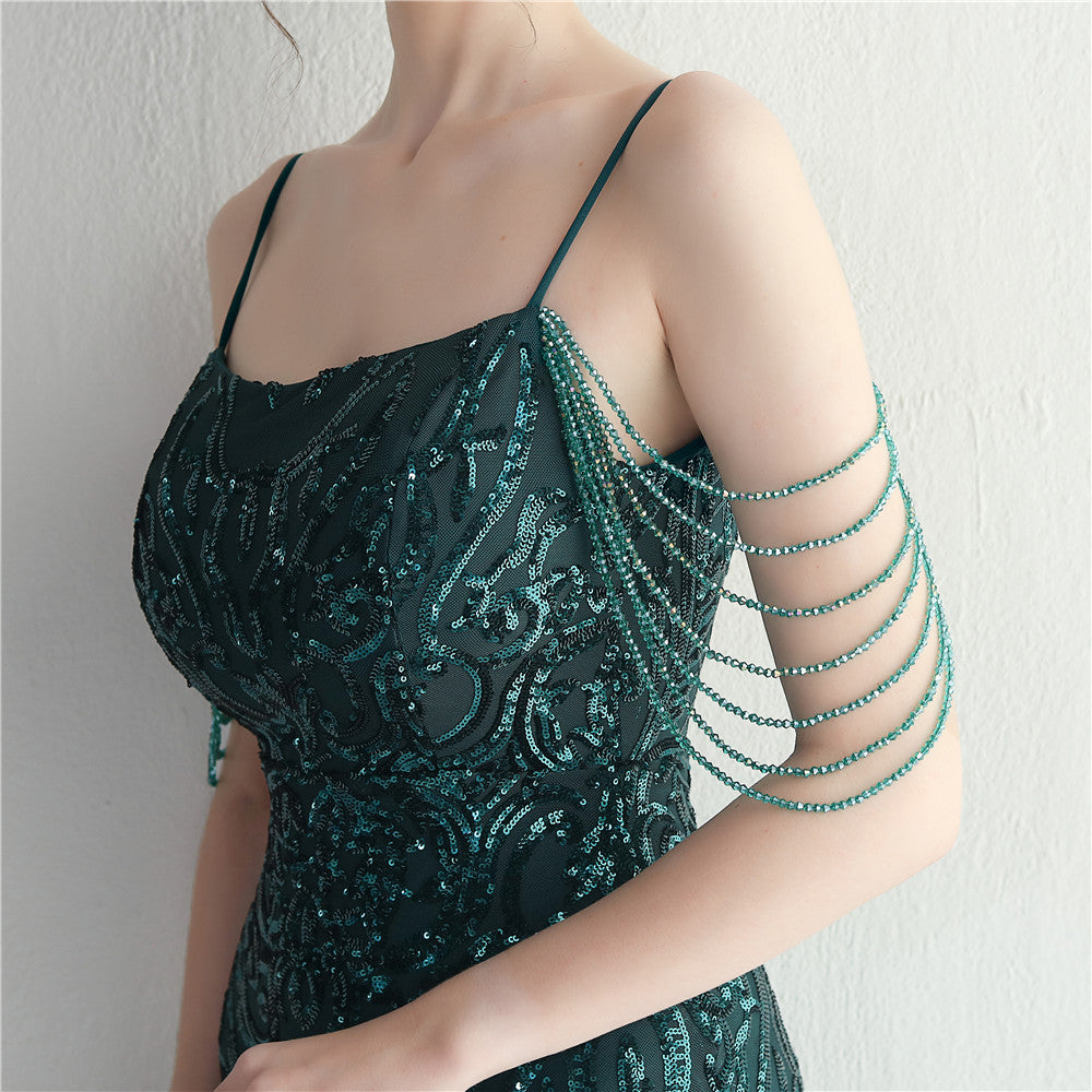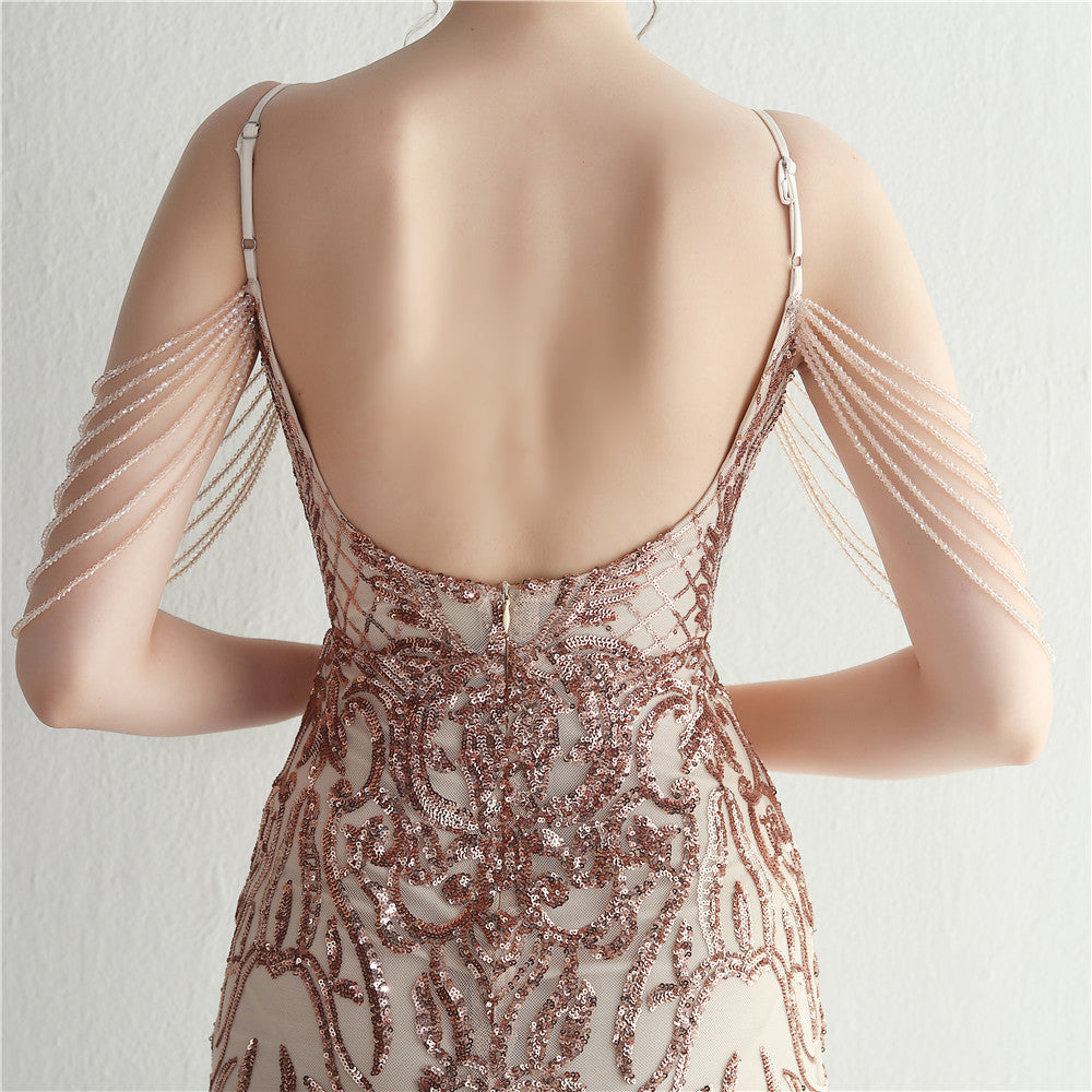 Sequins with Mesh and Beaded Embroidery, Built-in Chest Pads