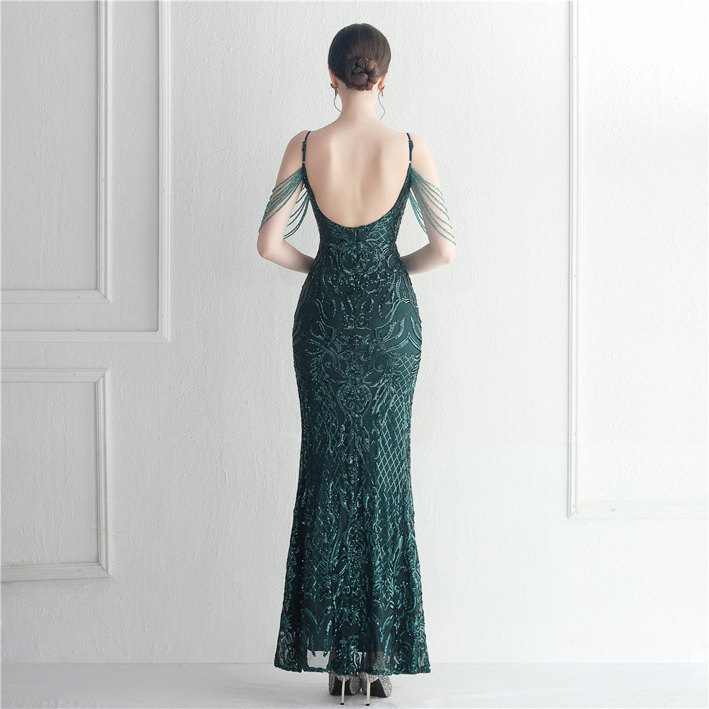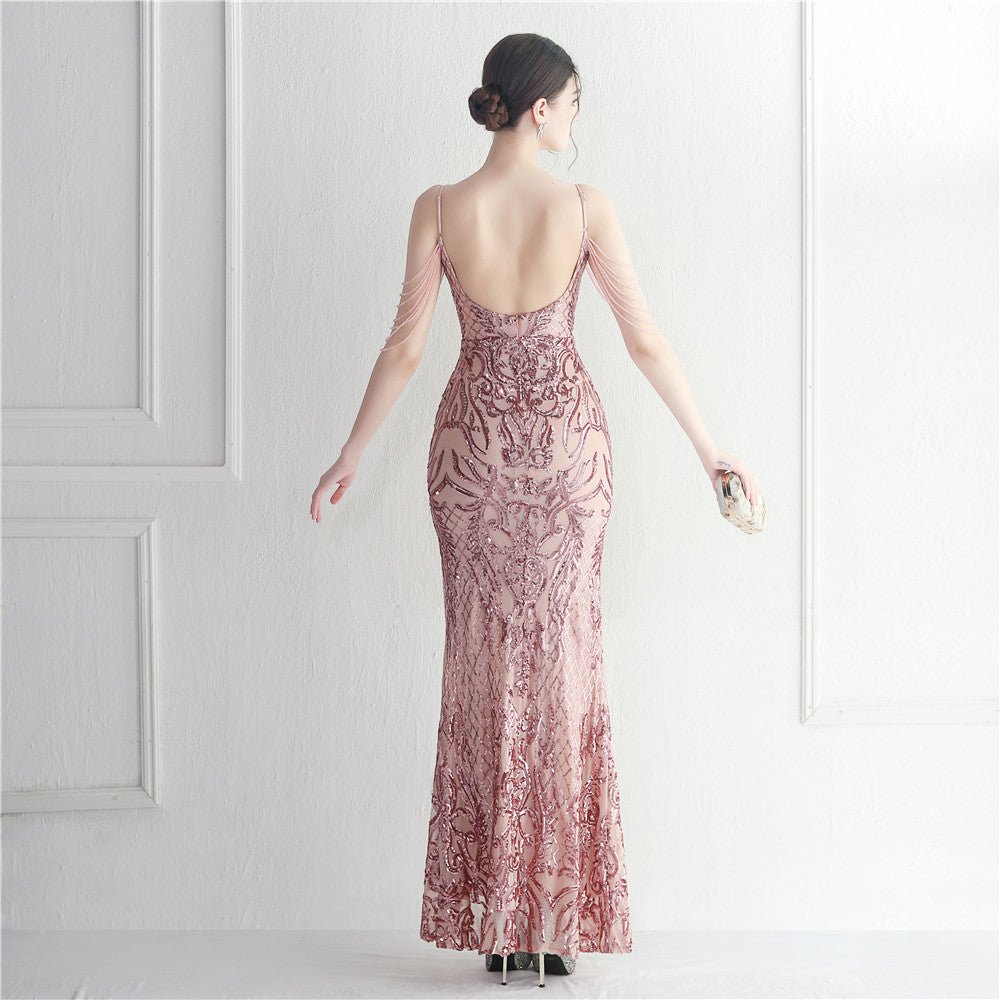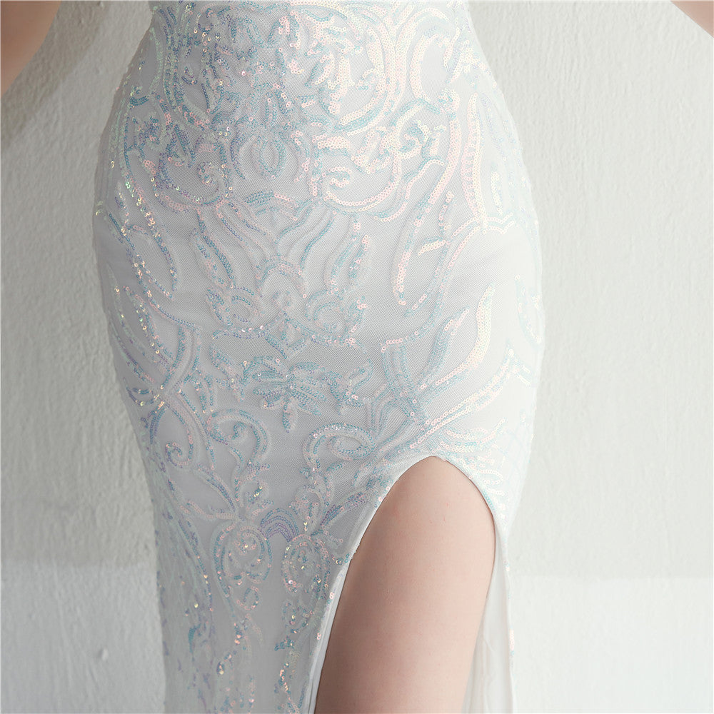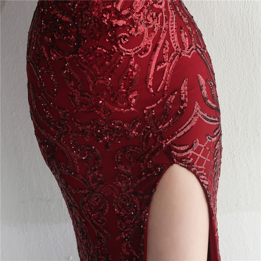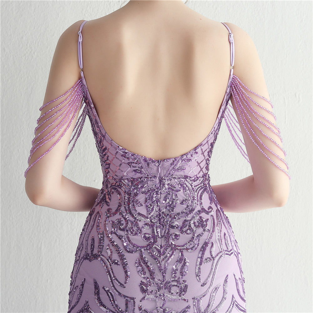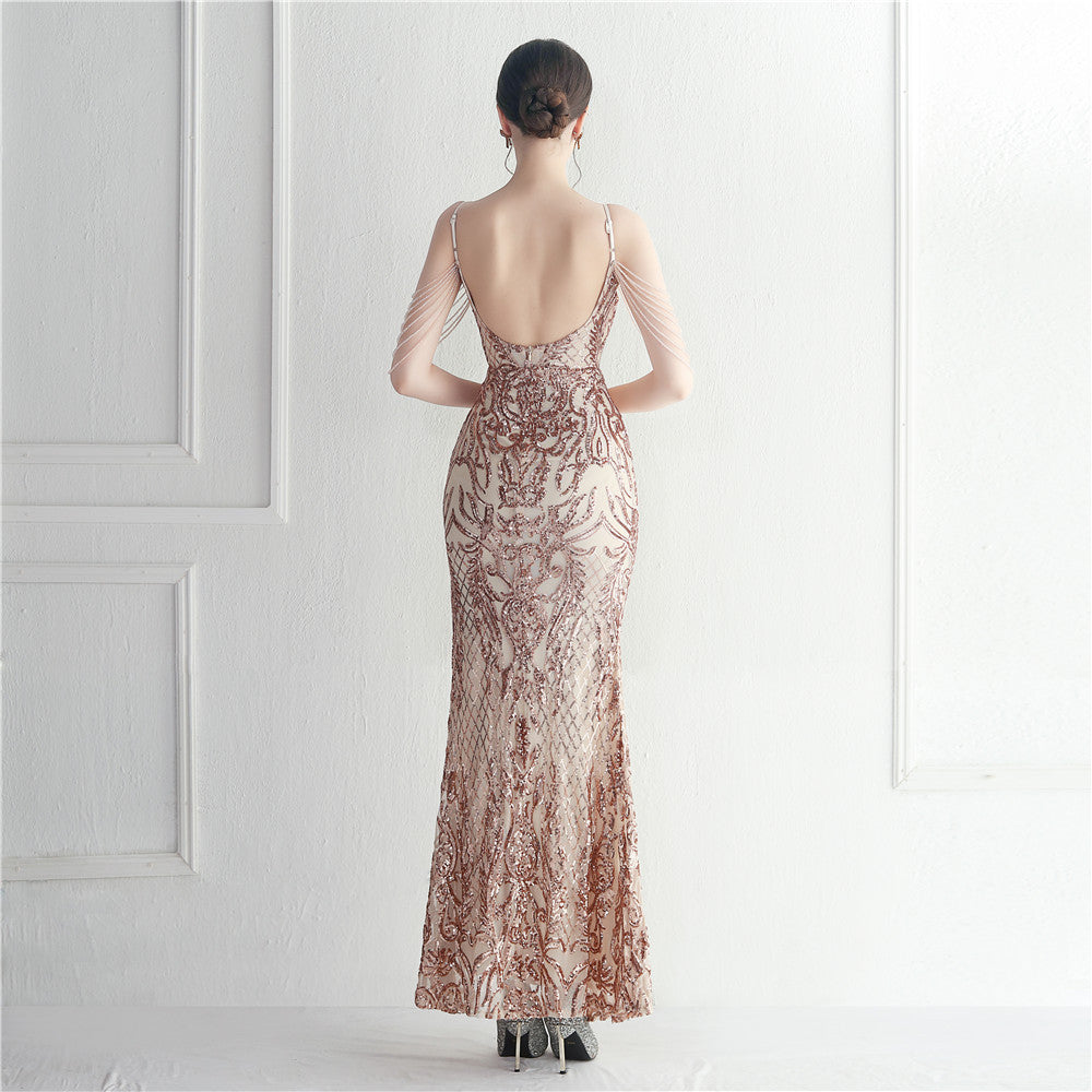Sequins with Mesh and Beaded Embroidery, Built-in Chest Pads