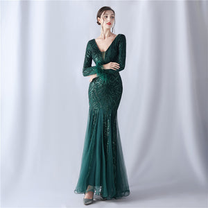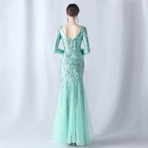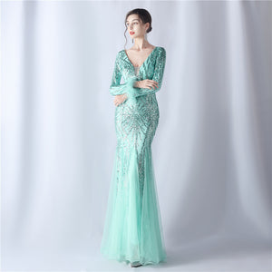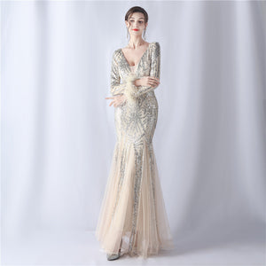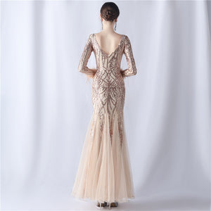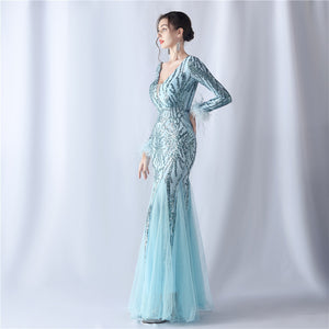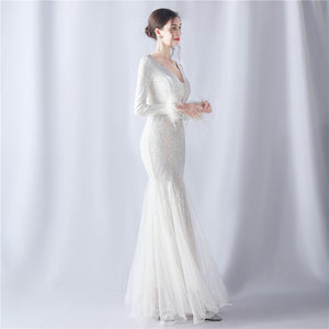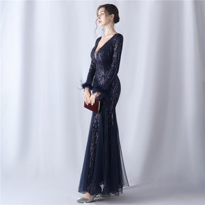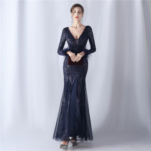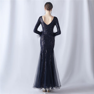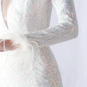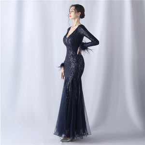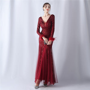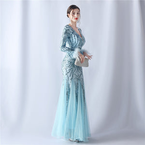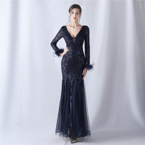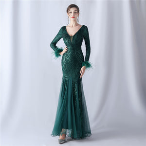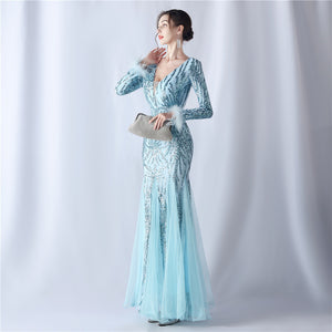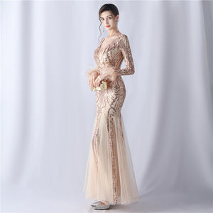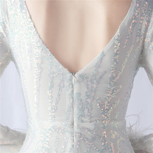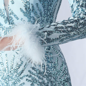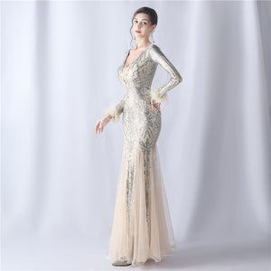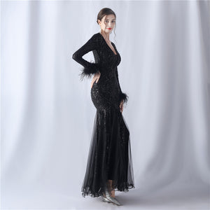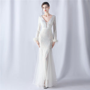 Ostrich Fur Mesh Beaded Formal Dresses
