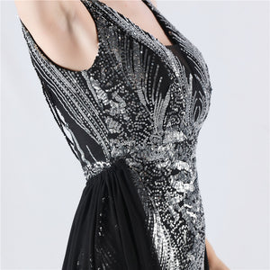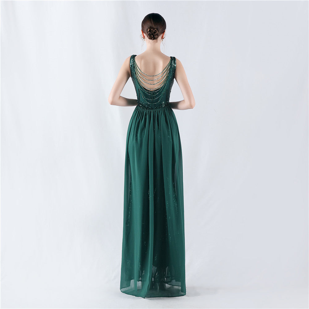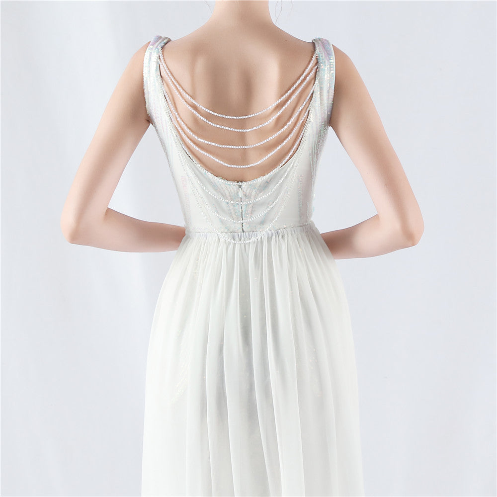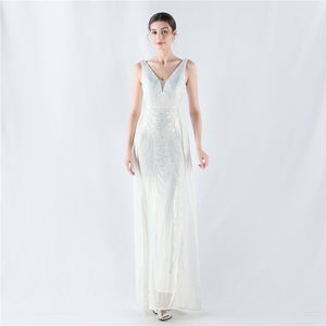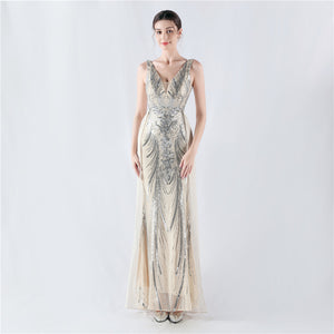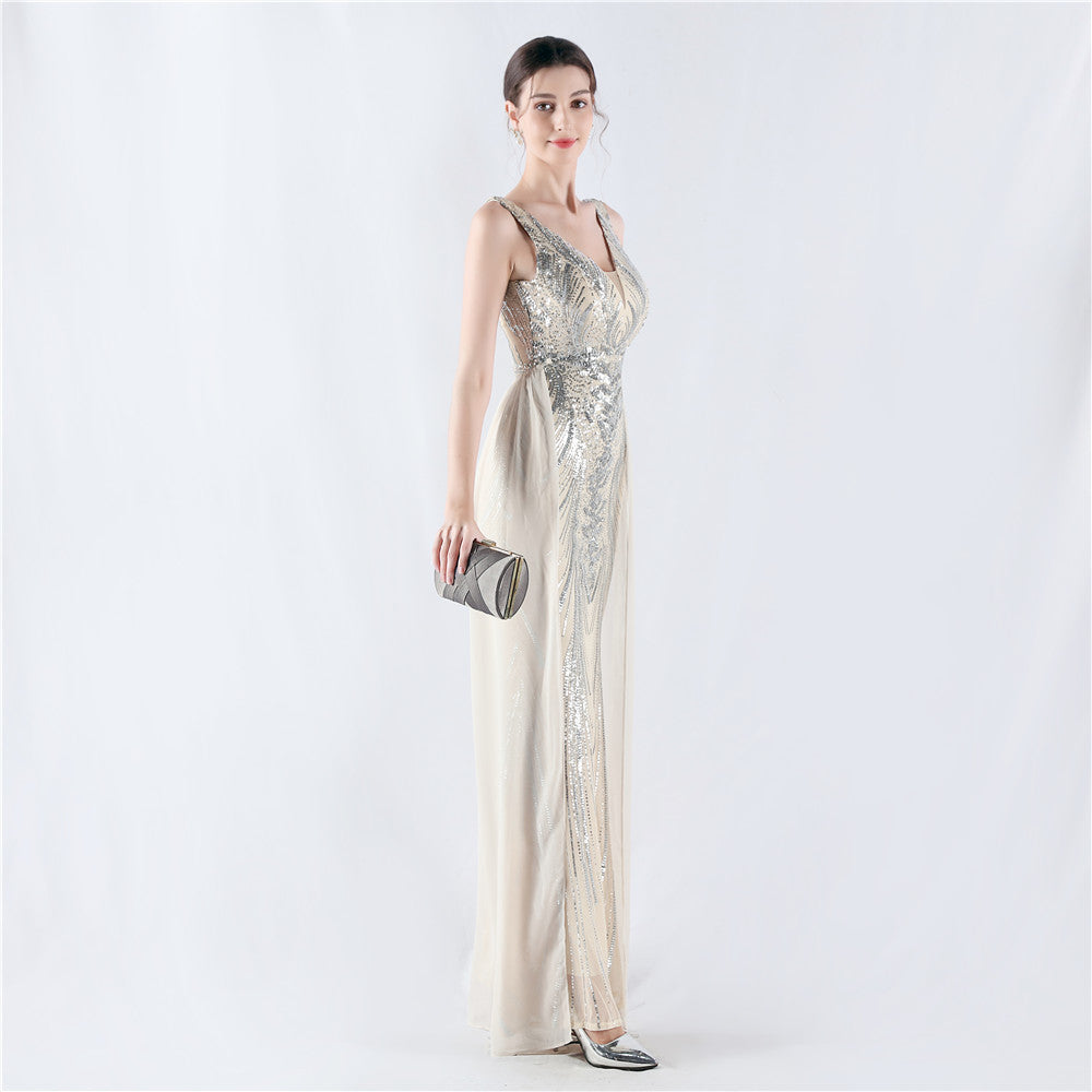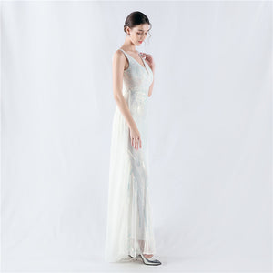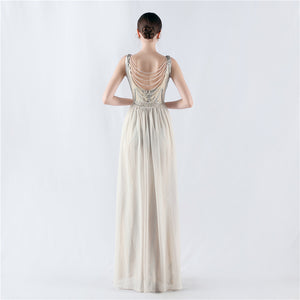 Positioned Flower Beaded Formal Dress