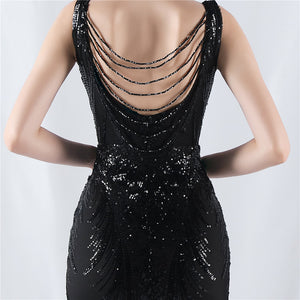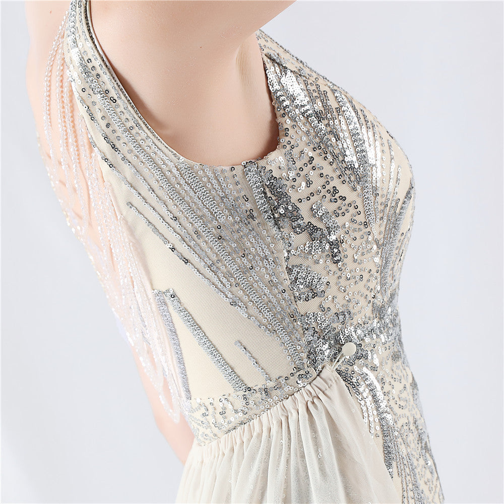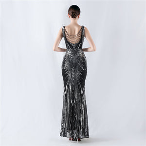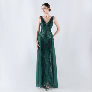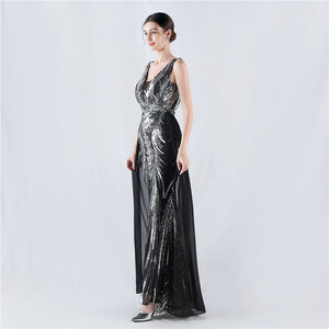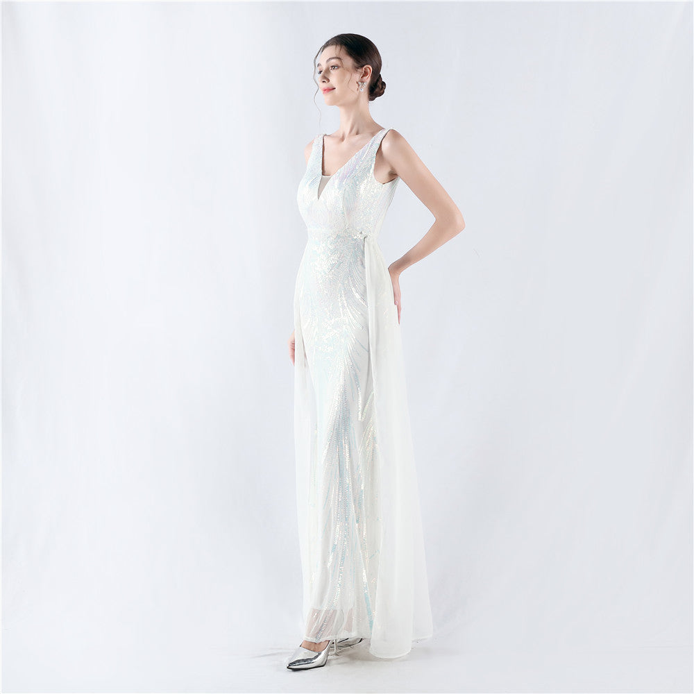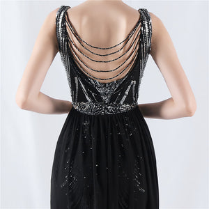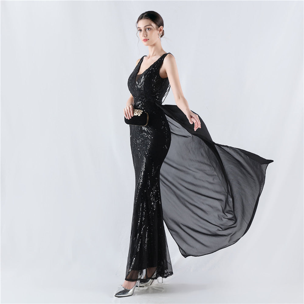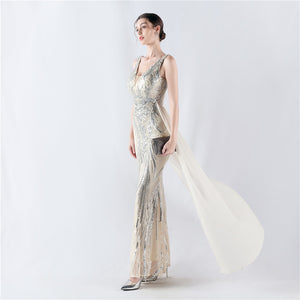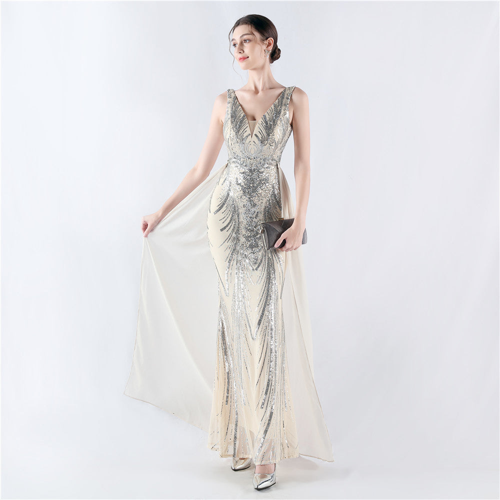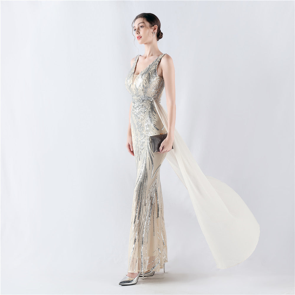 Placement Sequin Embroidery with Cape + Handcrafted Beading on the Back, with Built-in Chest Pads